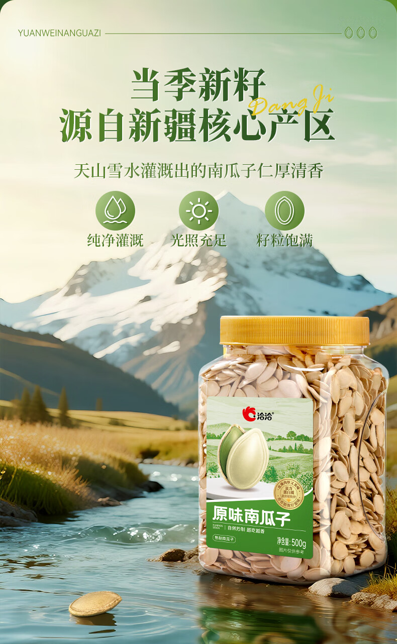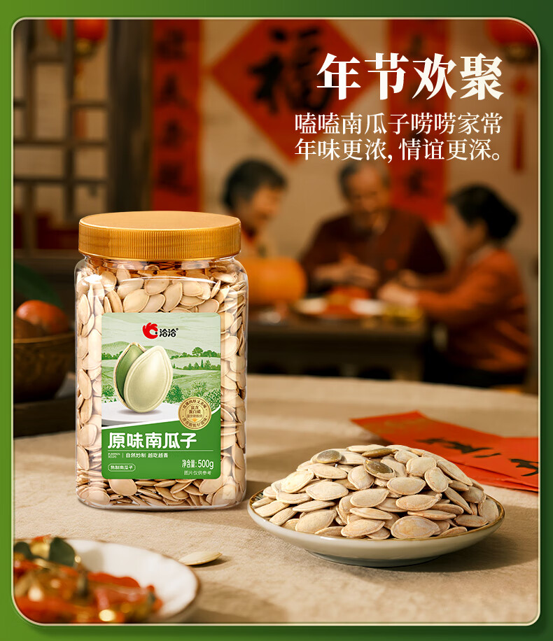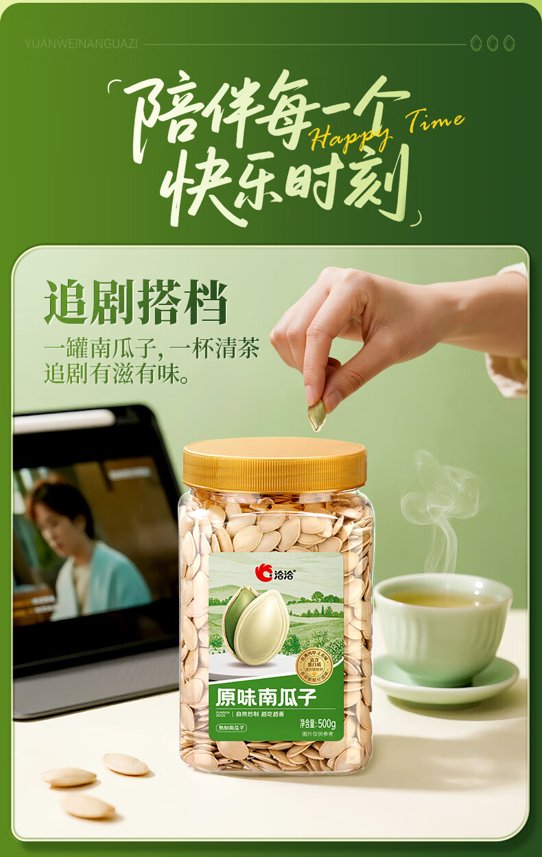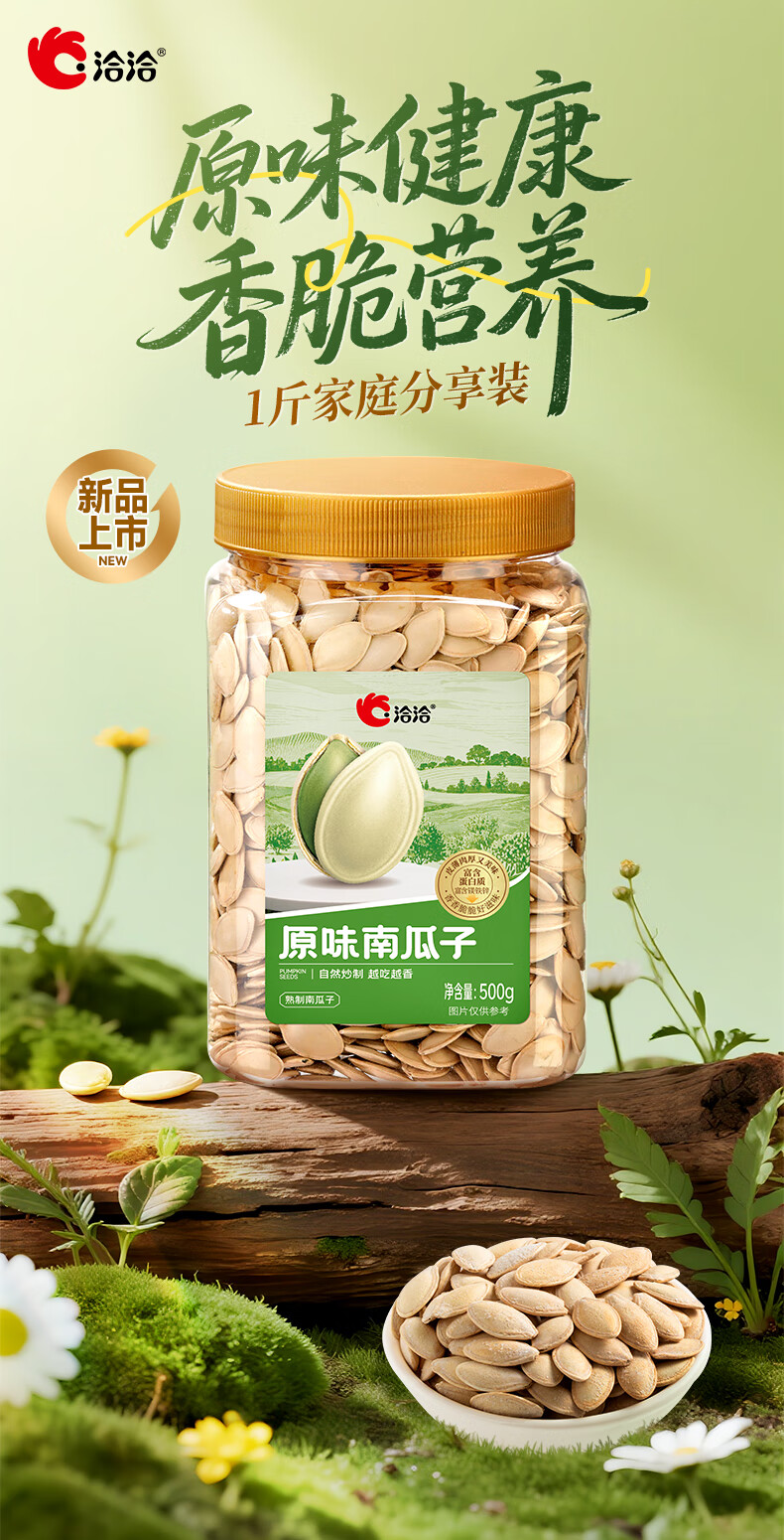 洽洽原味南瓜子罐装500g大颗粒轻盐南瓜籽坚果炒货烘焙休闲零食瓜子