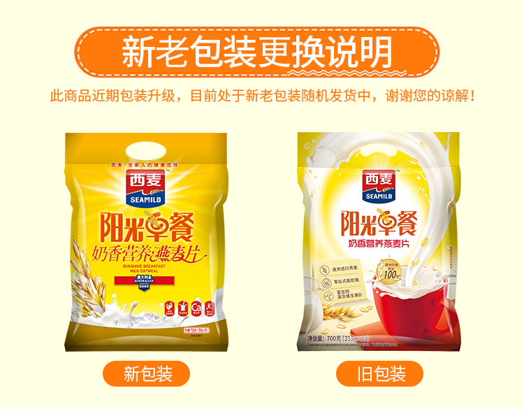 西麦阳光早餐奶香燕麦片700g冲饮谷物代餐营养早餐独立包装