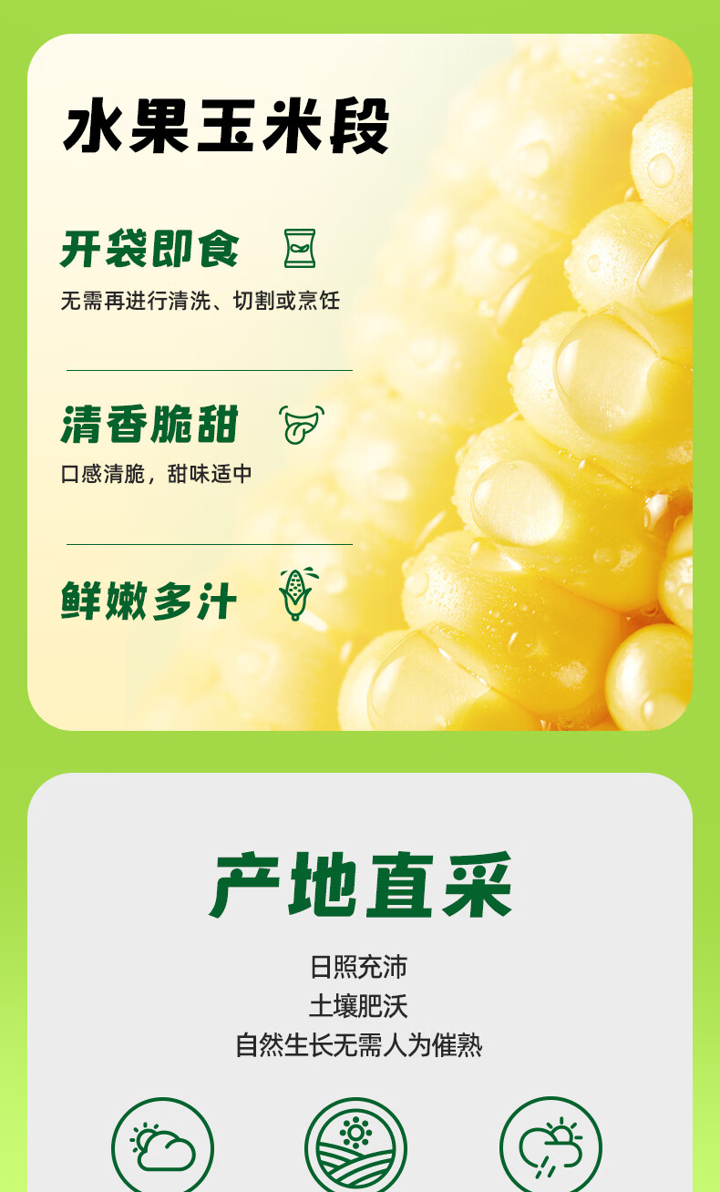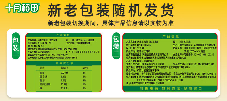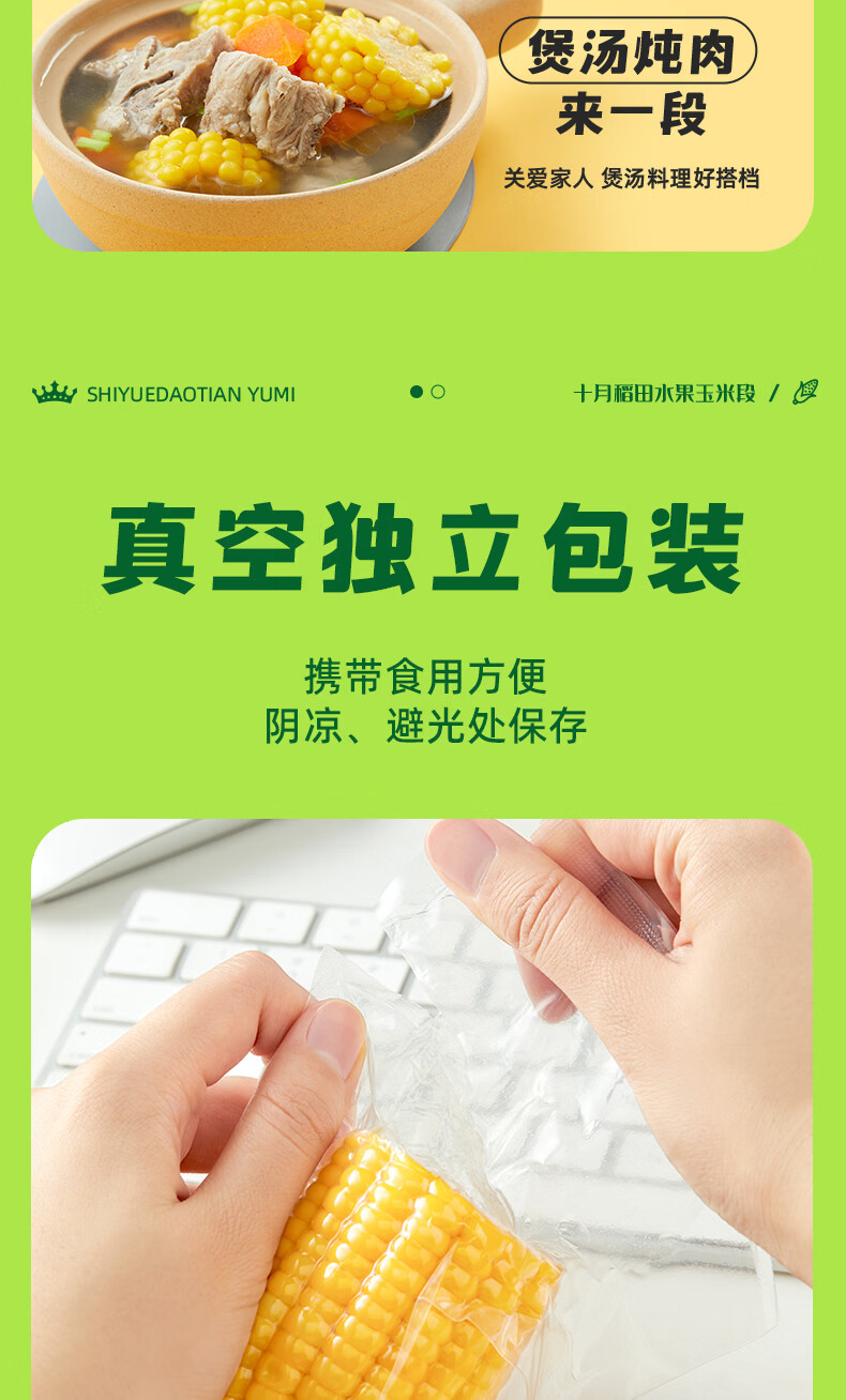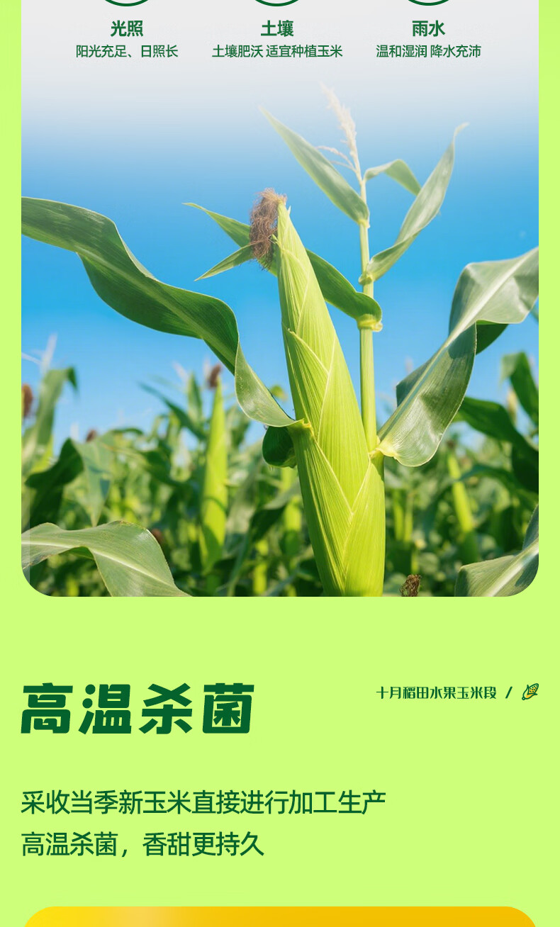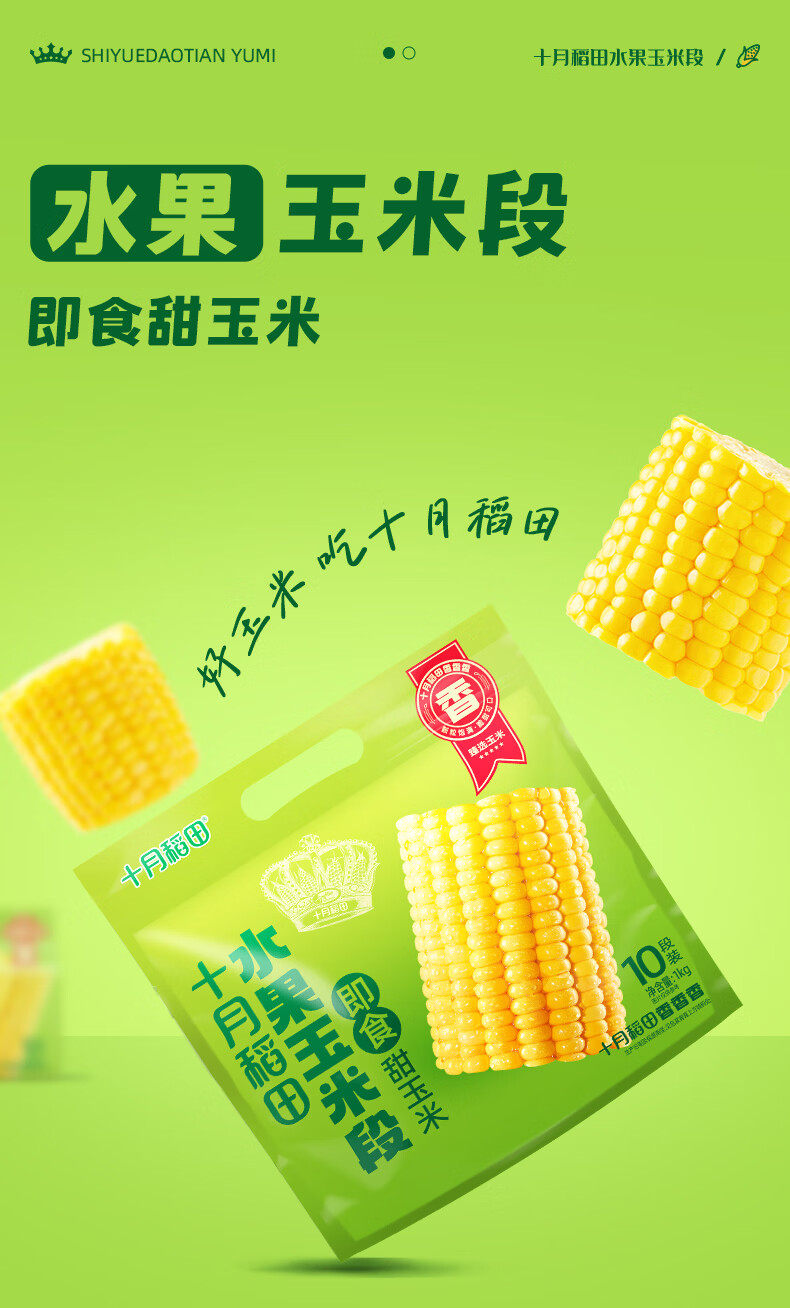 十月稻田 水果甜玉米段 10段 2斤 开袋即食 免煮速食 低卡早餐 代餐低脂