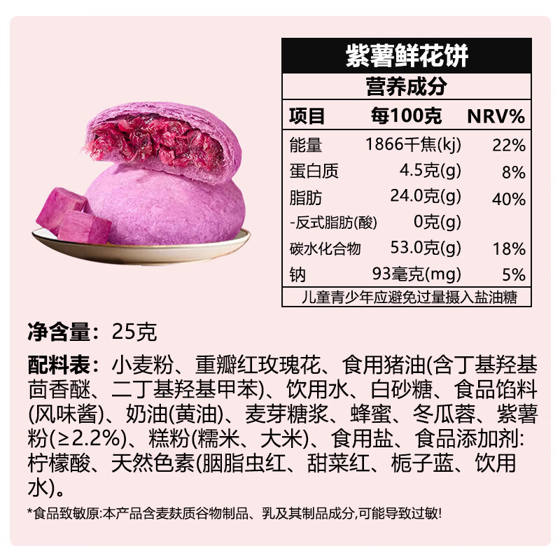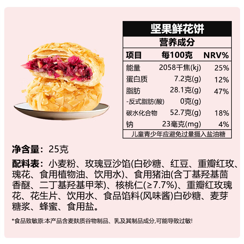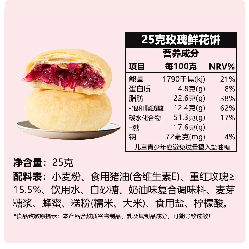 潘祥记 现烤鲜花饼玫瑰饼云南特产玫瑰花饼传统糕点心零食小吃面包早餐 5口味鲜花饼25g*10枚(盒装)