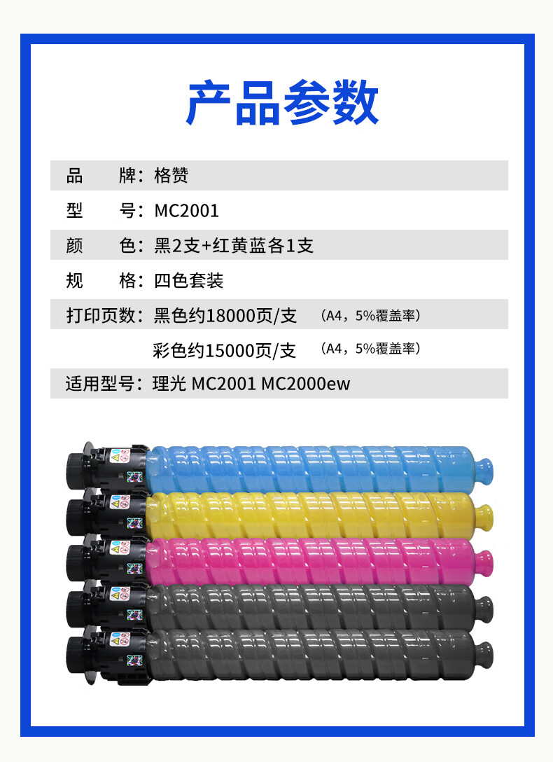 格赞M C2001粉盒适用理光MC2000墨盒Ricoh MC2001碳粉MC2000ew/C/L/SP打印机MC2501复印机墨粉硒鼓2黑+3彩高容