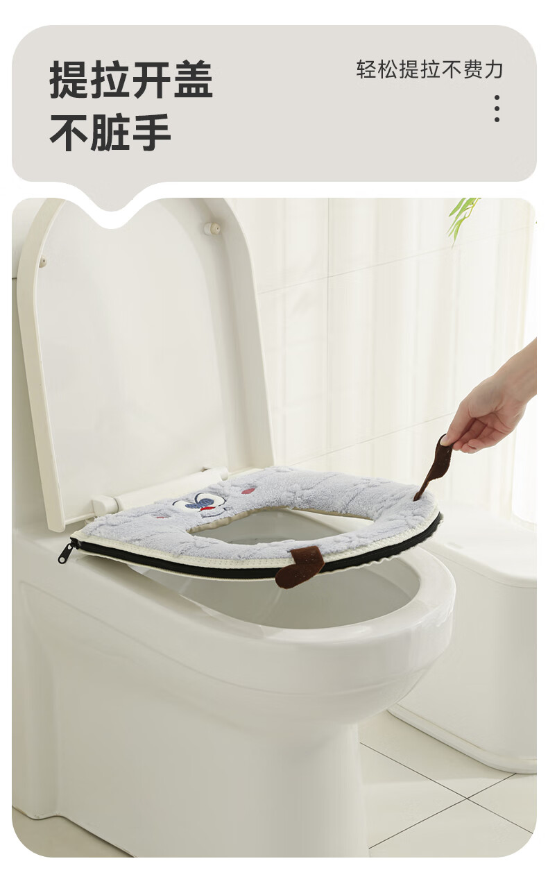 三利马桶垫秋冬季带提手加厚马桶坐垫家用毛绒保暖拉链款马桶圈垫坐垫