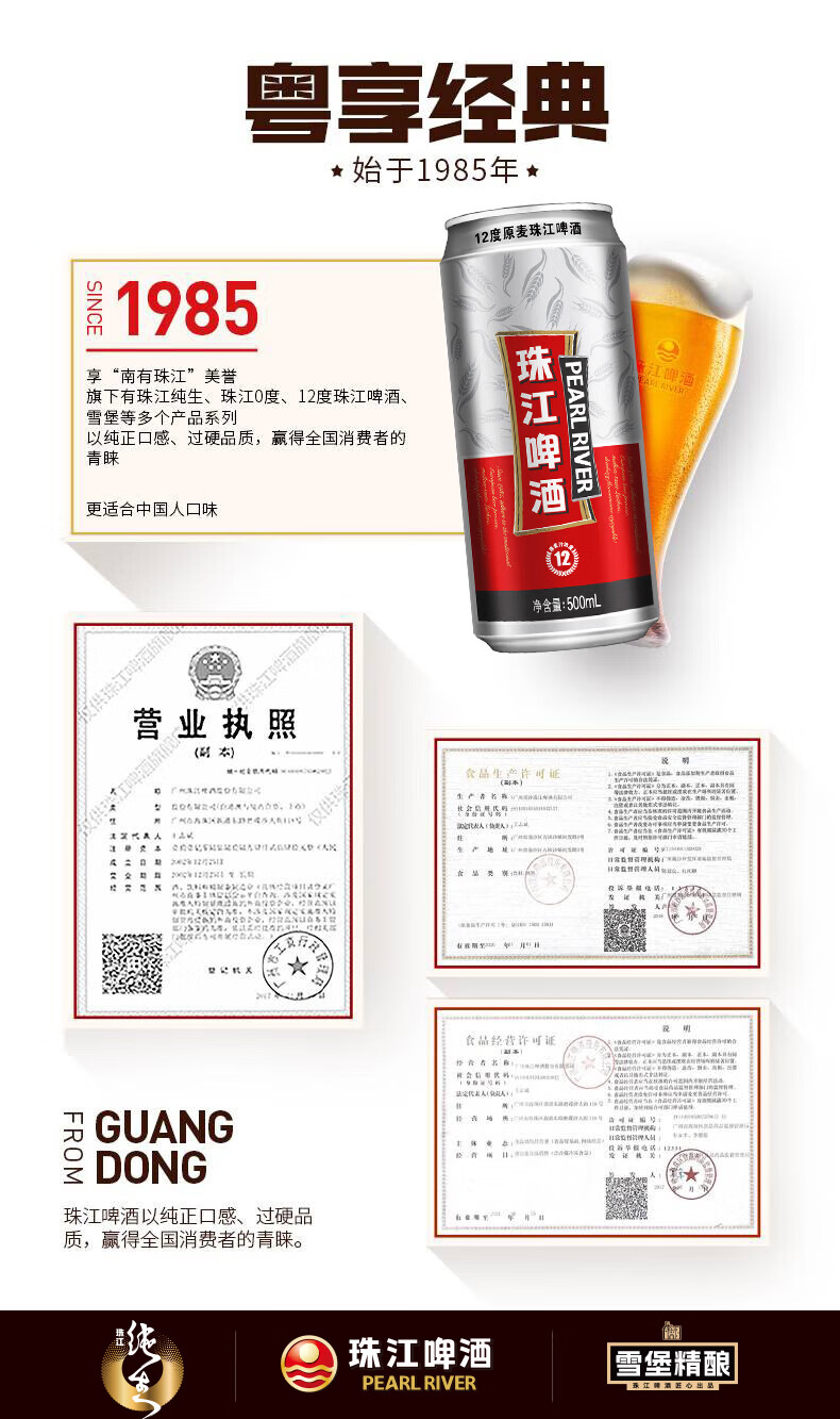珠江啤酒(PEARL RIVER)12°P 珠江原麦啤酒 京东快递 500mL 12罐 整箱装京东自营