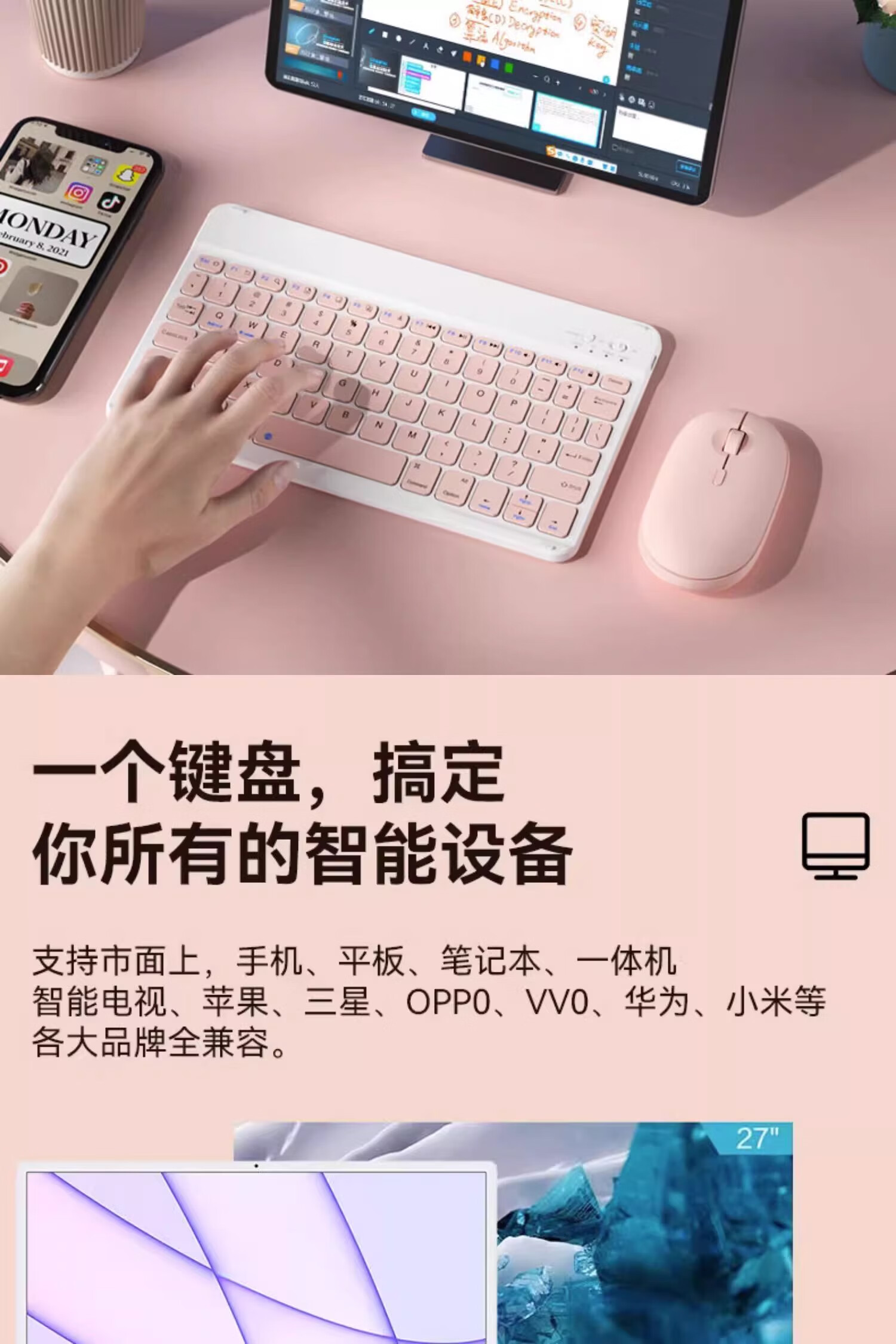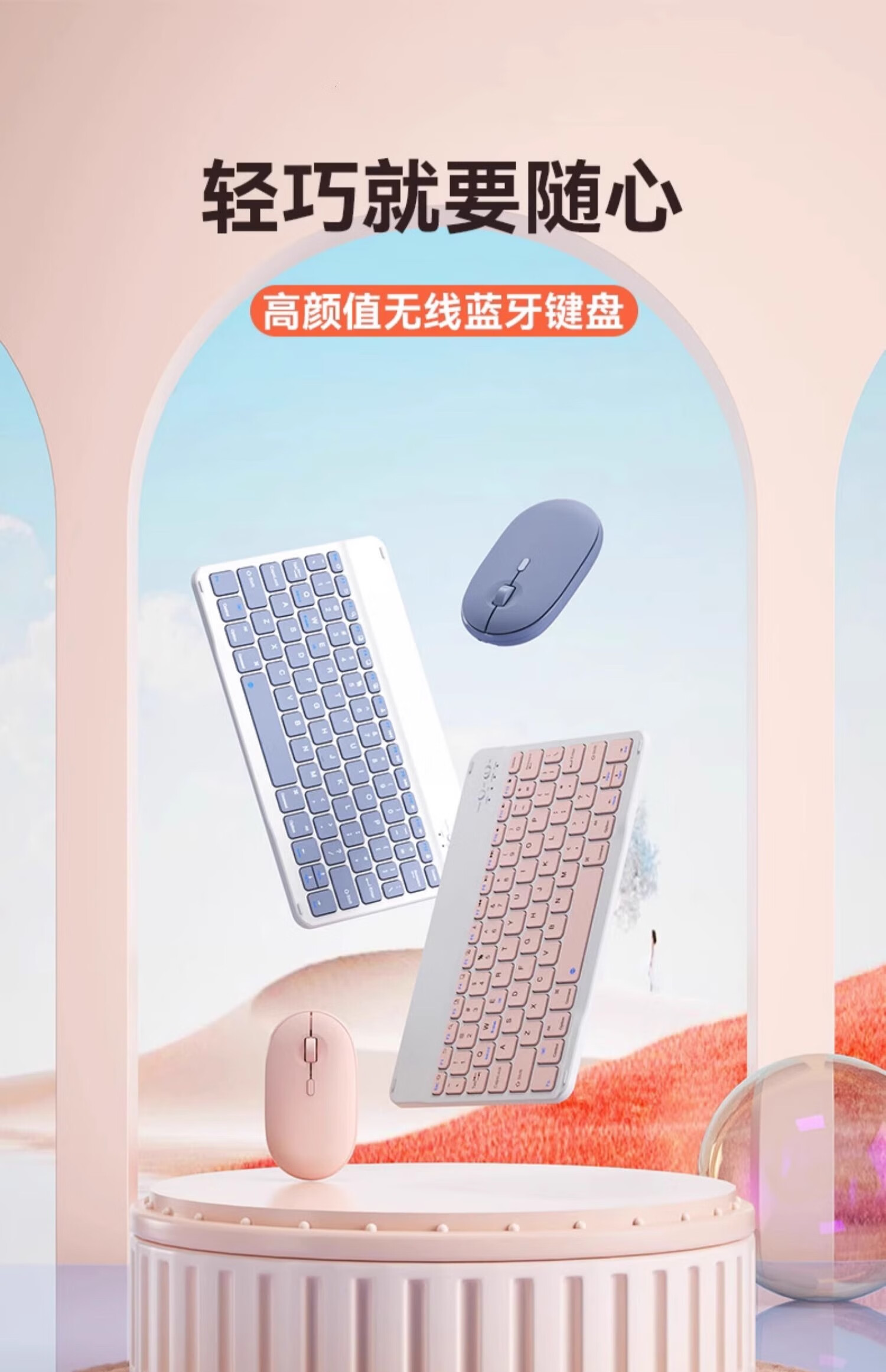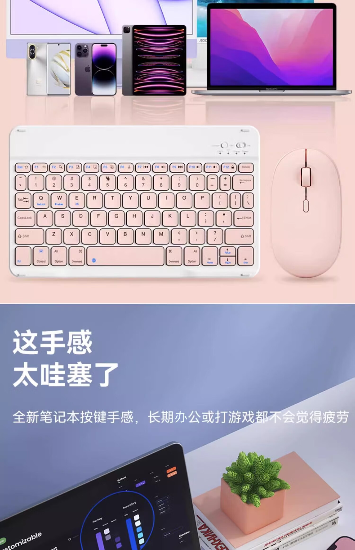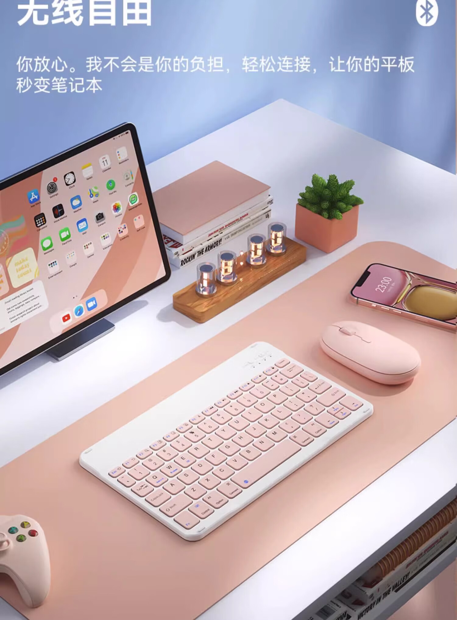 【京东物流】蓝牙无线键盘适用苹果iPad可充电华为MatePad联想pro安卓手机iOS外接键盘M6静音打字 蓝牙键盘+充电款鼠标+充电线【象牙白】