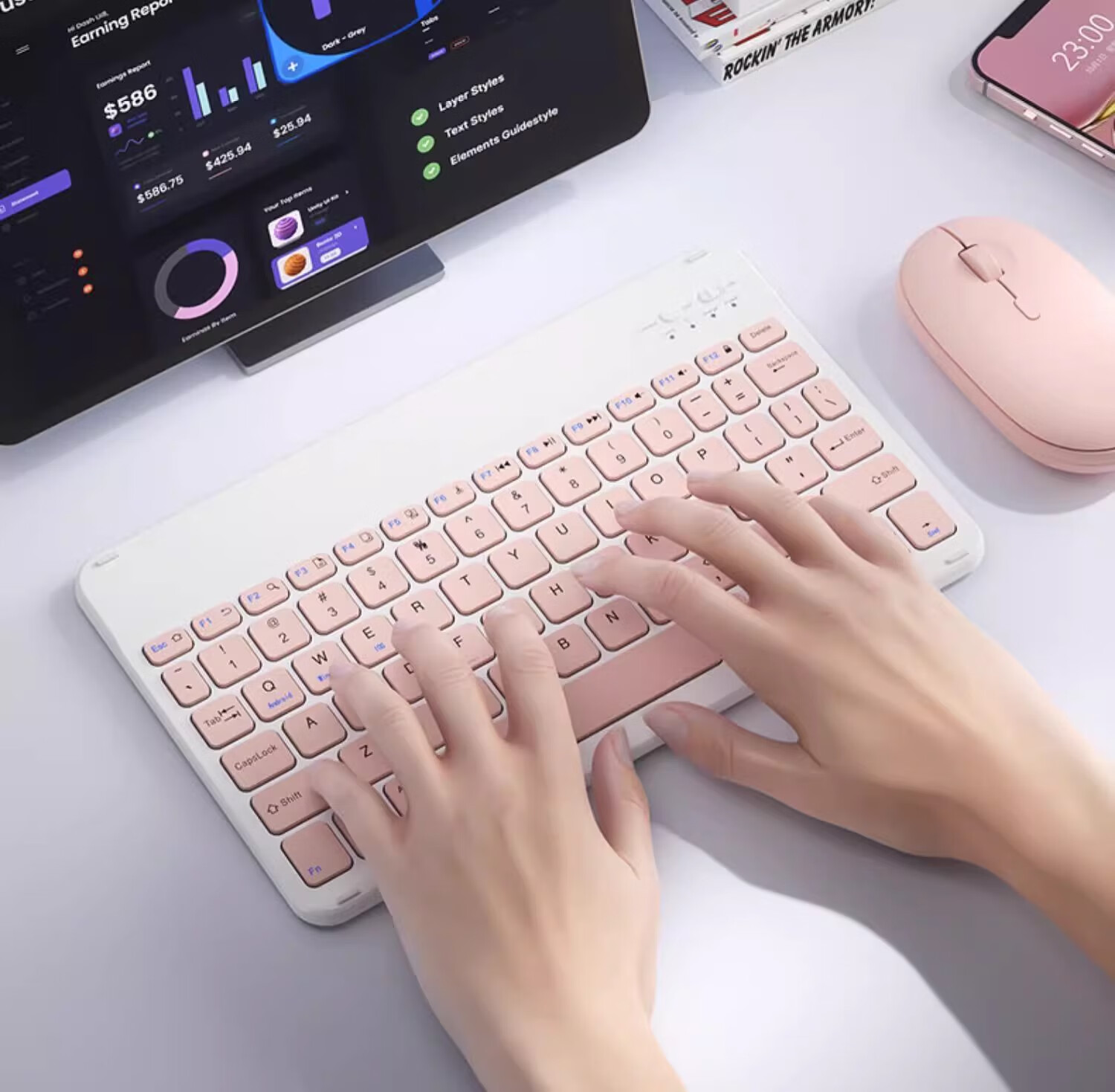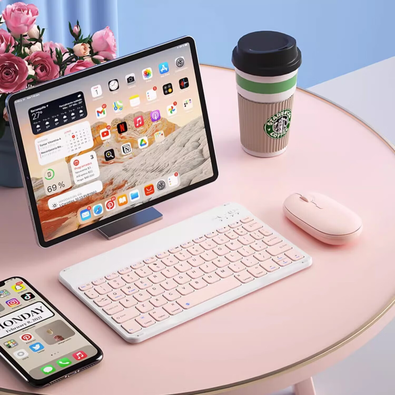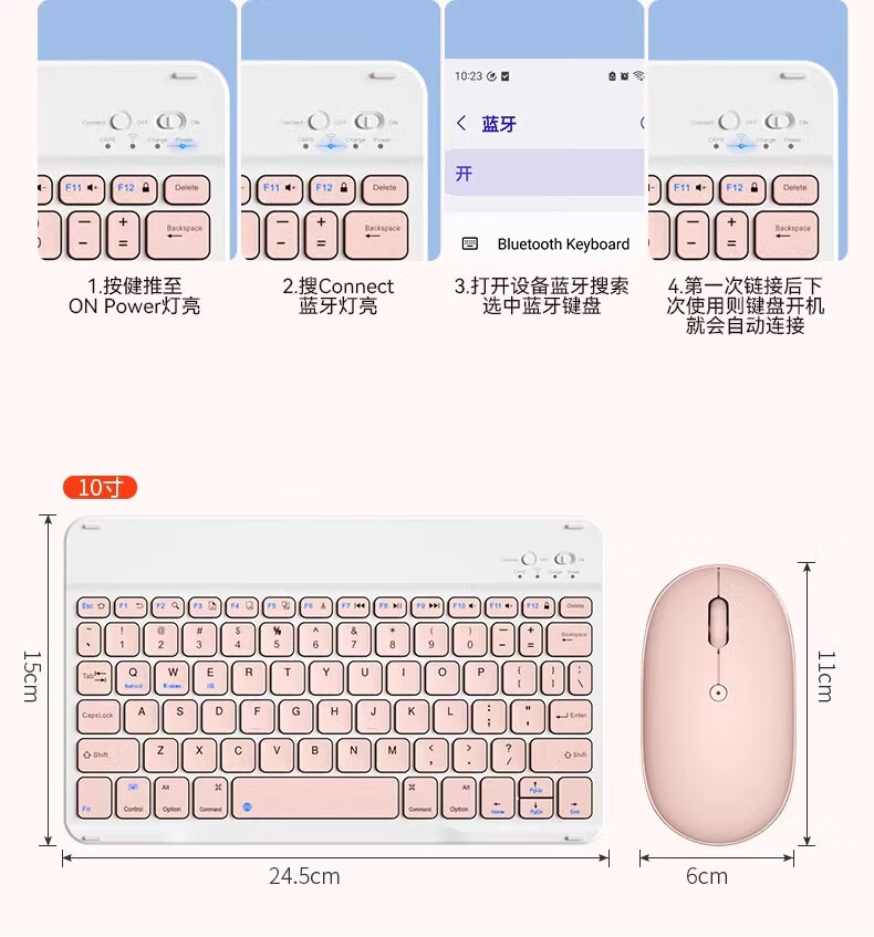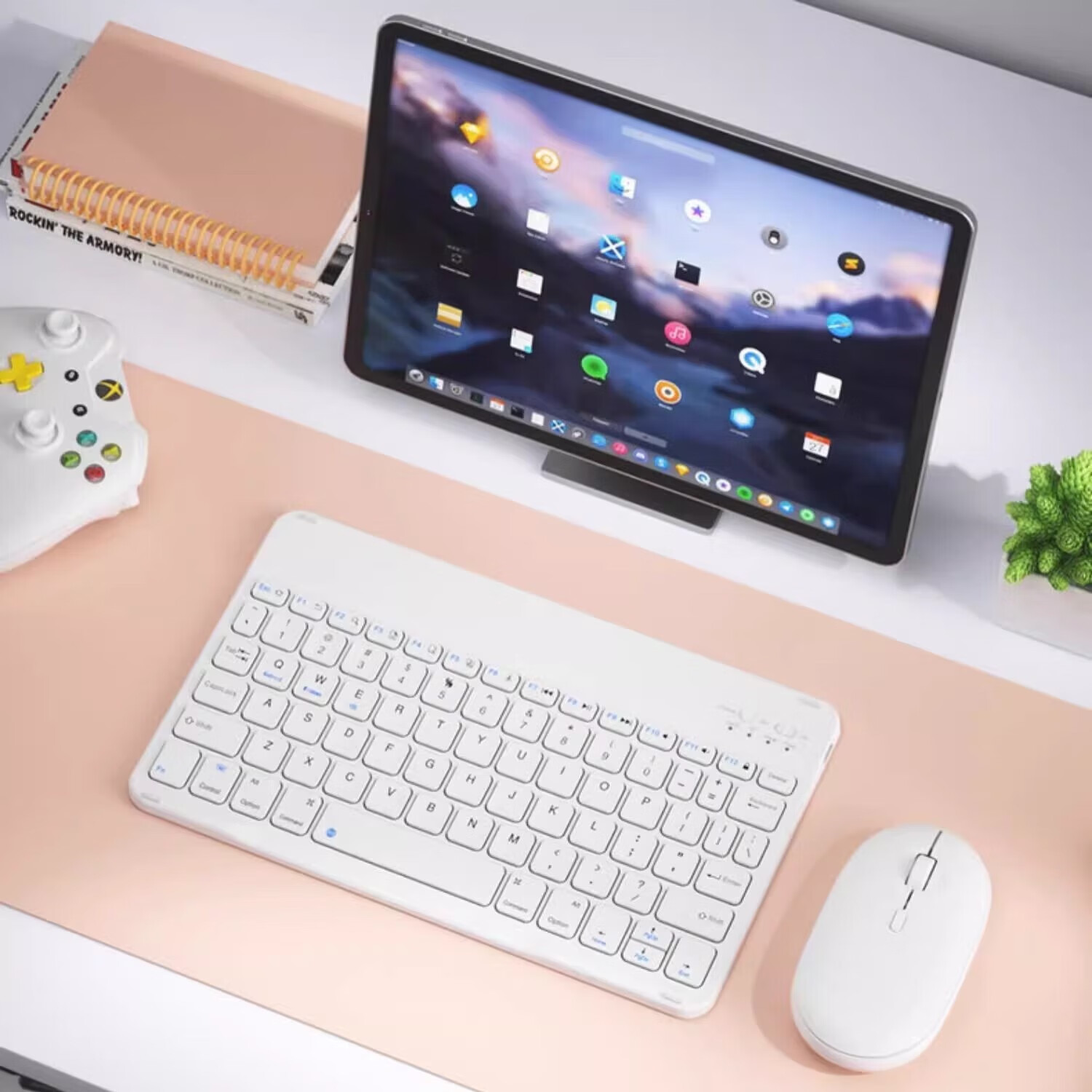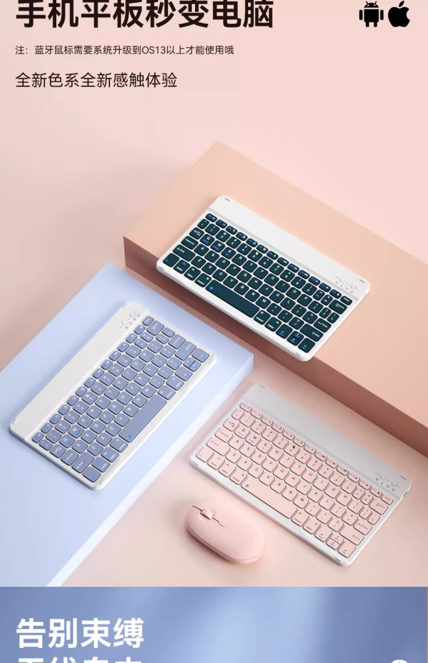 【京东物流】蓝牙无线键盘适用苹果iPad可充电华为MatePad联想pro安卓手机iOS外接键盘M6静音打字 蓝牙键盘+充电款鼠标+充电线【象牙白】