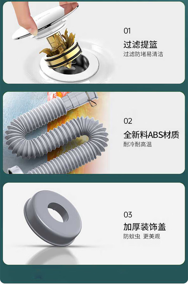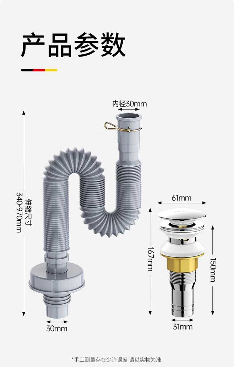 四季沐歌(MICOE)洗手盆下水管弹跳下水器套装洗脸池台盆管墙排