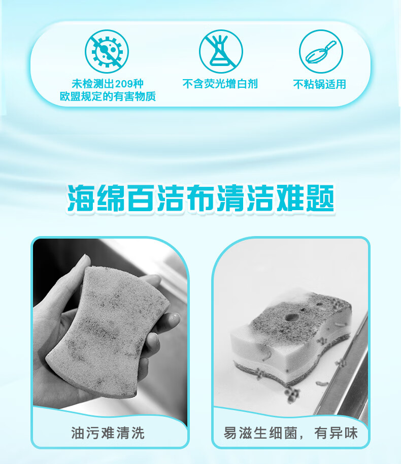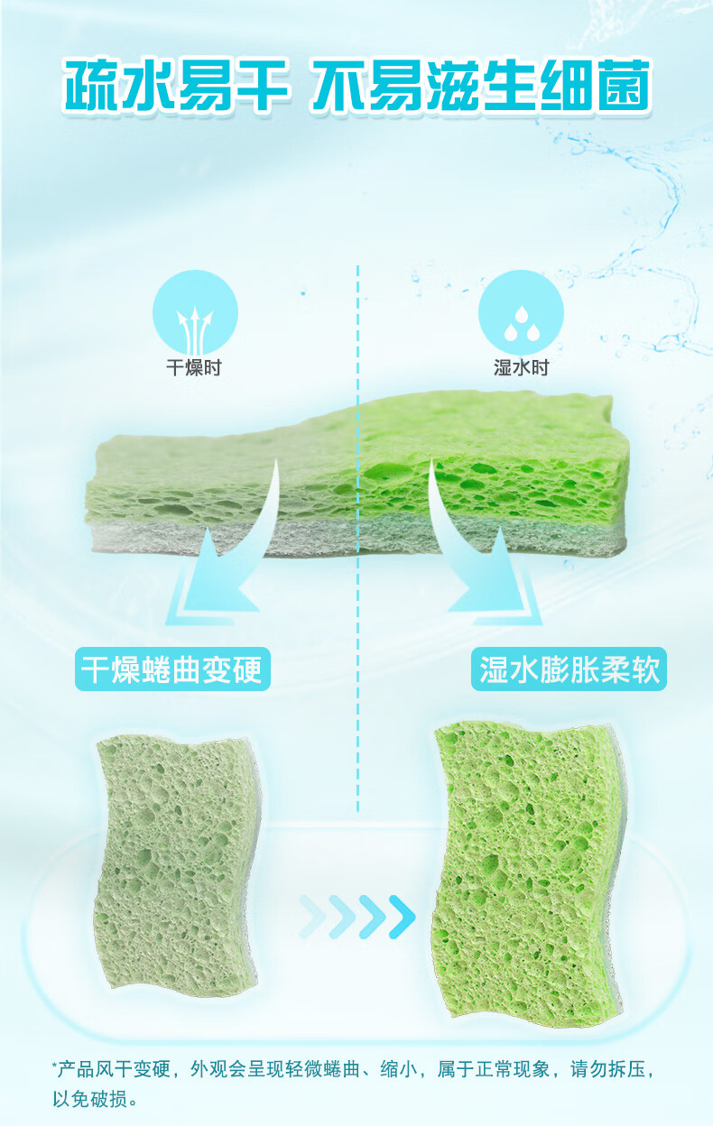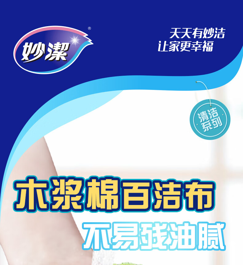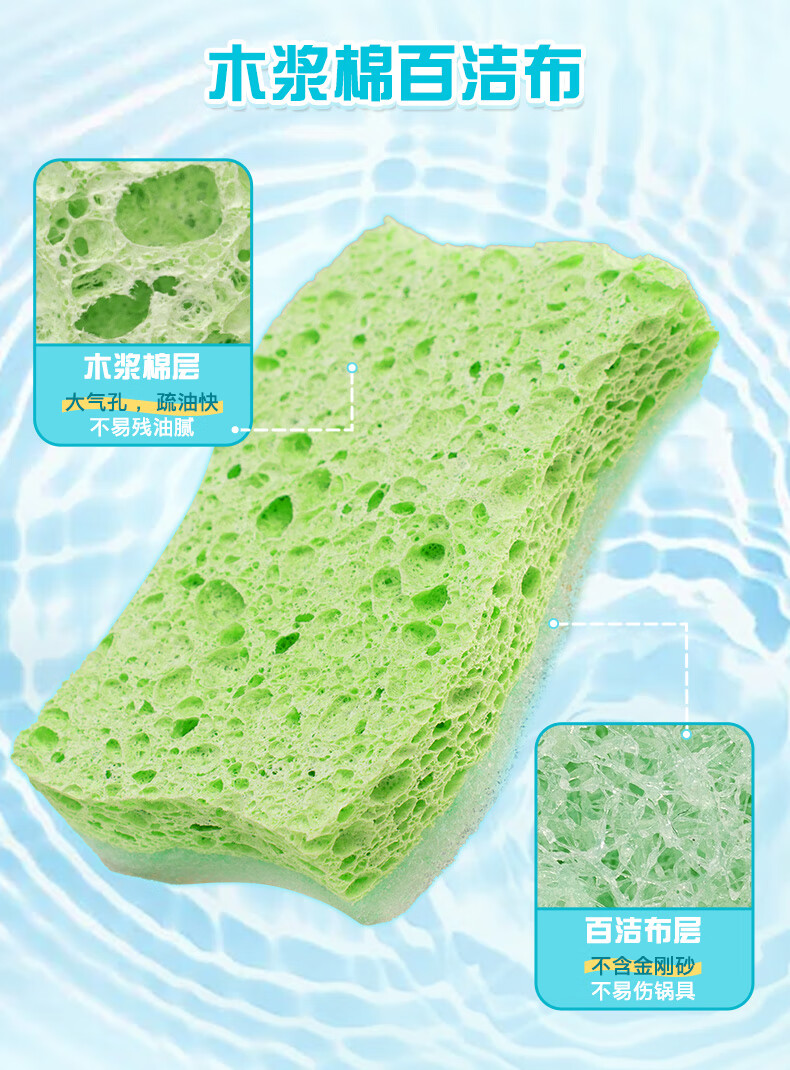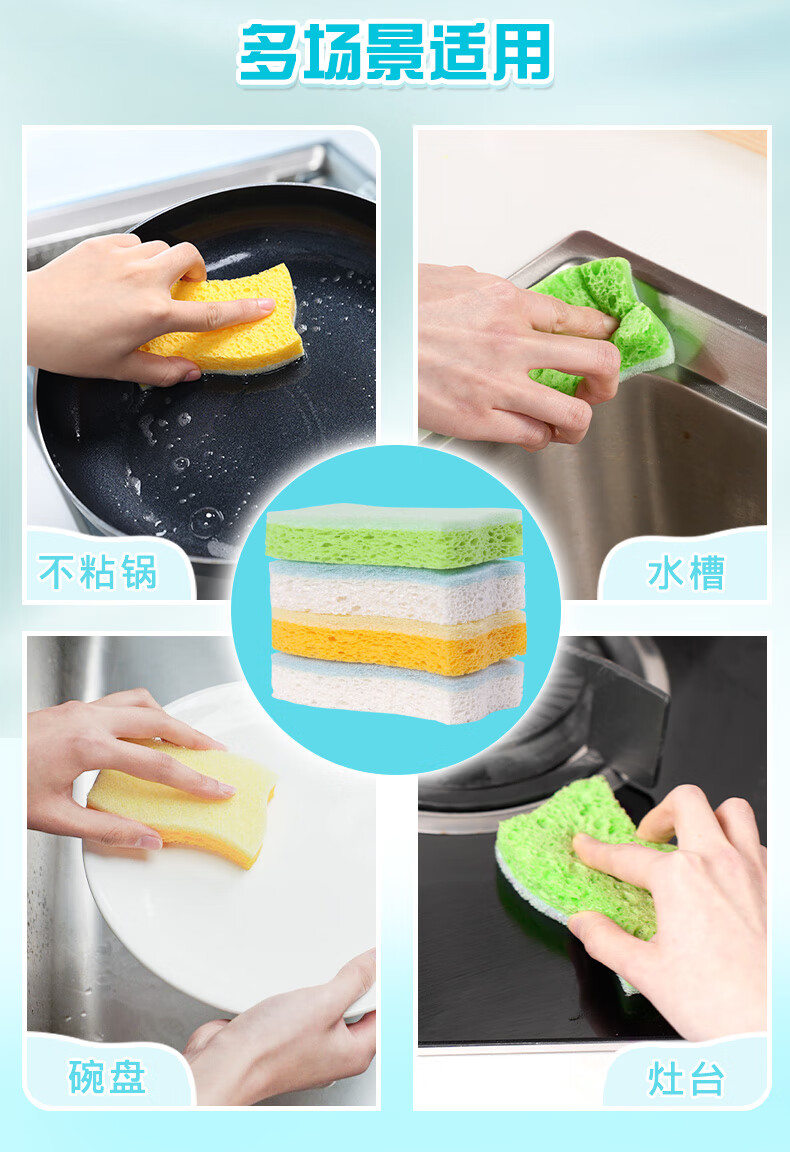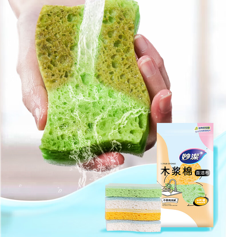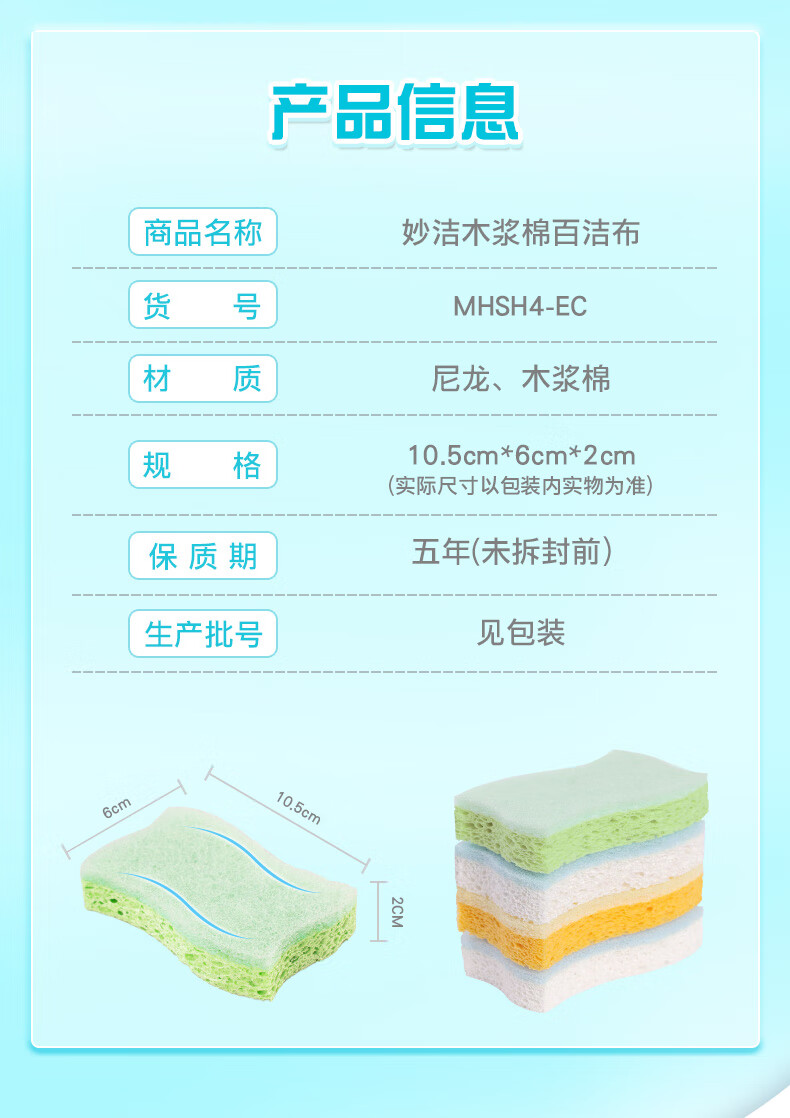 妙洁木浆棉百洁布6*10.5cm 4片装 海绵擦洗碗布百洁布厨房抹布家用