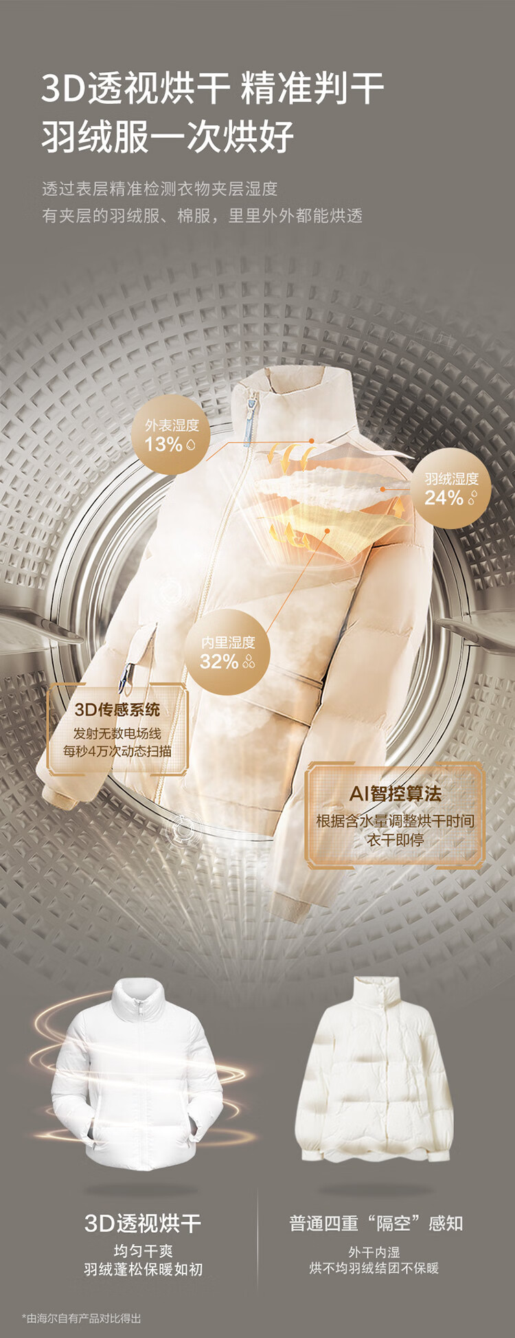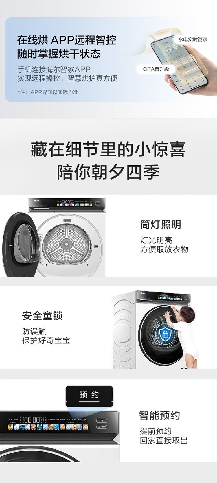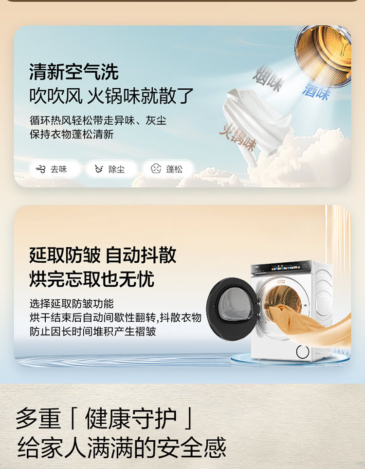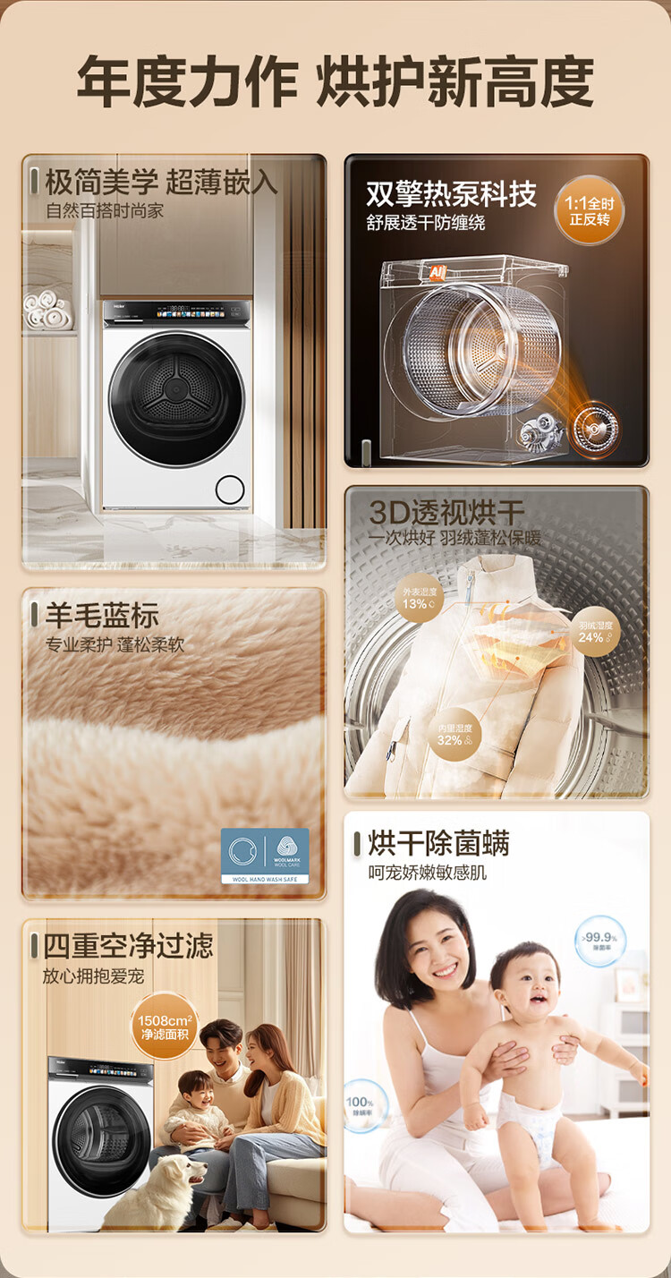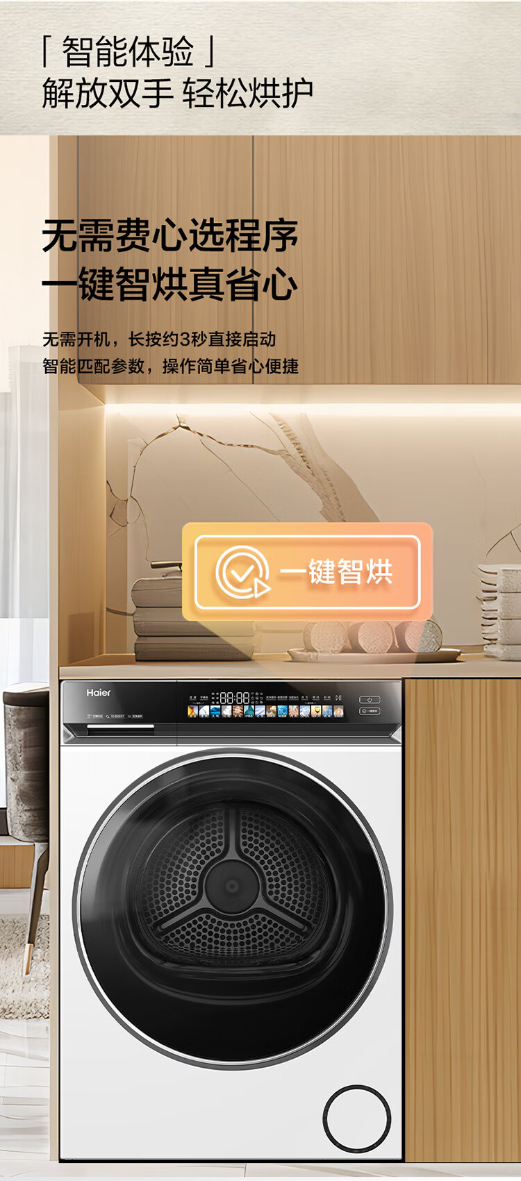 海尔(Haier)云溪3.0全自动滚筒烘干机烘衣服干衣机白色 10KG 双擎热泵 国家补贴自营 GA100-STF583WU1