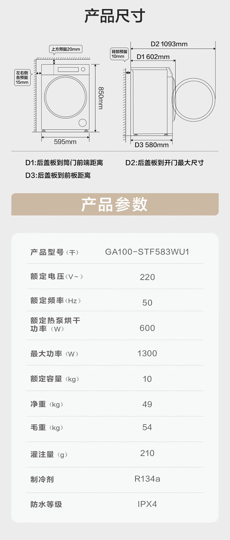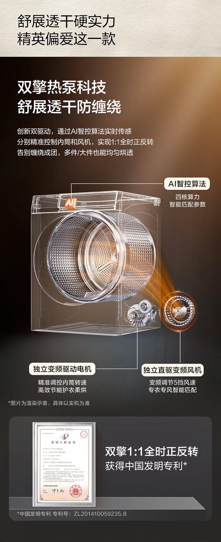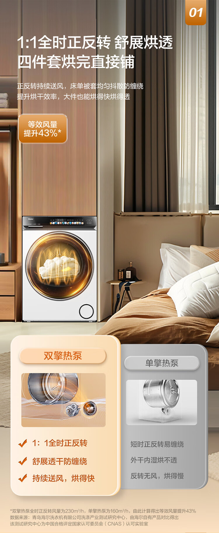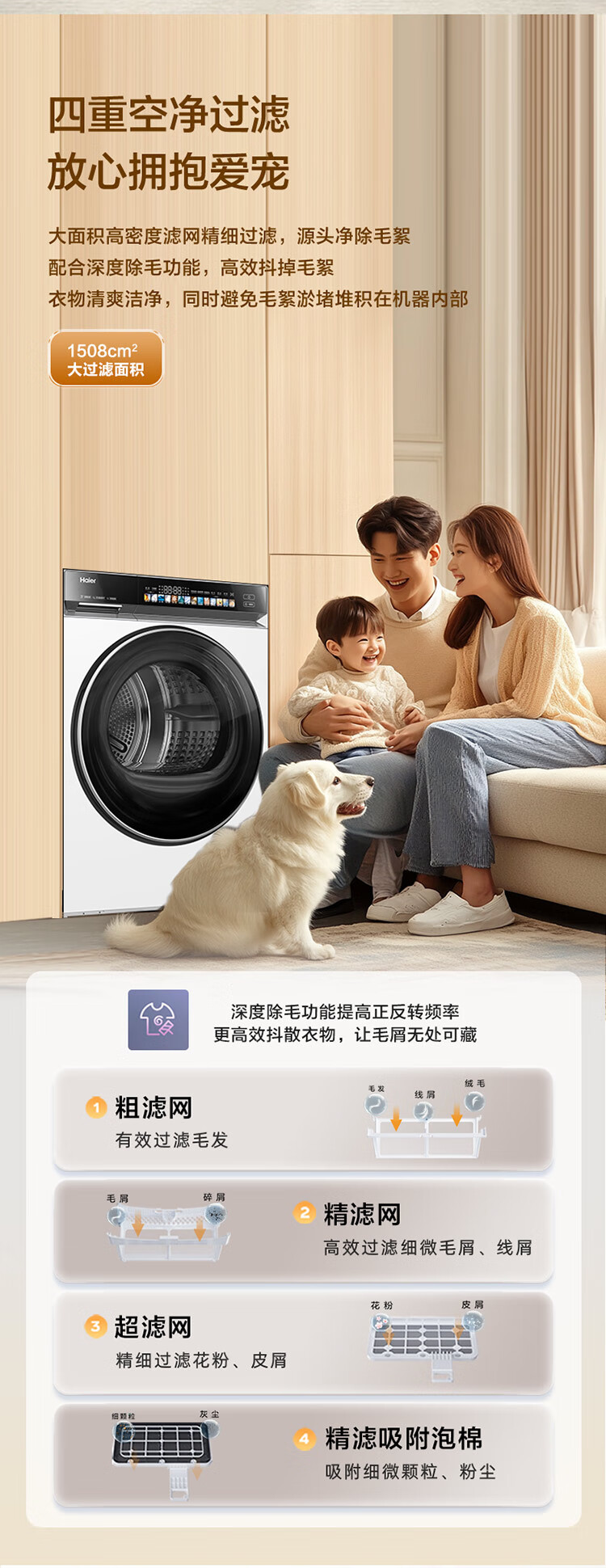 海尔(Haier)云溪3.0全自动滚筒烘干机烘衣服干衣机白色 10KG 双擎热泵 国家补贴自营 GA100-STF583WU1