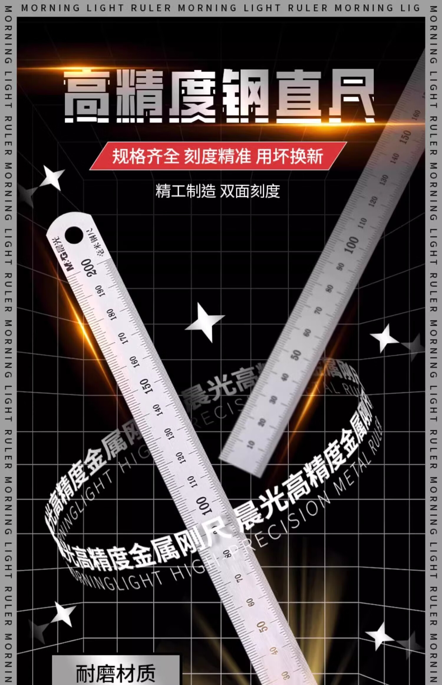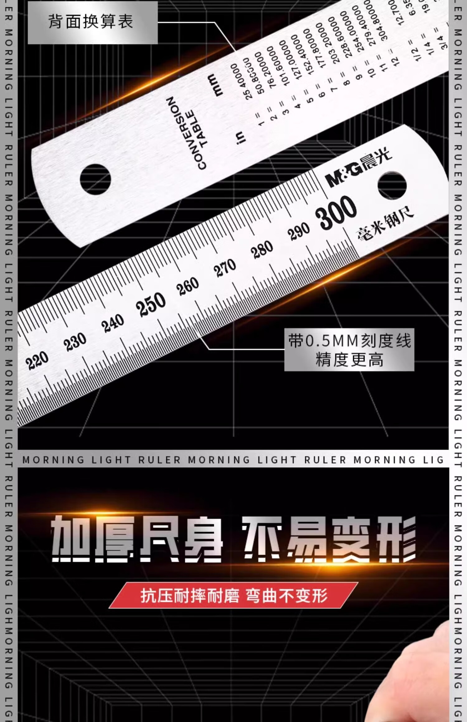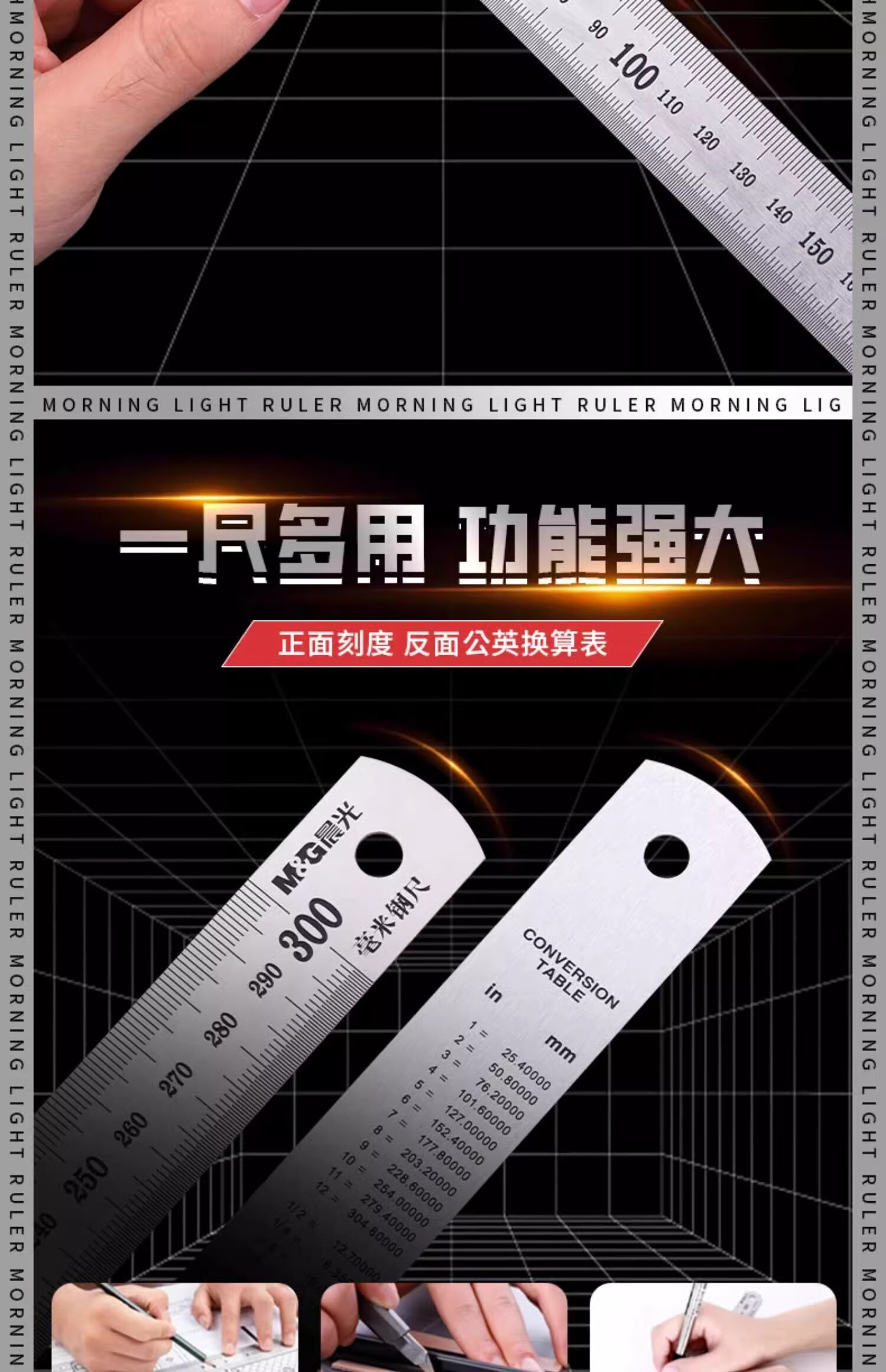 晨光(M&G)文具钢直尺20cm不锈钢板尺子加厚办公用品高精度双面刻度带换算表无毛边ARL96119