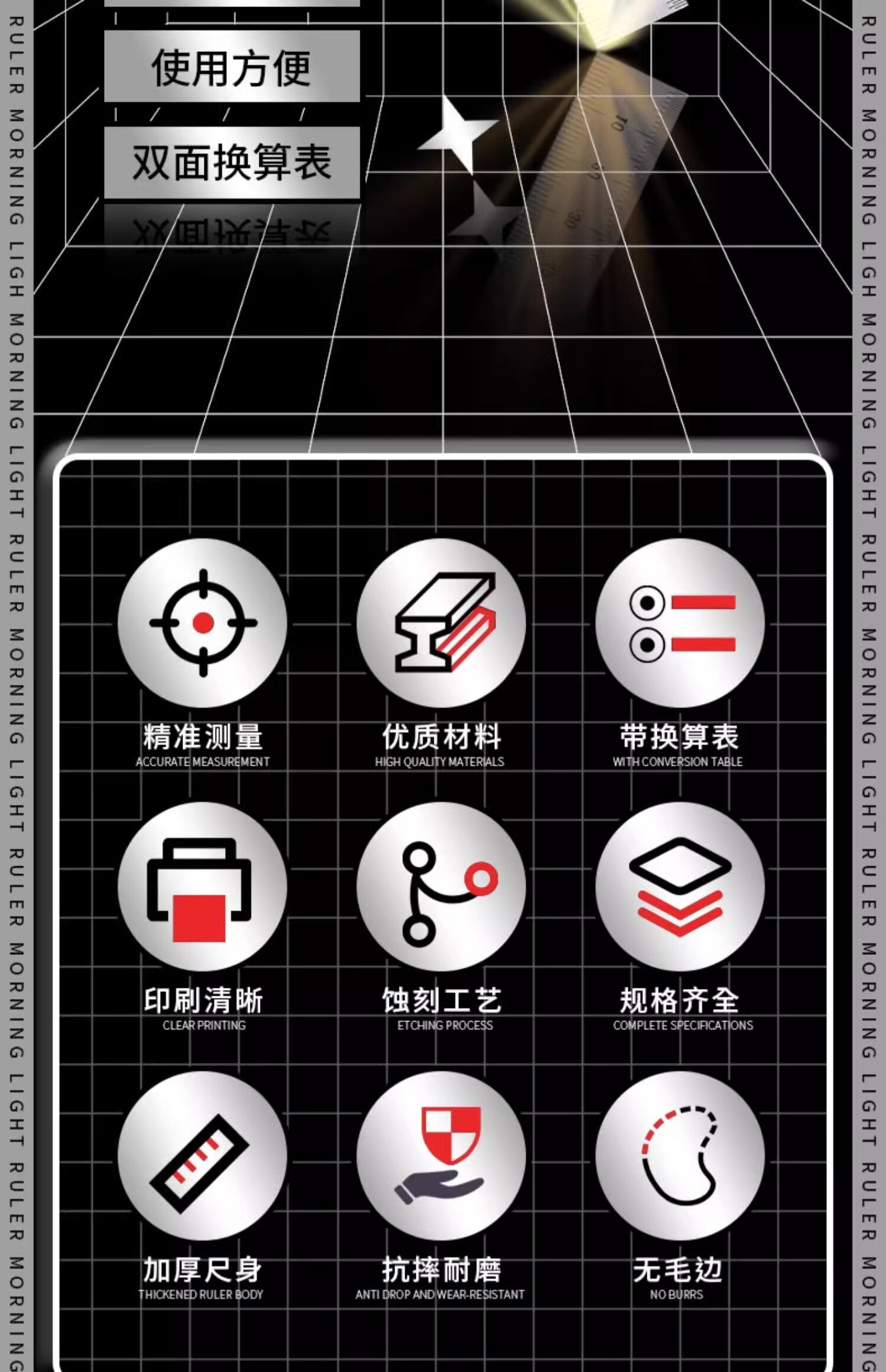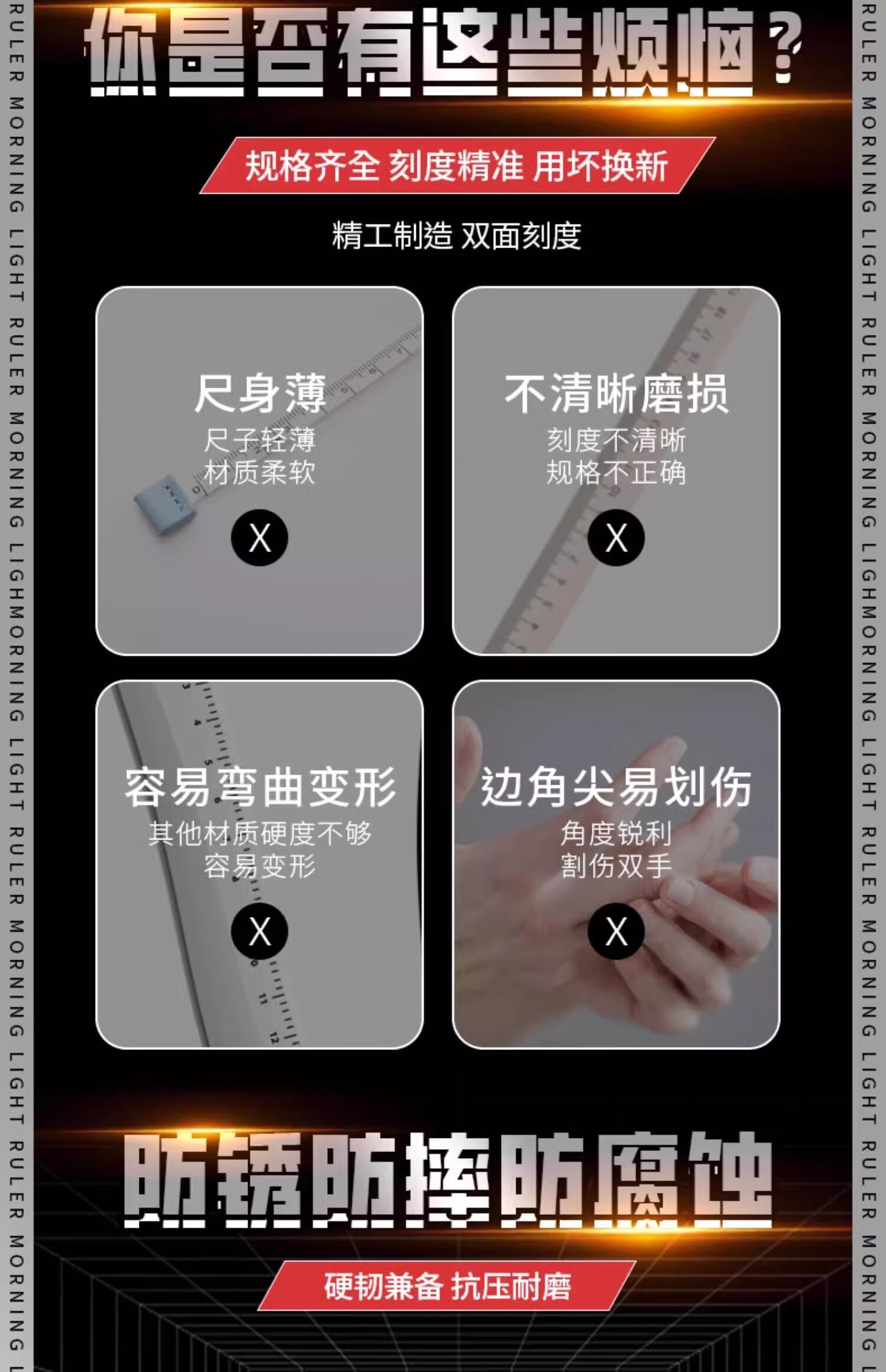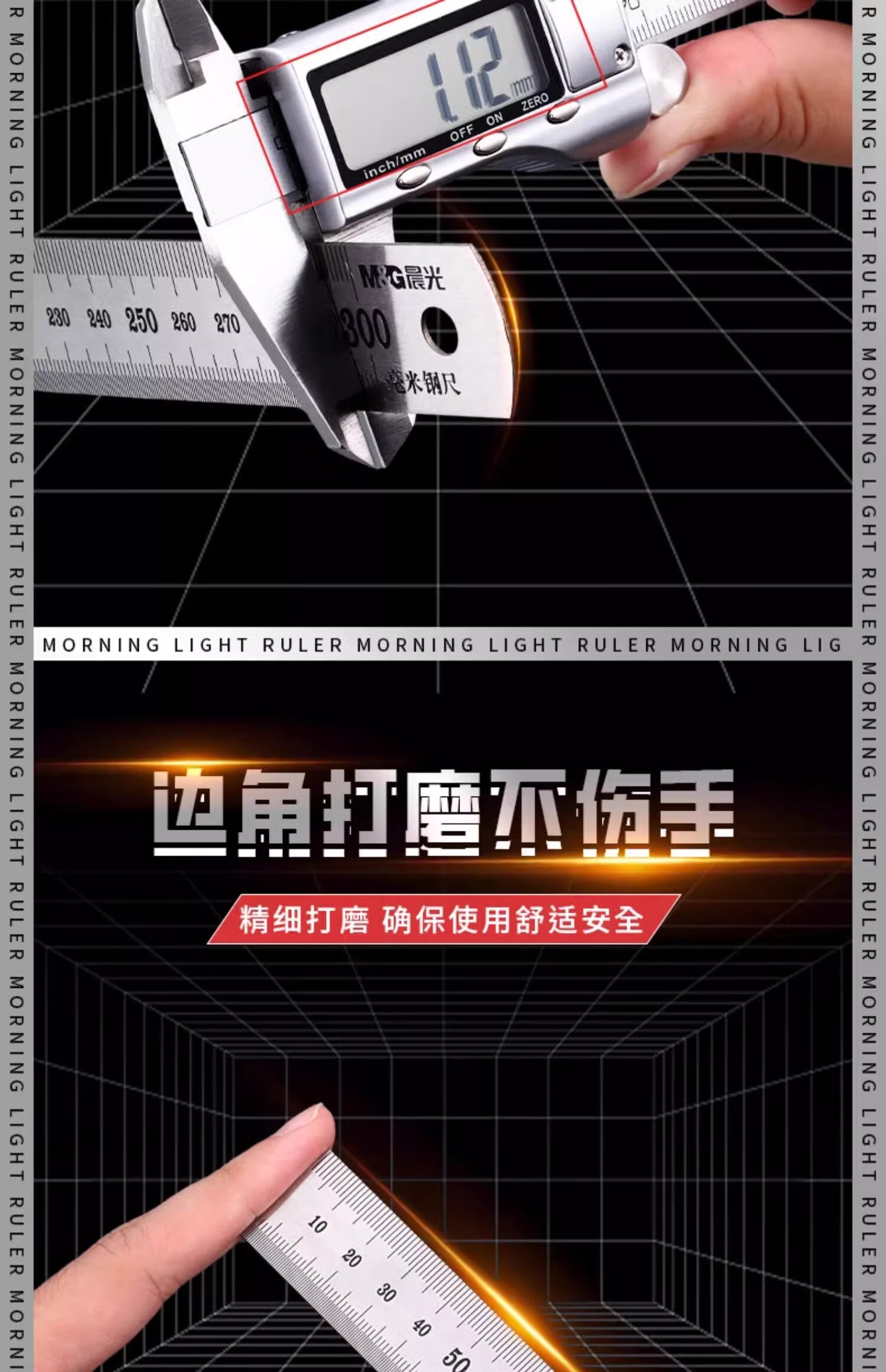晨光(M&G)文具钢直尺20cm不锈钢板尺子加厚办公用品高精度双面刻度带换算表无毛边ARL96119
