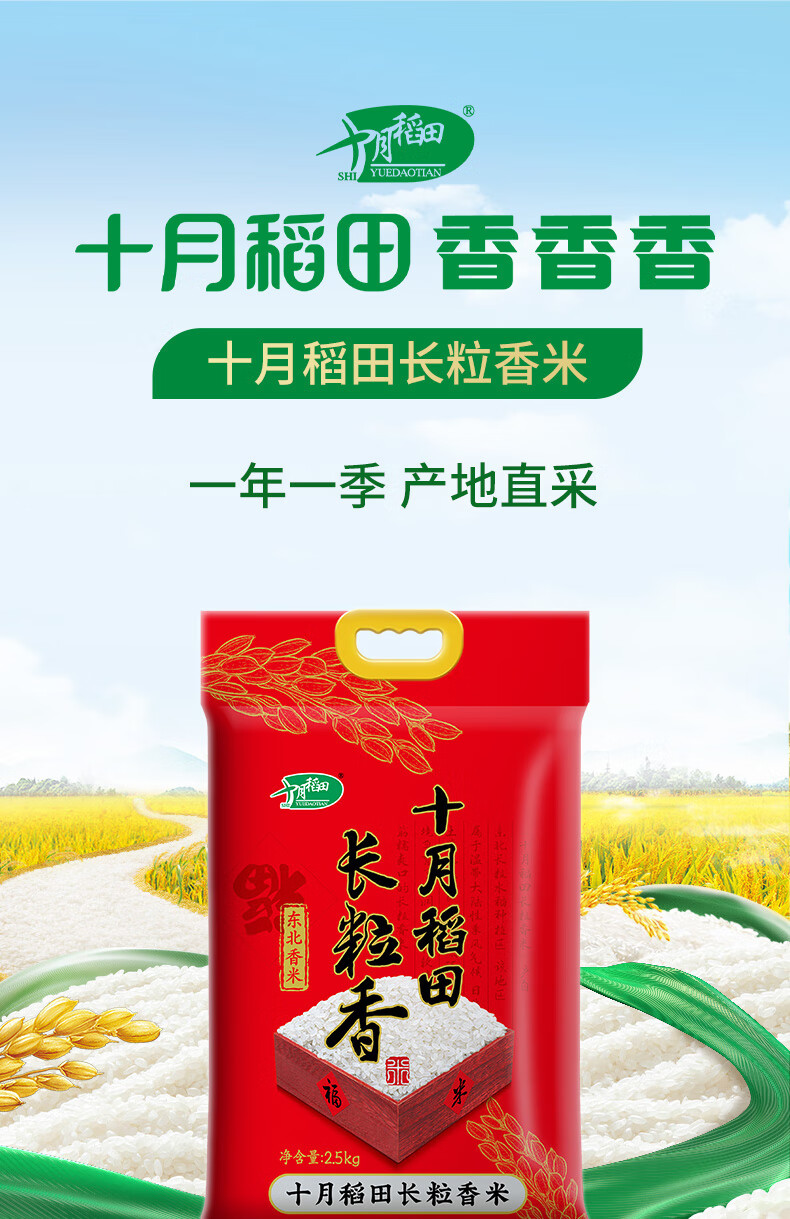 十月稻田 【2025年新米】长粒香大米2.5kg 东北大米5斤