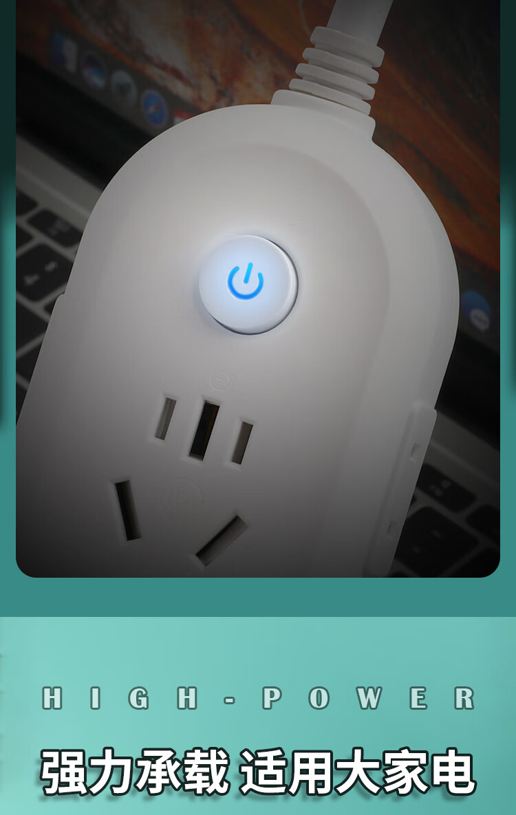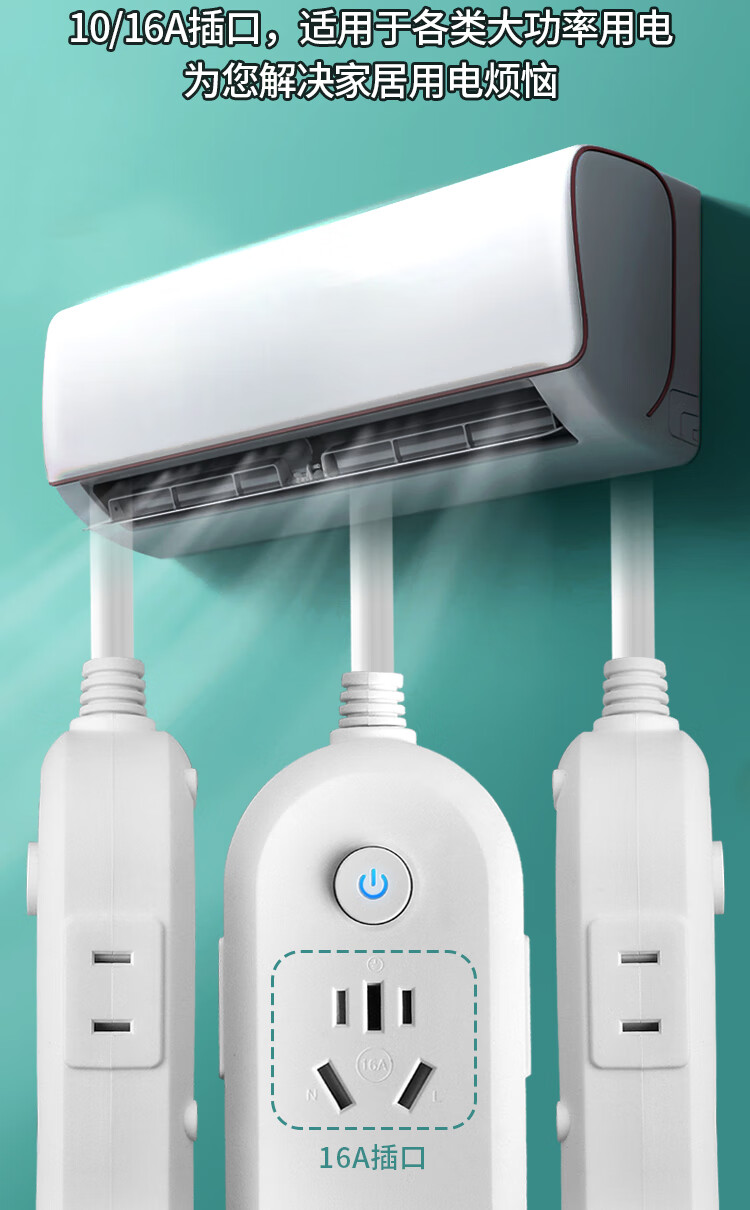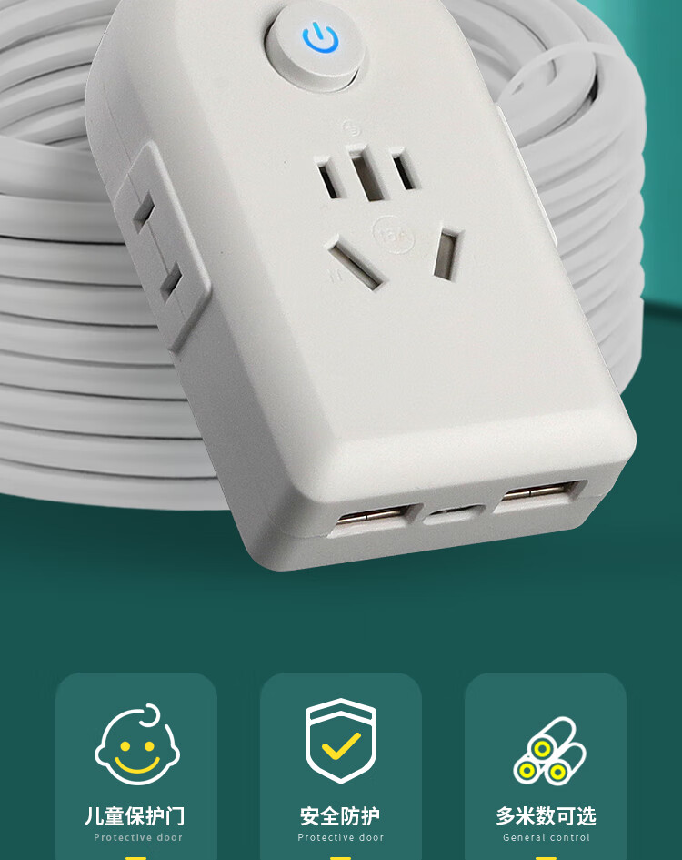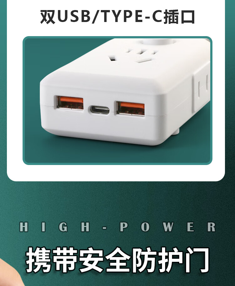 【京东物流】大功率插座 家用智能排插米用家用USB插座板插线板电源多功能开关 白色9孔10A全长0.1米