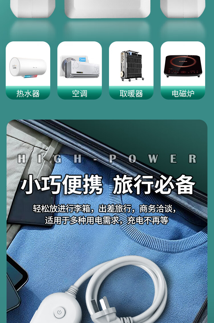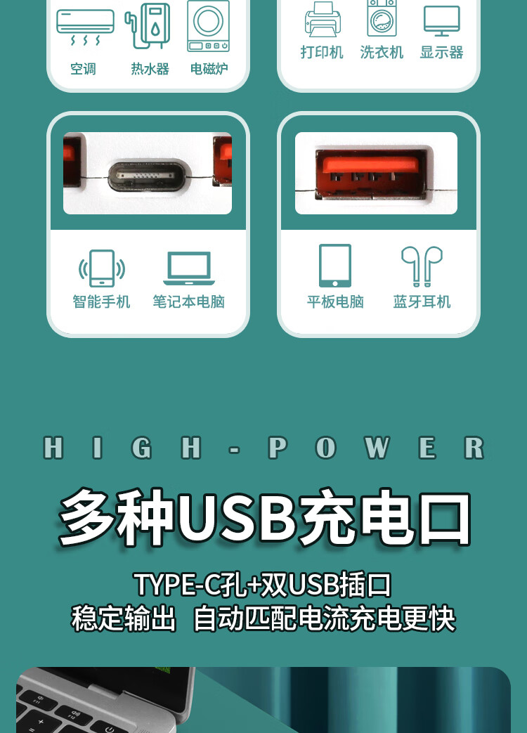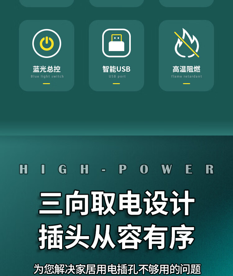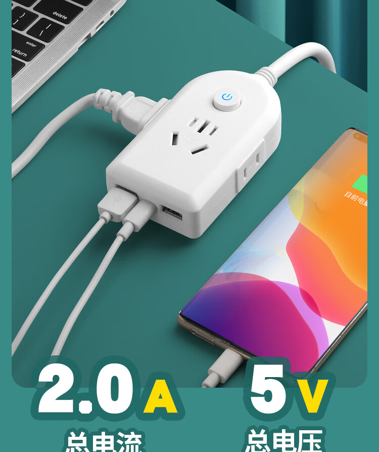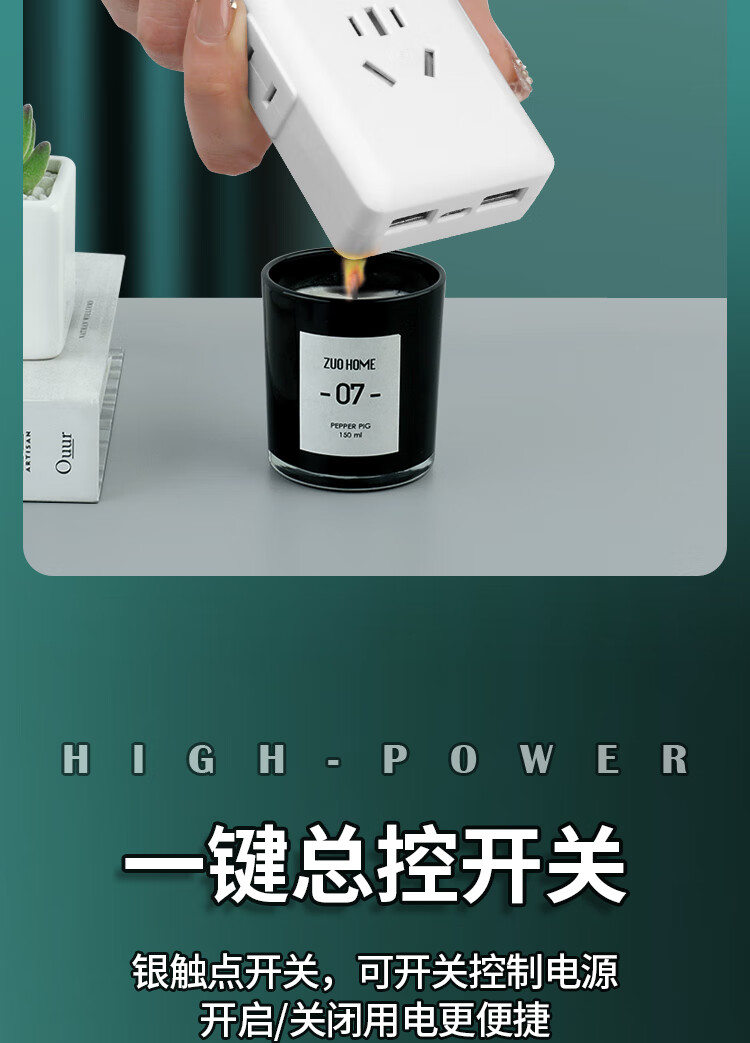 【京东物流】大功率插座 家用智能排插米用家用USB插座板插线板电源多功能开关 白色9孔10A全长0.1米