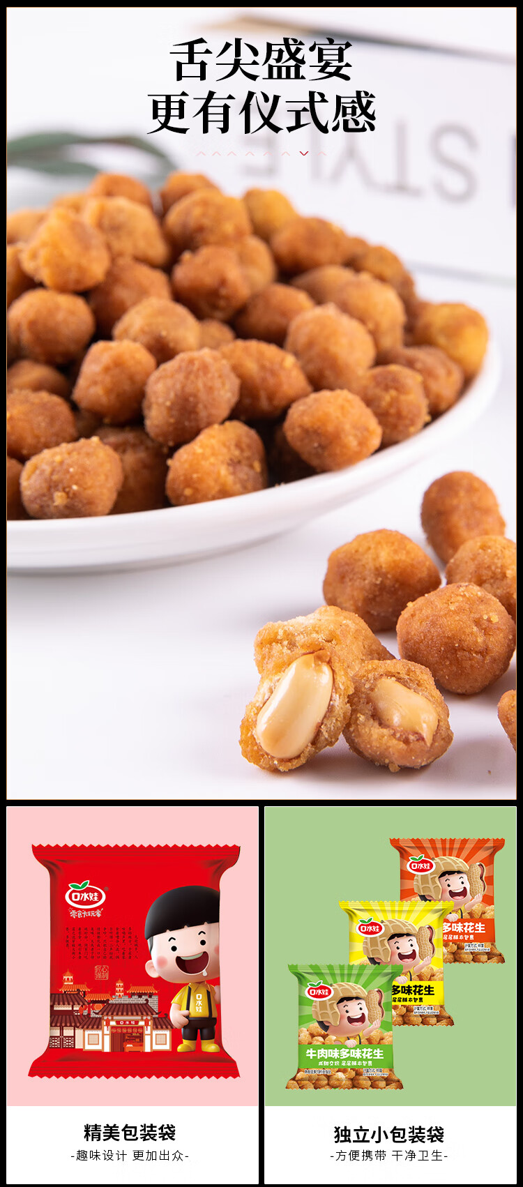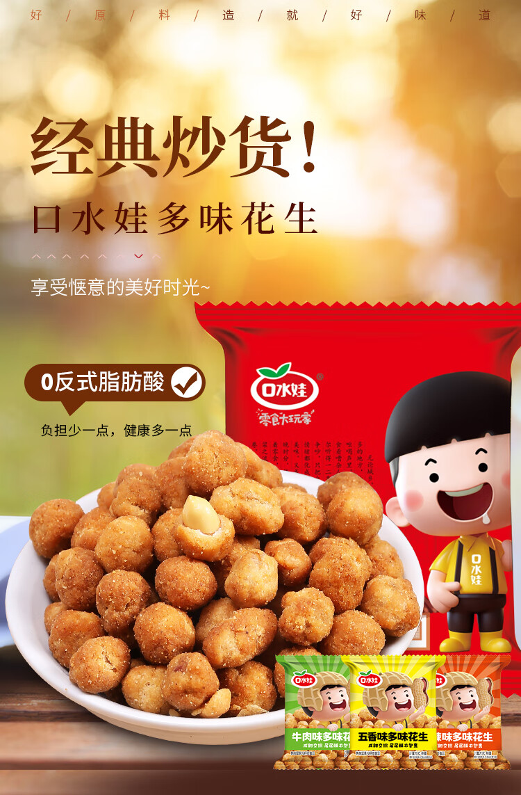 口水娃多味花生混合味500g坚果炒货休闲零食团购大包装1斤装