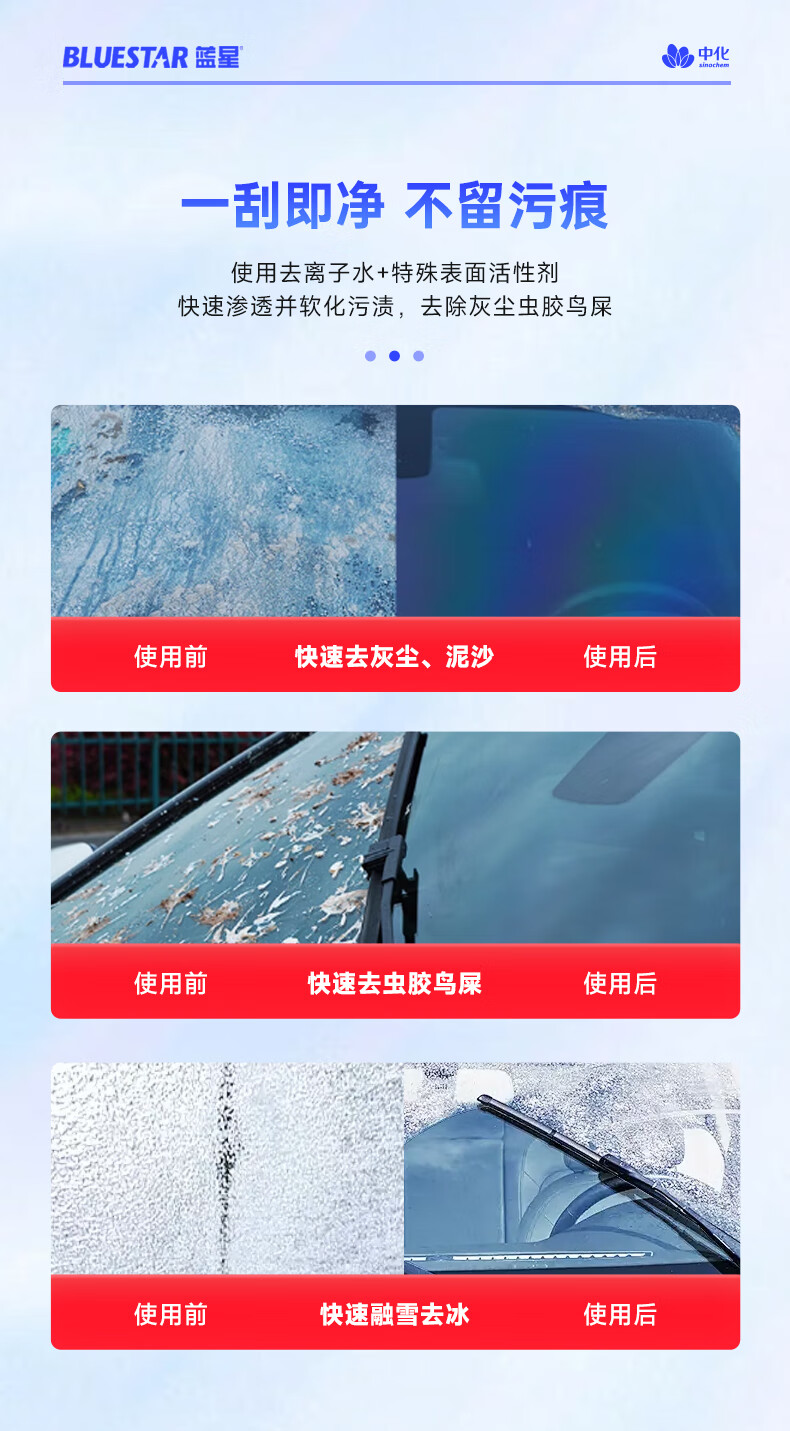 蓝星防冻玻璃水-40度 2L*2瓶 汽车玻璃强力去油膜去污雨刮水四季通用