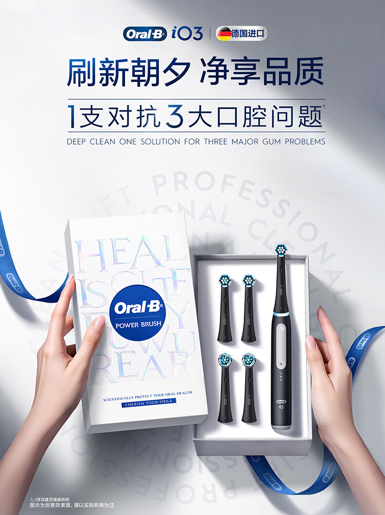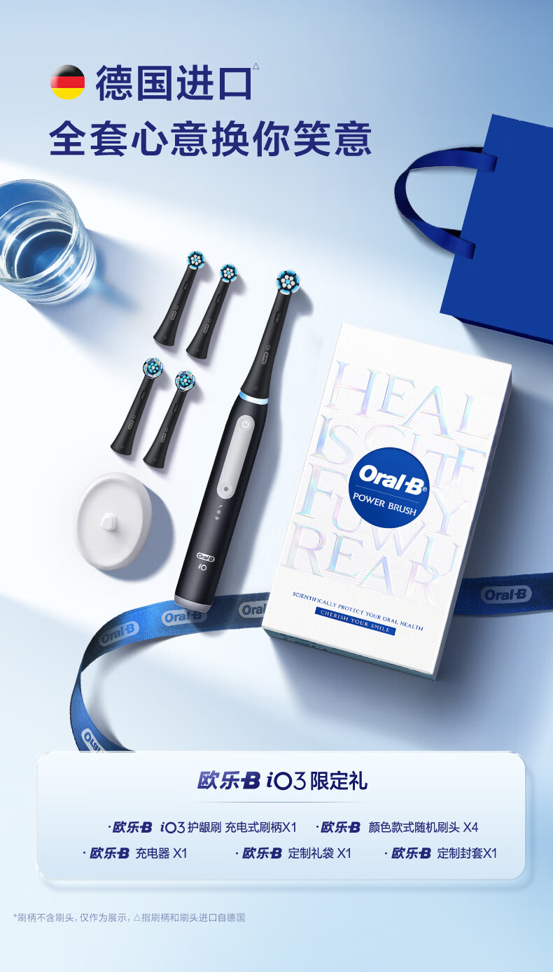 欧乐B德国进口智能电动牙刷iO3哑光黑刷头*4根源洁净京东自营京东金榜情侣生日礼物情人节礼物年会礼品
