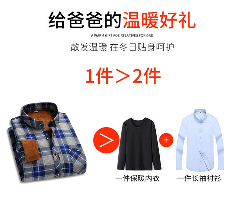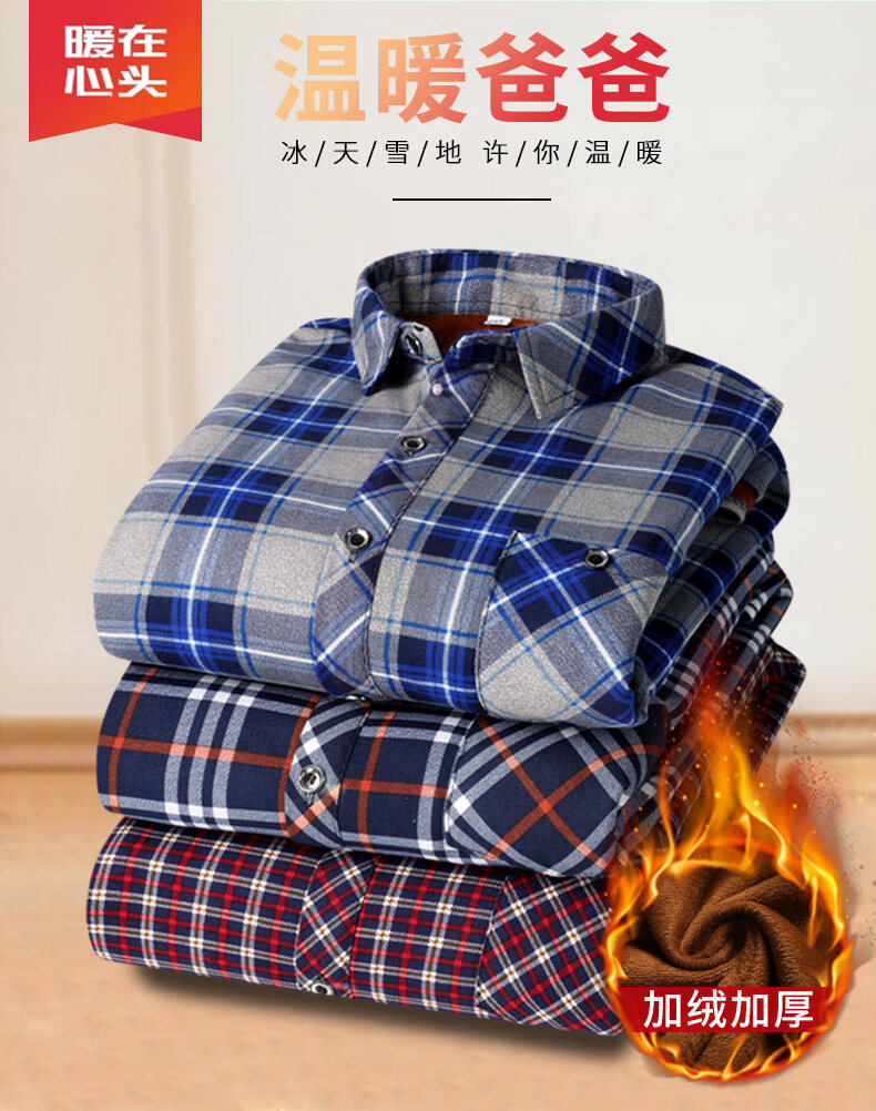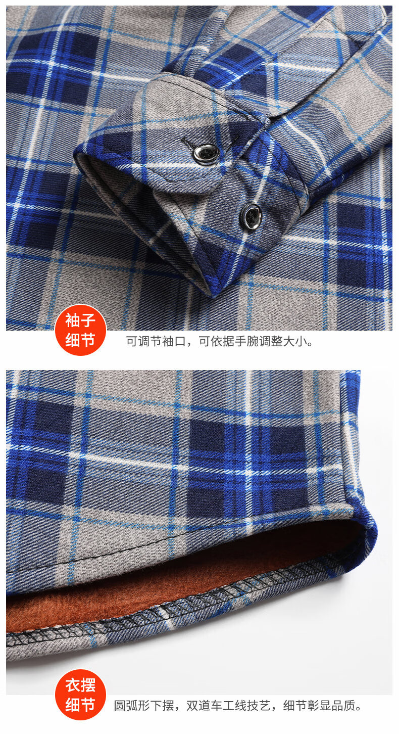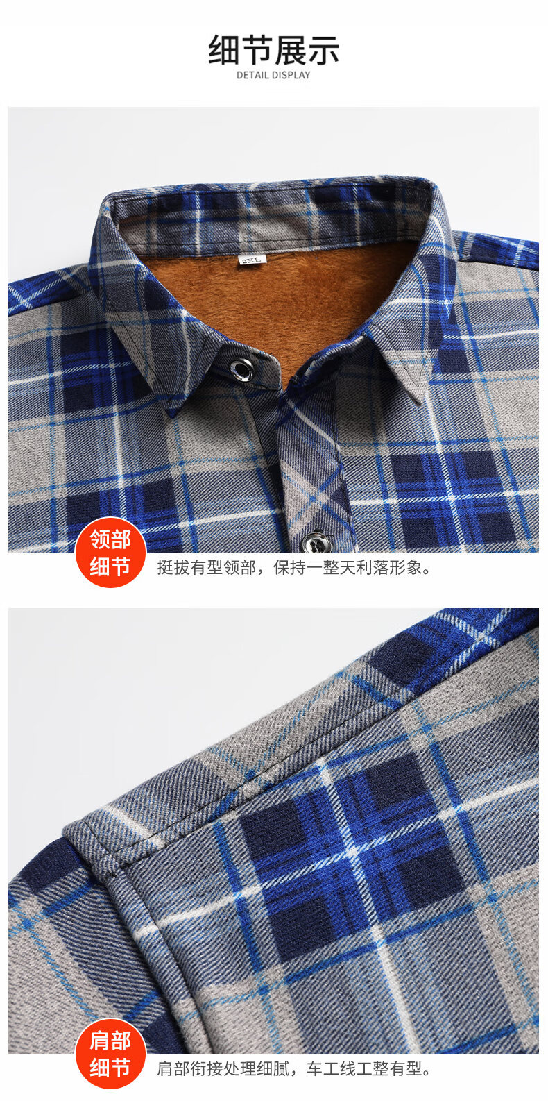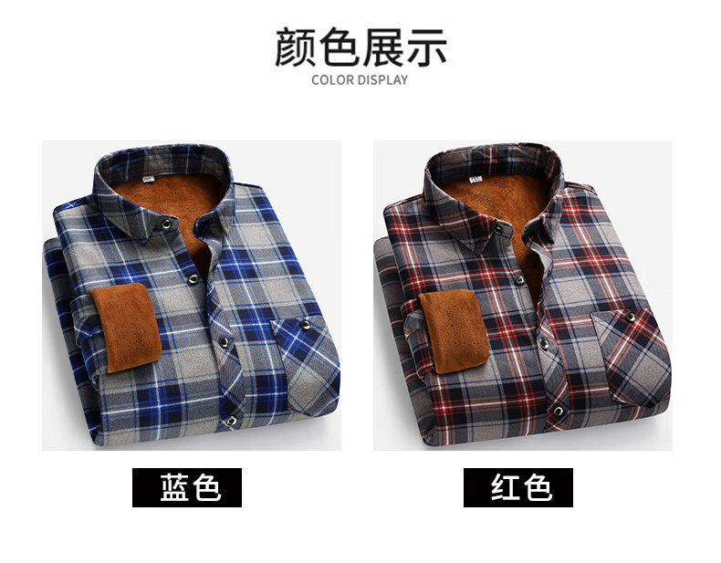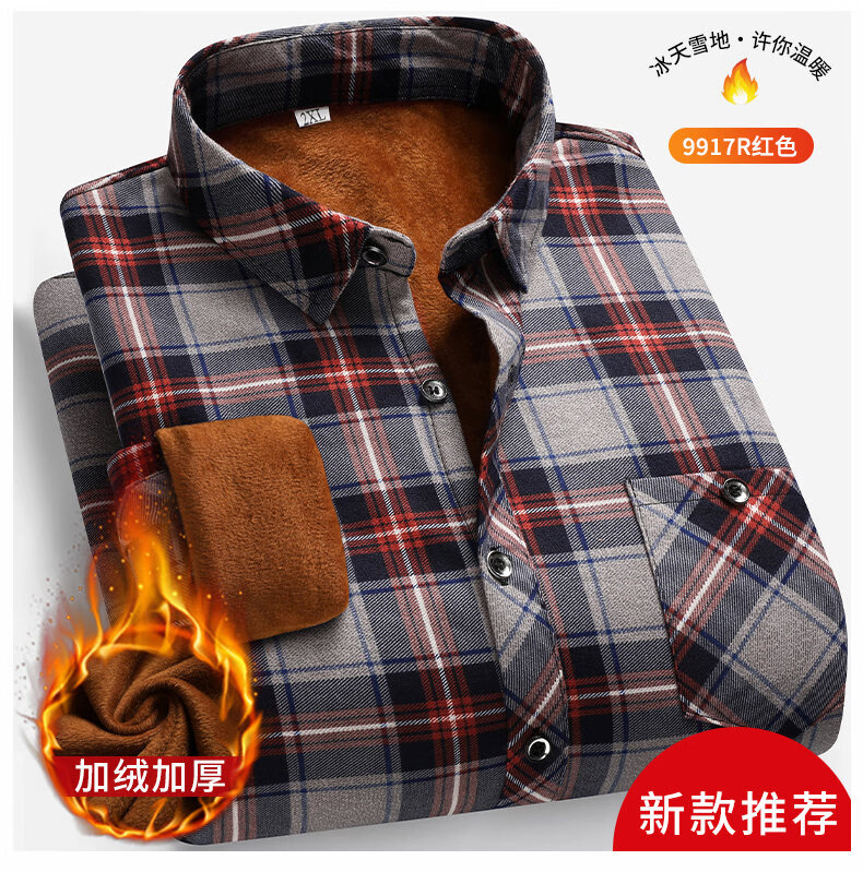 皮尔卡丹(pierre cardin)加绒加厚格子长袖衬衫男士2025冬季保暖衬衣商务休闲打底衫男 红色 4XL