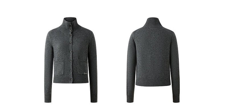 ELAND衣恋毛针织衫女气质高领长袖短款毛衣开衫2025冬季新款 中灰色(18)M/Grey M /165