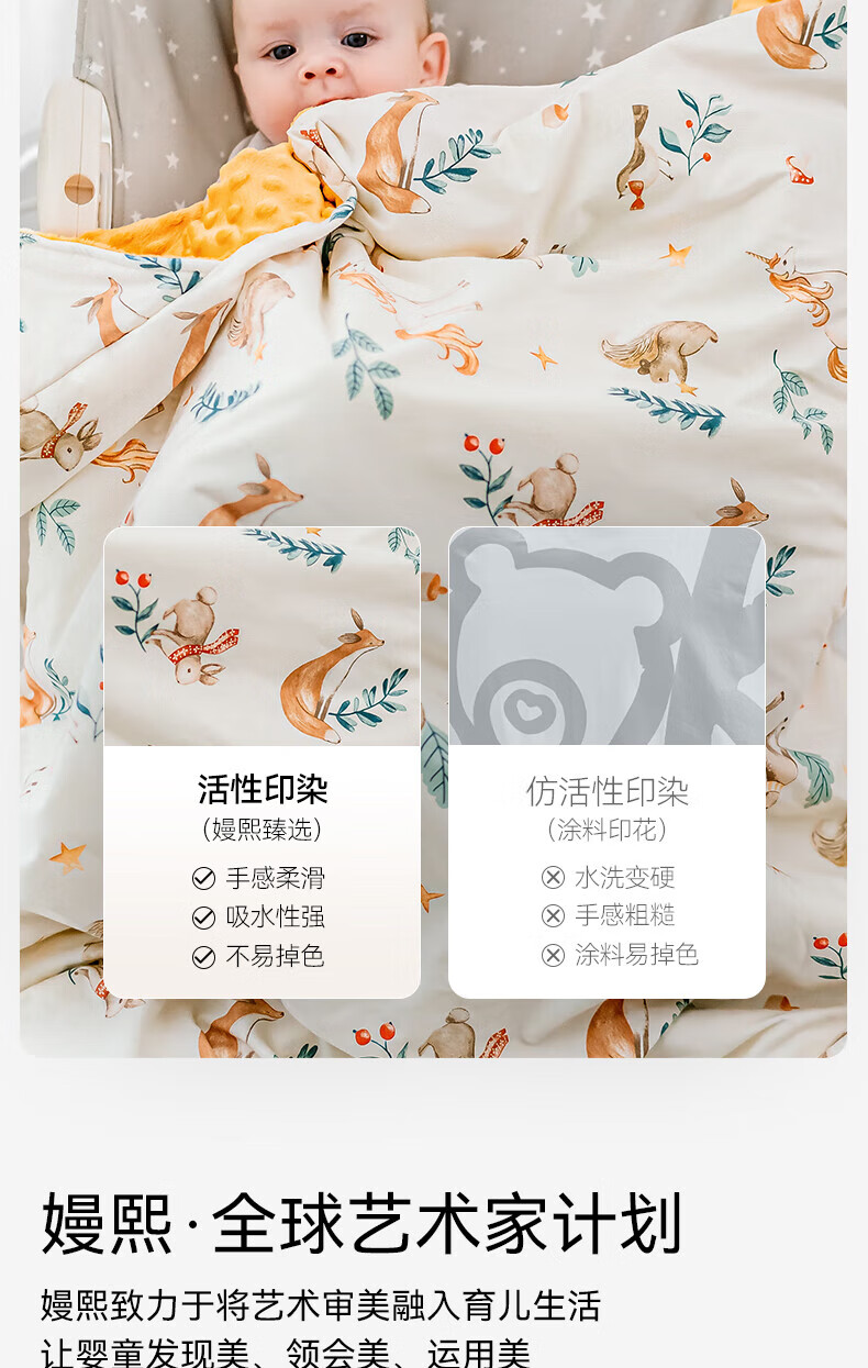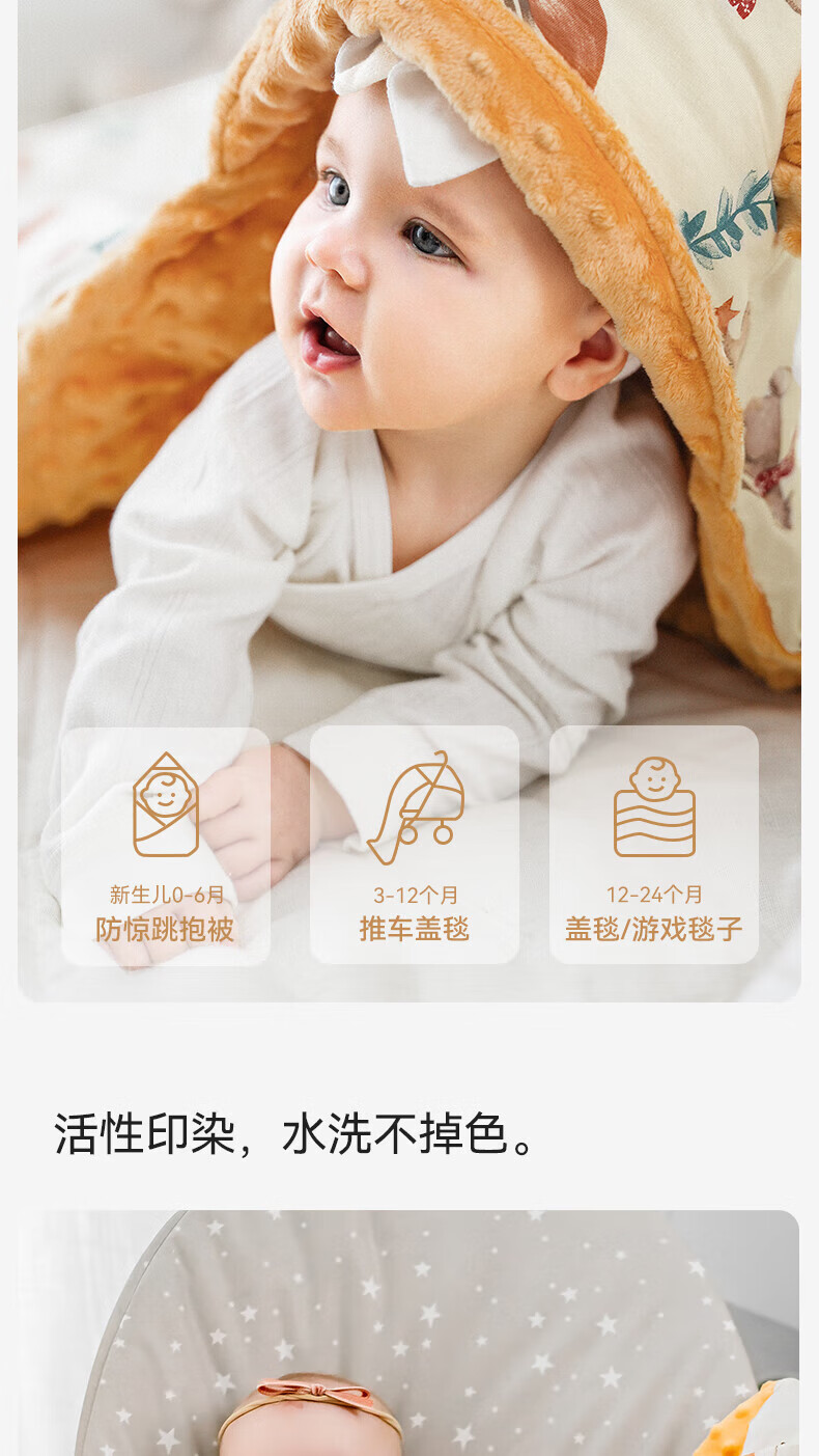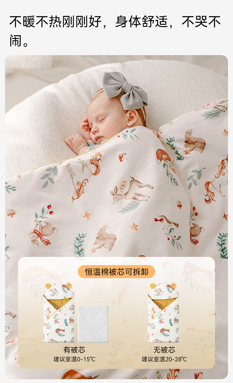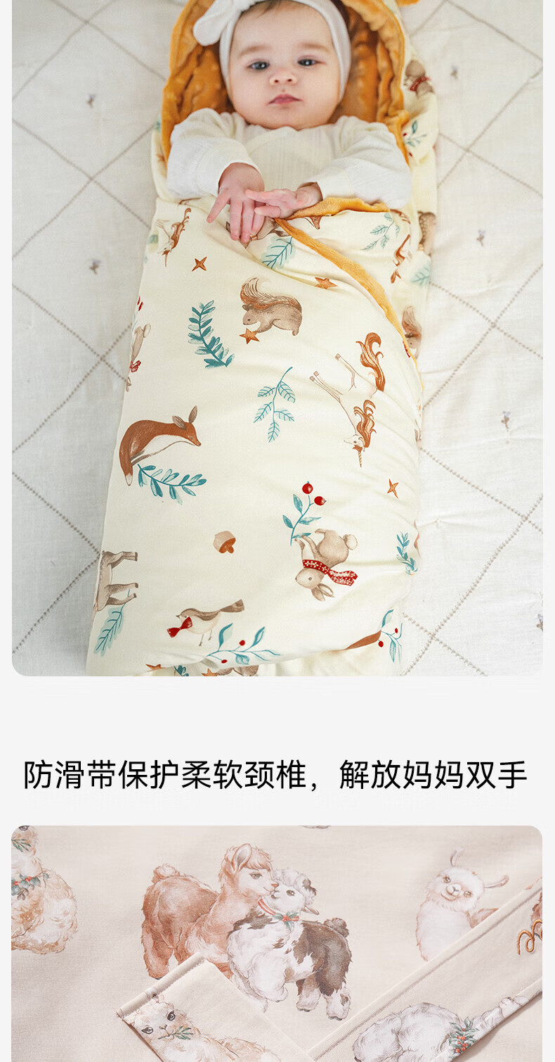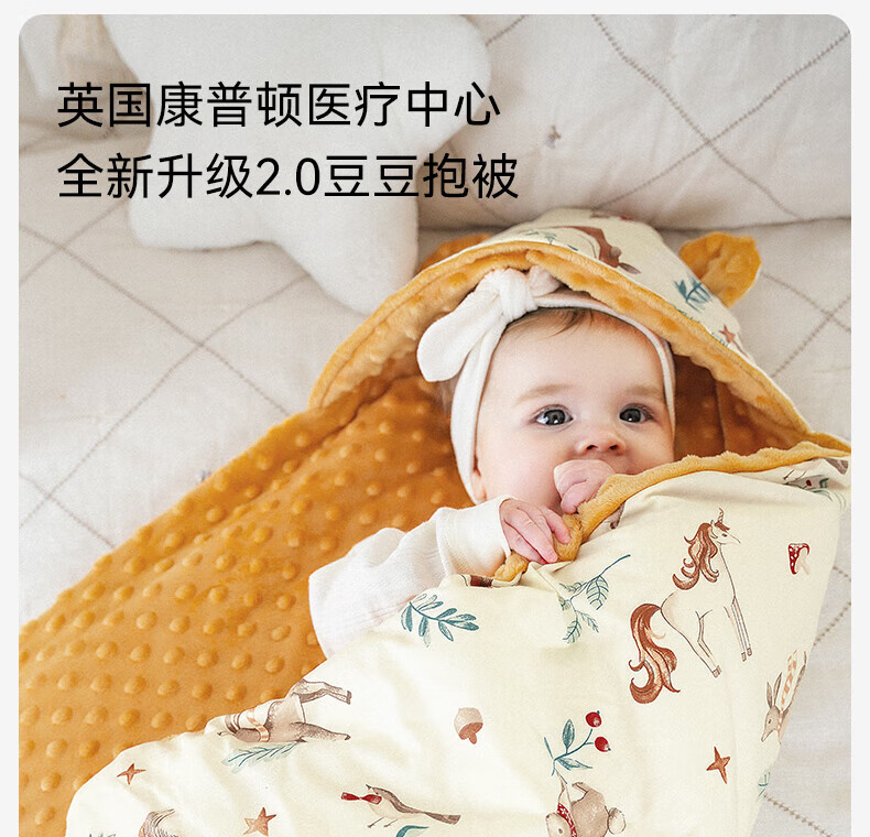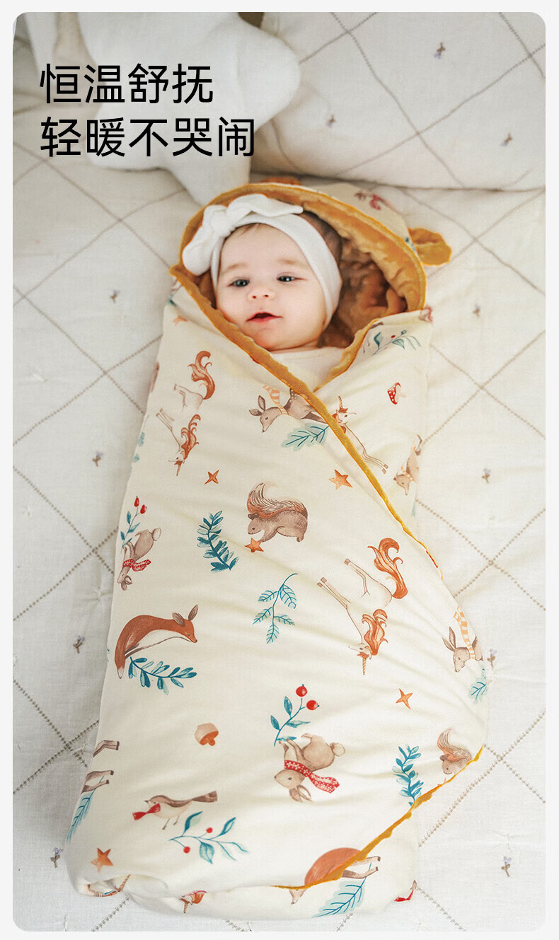 嫚熙(EMXEE)婴儿包被新生儿豆豆绒抱被宝宝秋冬季通用包单防惊跳 狐之絮语(内芯可拆 10-28℃) 90*90cm