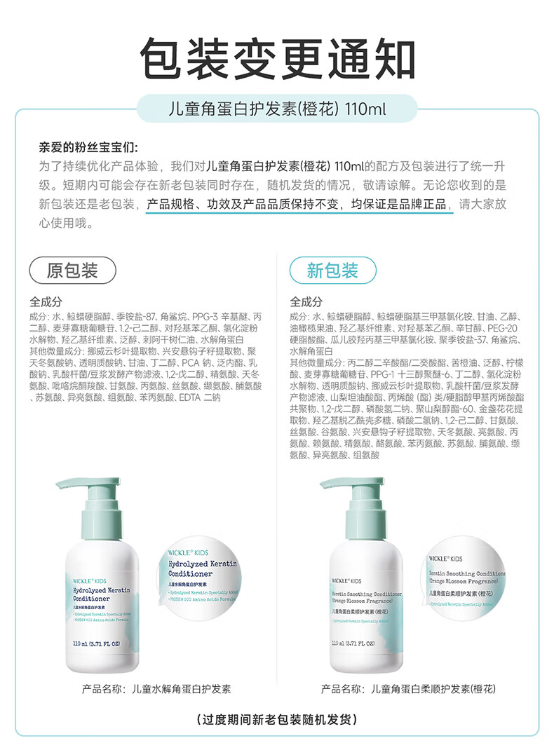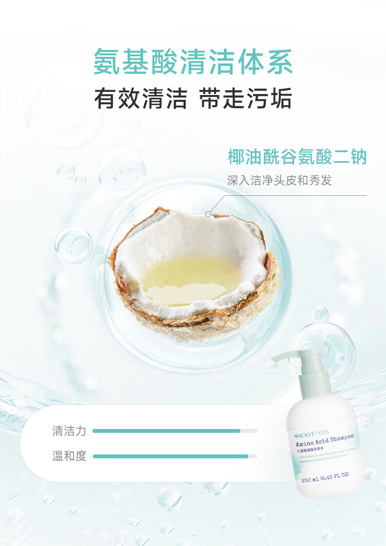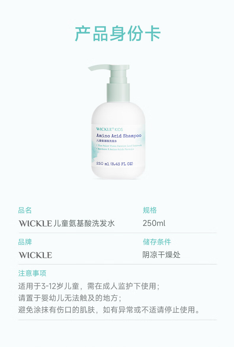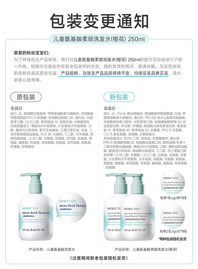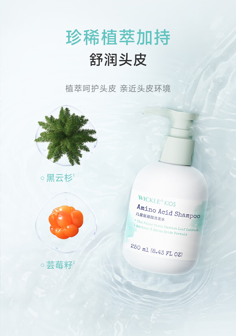 WICKLE儿童洗发水女孩宝宝专用顺滑洗发露男童中大童3岁+ 【橙花】2件更优惠-洗发水250ml*2