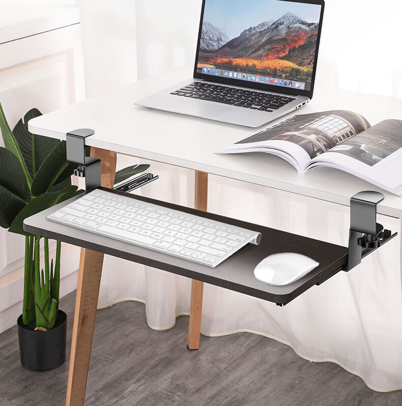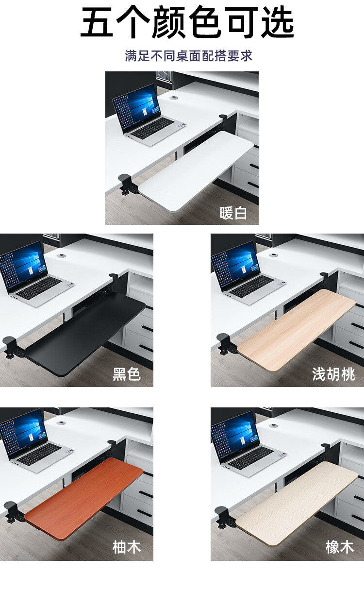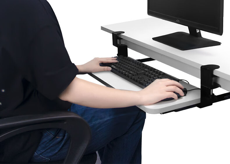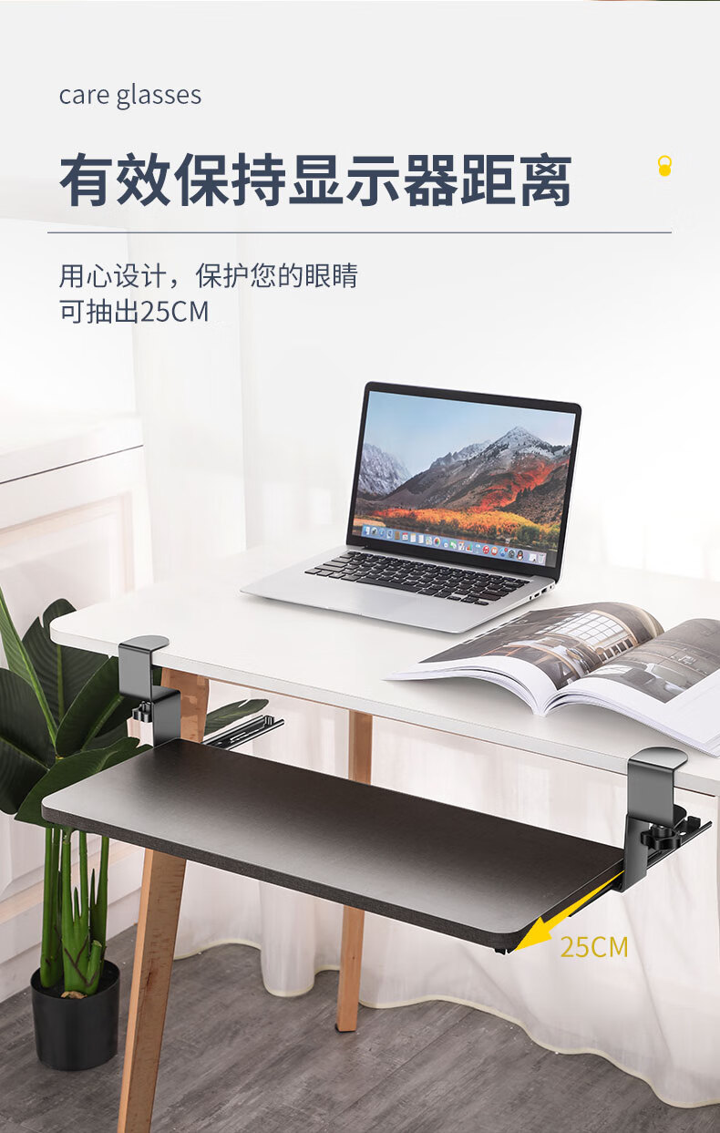 元良键盘托架免打孔 滑轨键盘架免安装桌面夹桌电脑支架抽屉鼠标收纳 白色75*25CM调节高度滑轨款