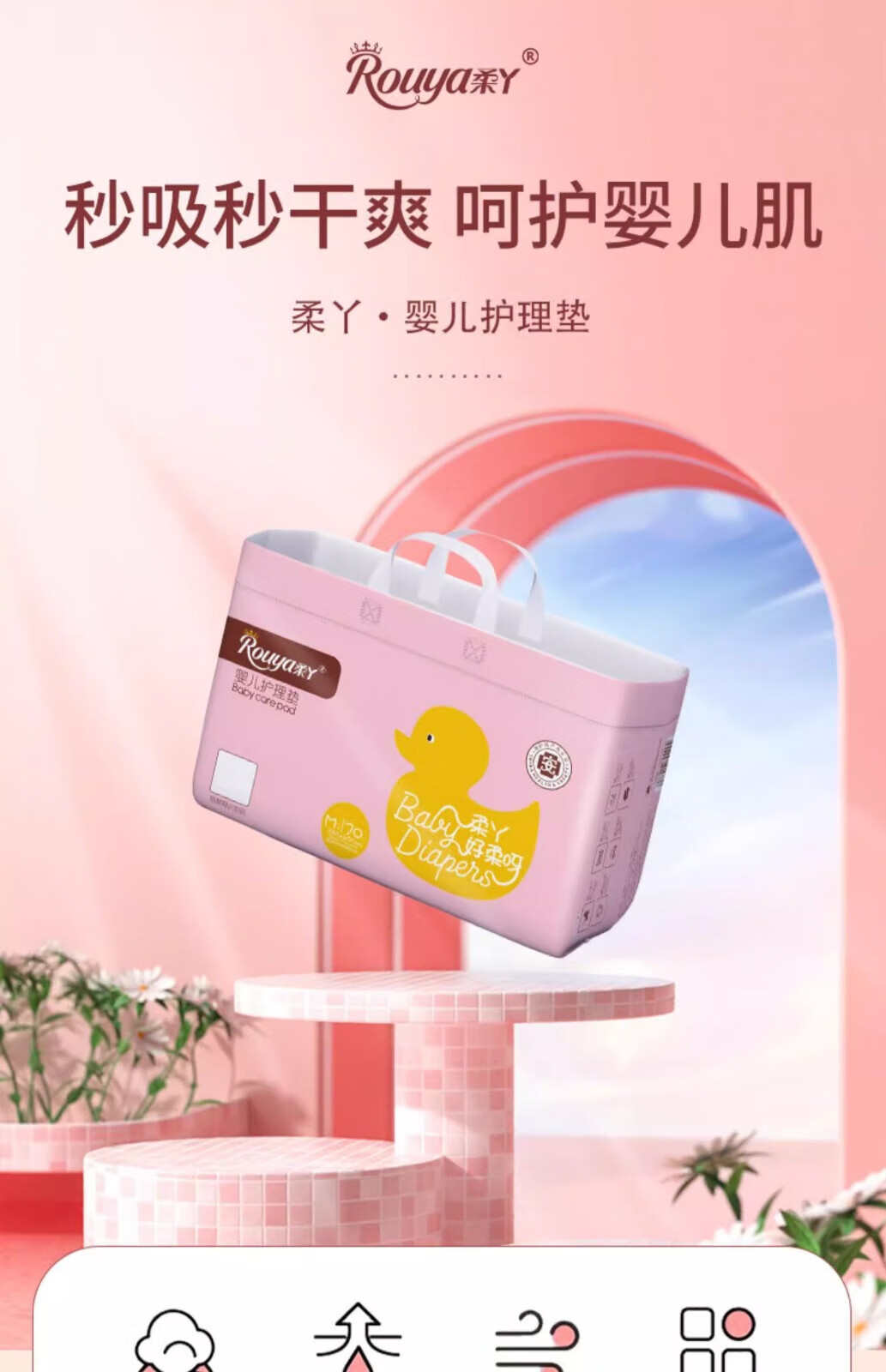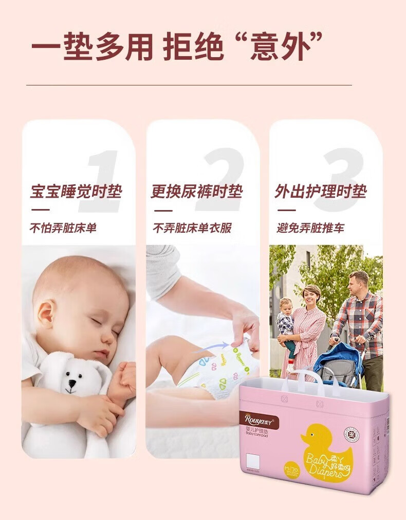 柔丫(ROUYA)6婴儿护理垫一次性新生儿防水透气尿垫床单隔尿垫云柔70片 【值装】70片/包 33*45cm
