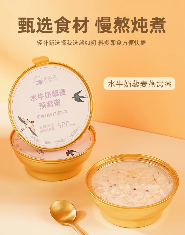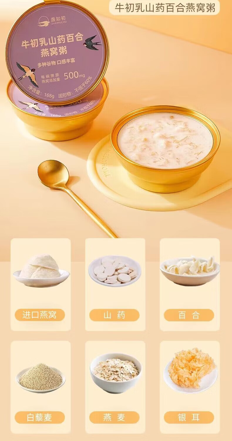 盏如初燕窝粥山药百合即食免煮早餐代餐速食粥营养孕妇8碗燕窝粥 山药百合燕窝粥+藜麦燕窝粥/非礼盒装 168g*8碗