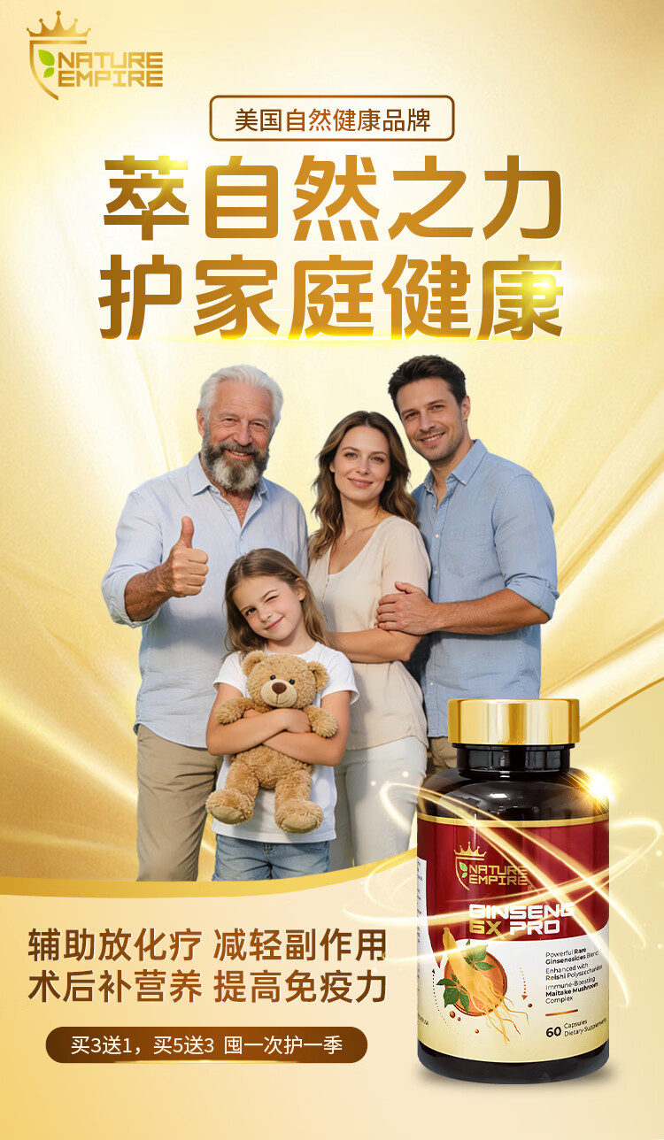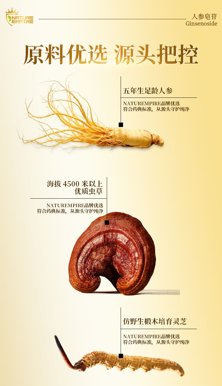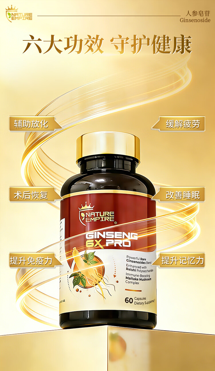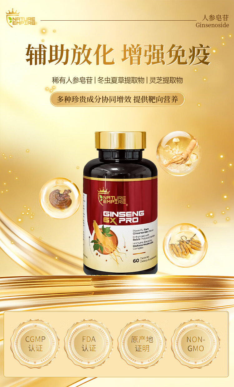 NATUREMPIRE美国原装进口稀有人参皂苷rg3rh2胶囊冬虫夏草营养保健补品免疫力 【2瓶见效装】立享9折 术后恢复 60粒*2瓶