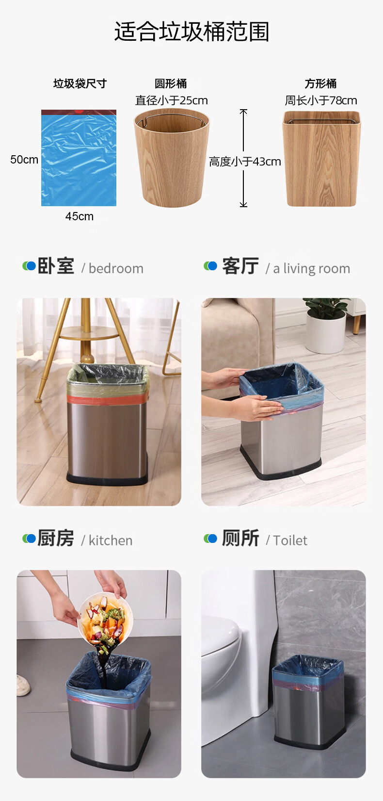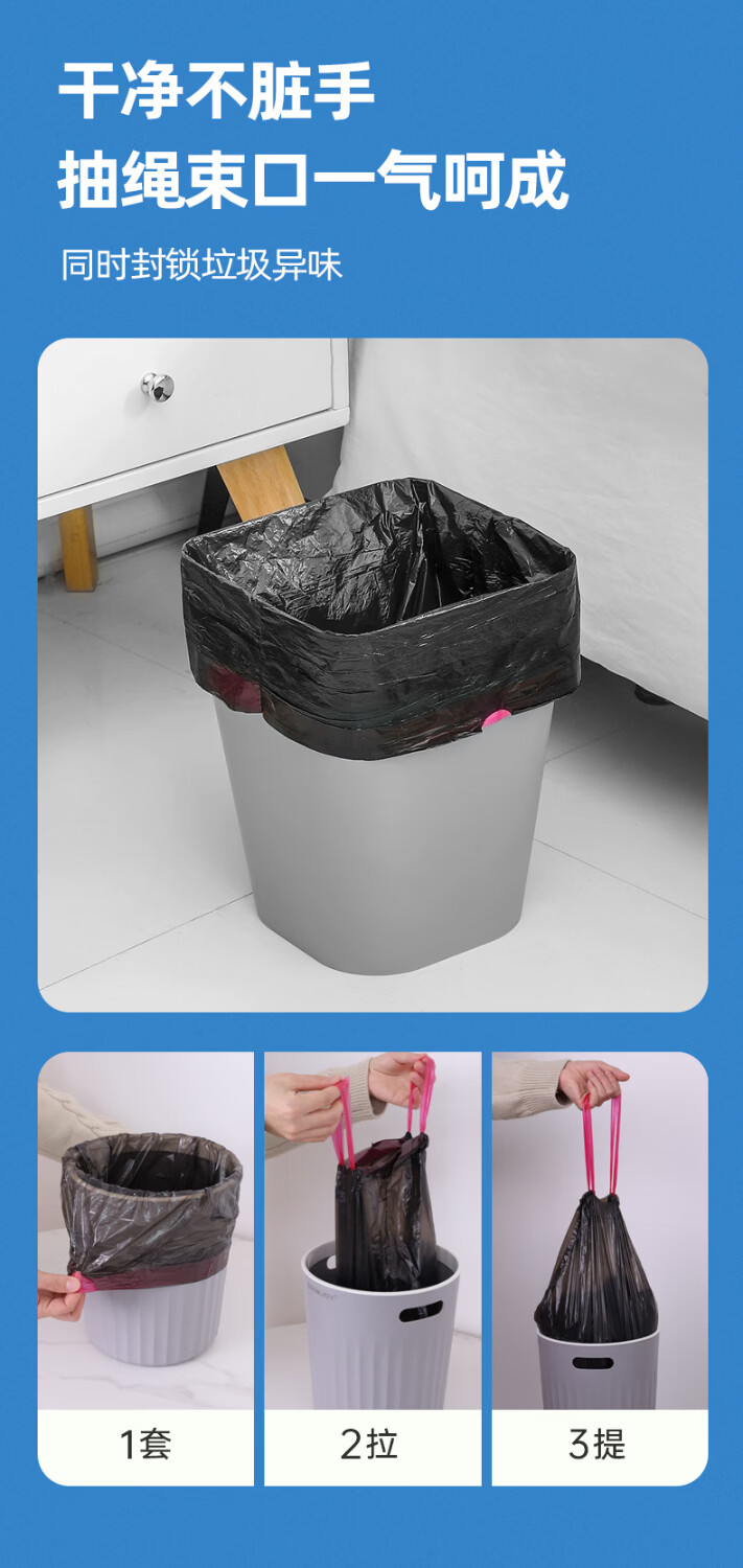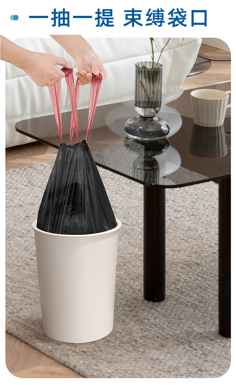鹰大抽绳垃圾袋加厚自动收口办公室家用卫生间卧室拉穿绳垃圾袋手提式 抽绳垃圾袋(彩色混发) 45*50cm【150只=10卷/每卷15只】