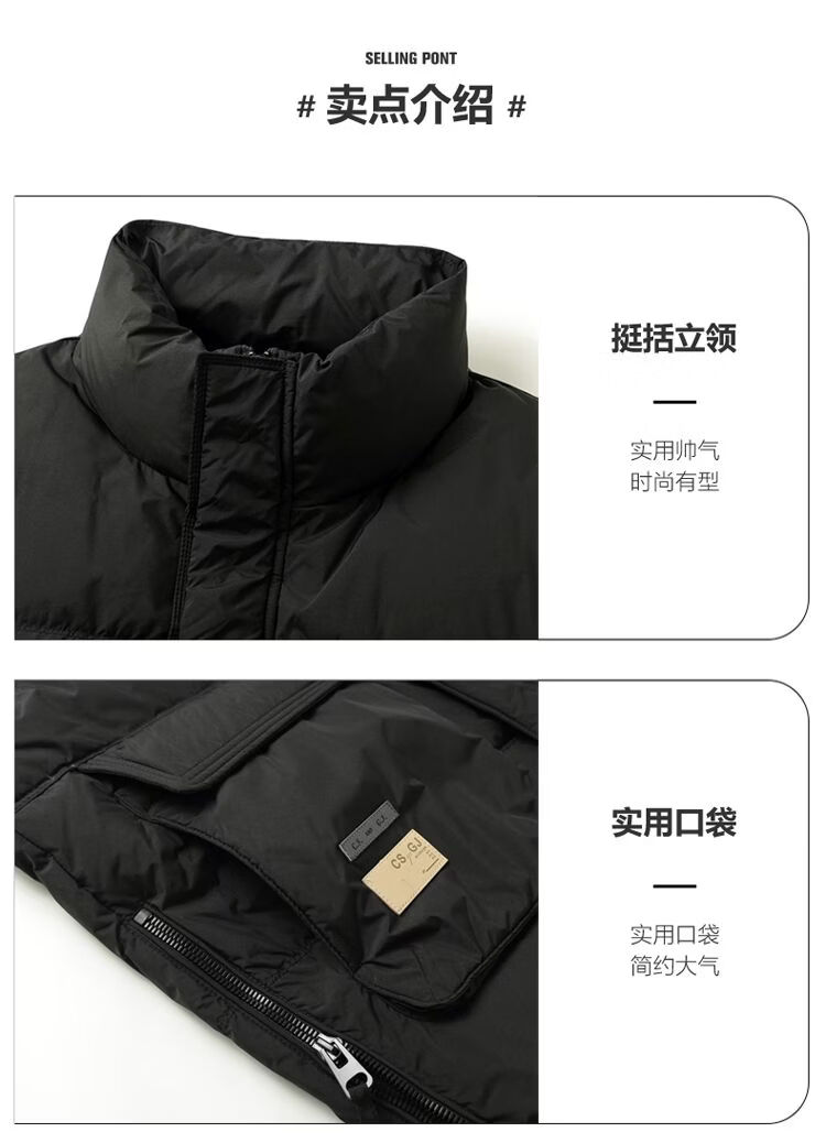 波司登冰洁2025冬季款轻薄轻便羽绒马夹男潮流羽绒服保暖外套马甲 黑色 M体重95至115