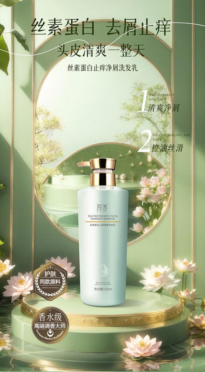 淳养丝素蛋白控油蓬松洗发水氨基酸去屑止痒洗头膏烫染护色芳香洗发露 去屑止痒洗发露(净屑控油)520ml