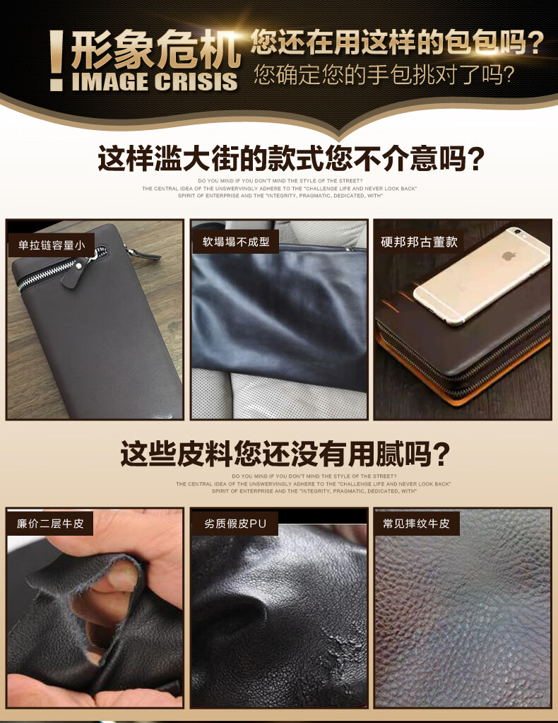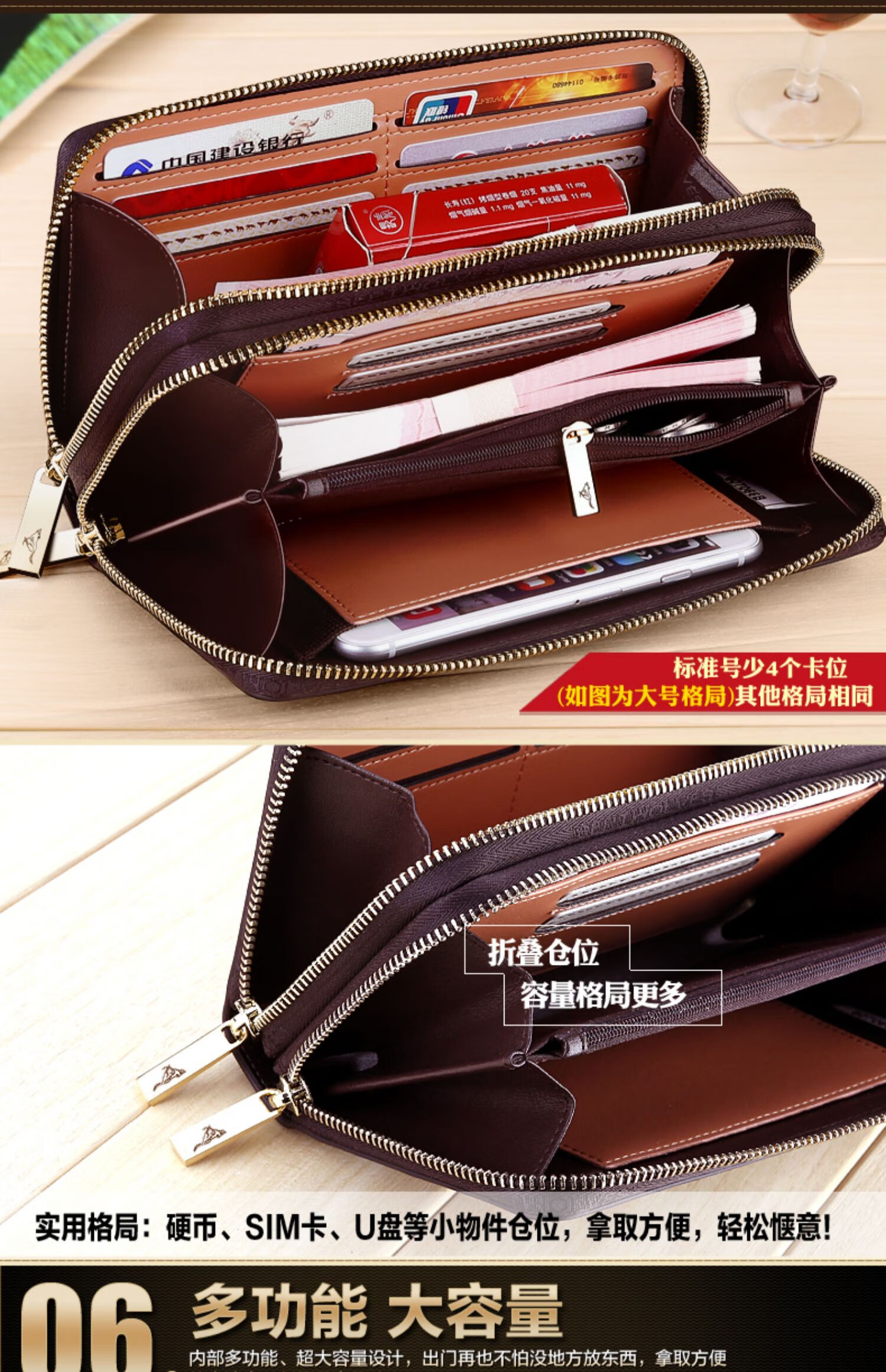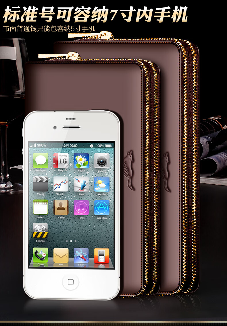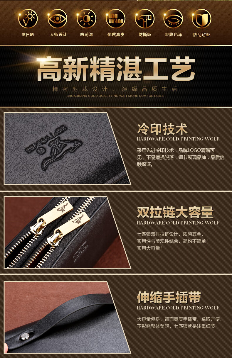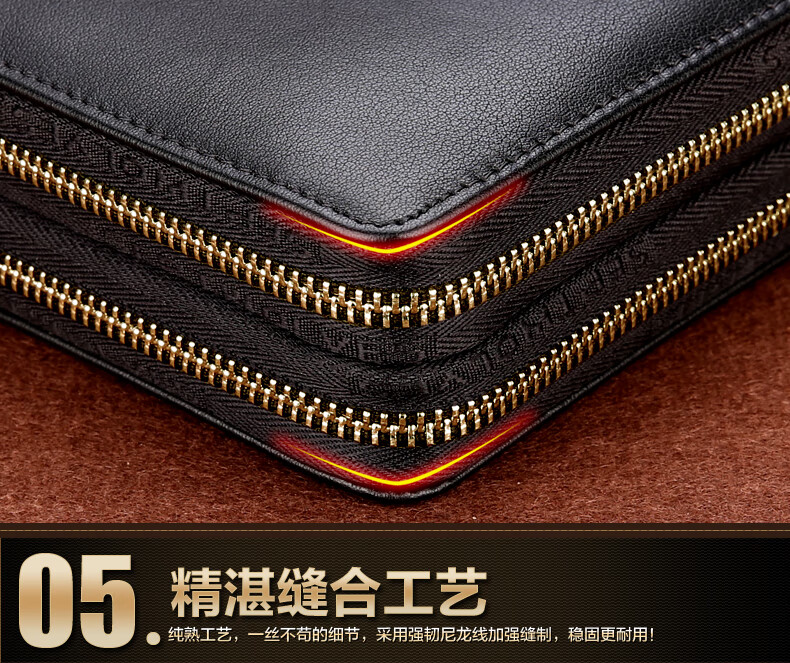 七匹狼手拿包男真皮男包双拉链大容量钱包大牌手包男士潮皮包父亲节礼物 咖色加大号