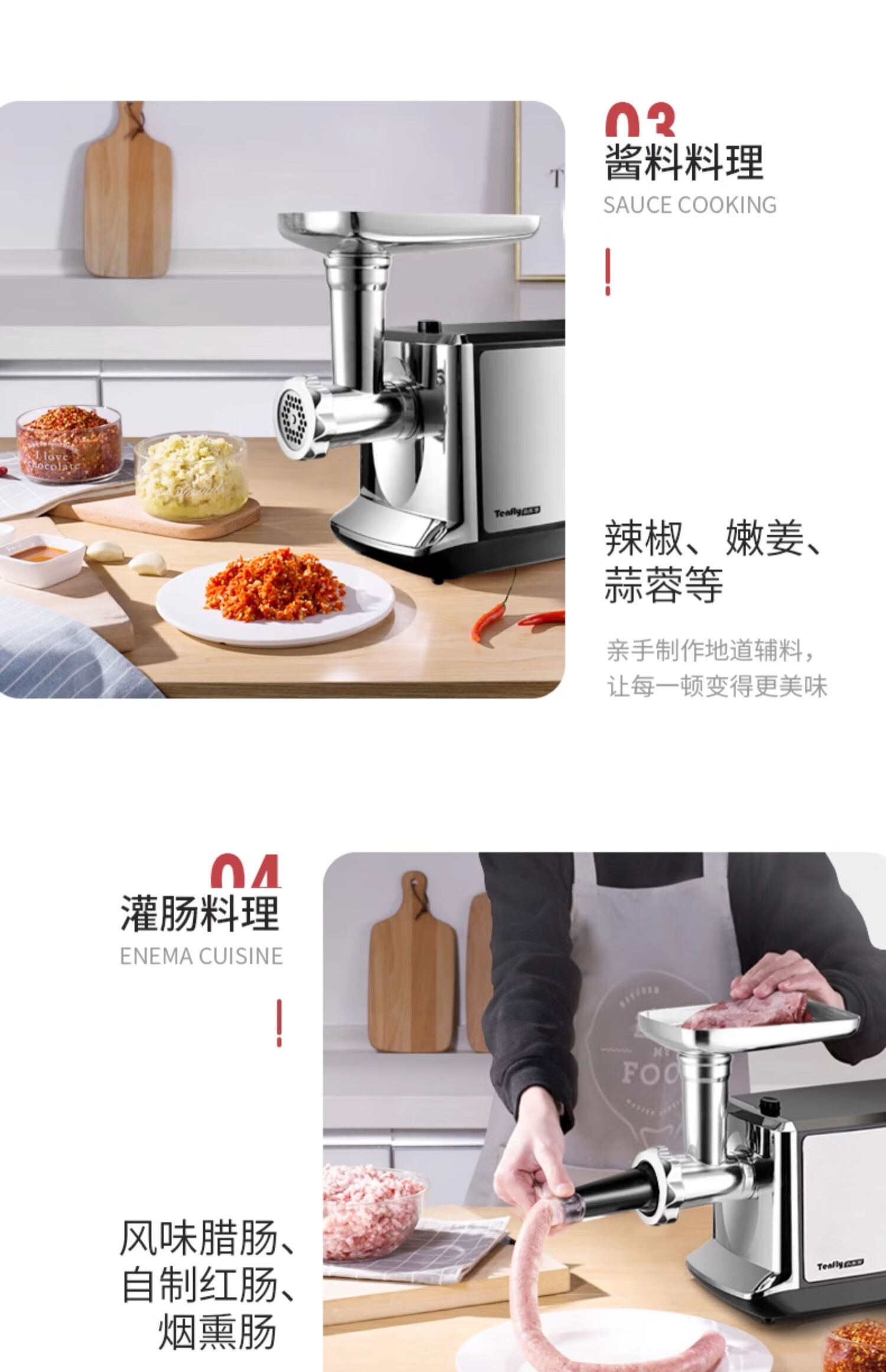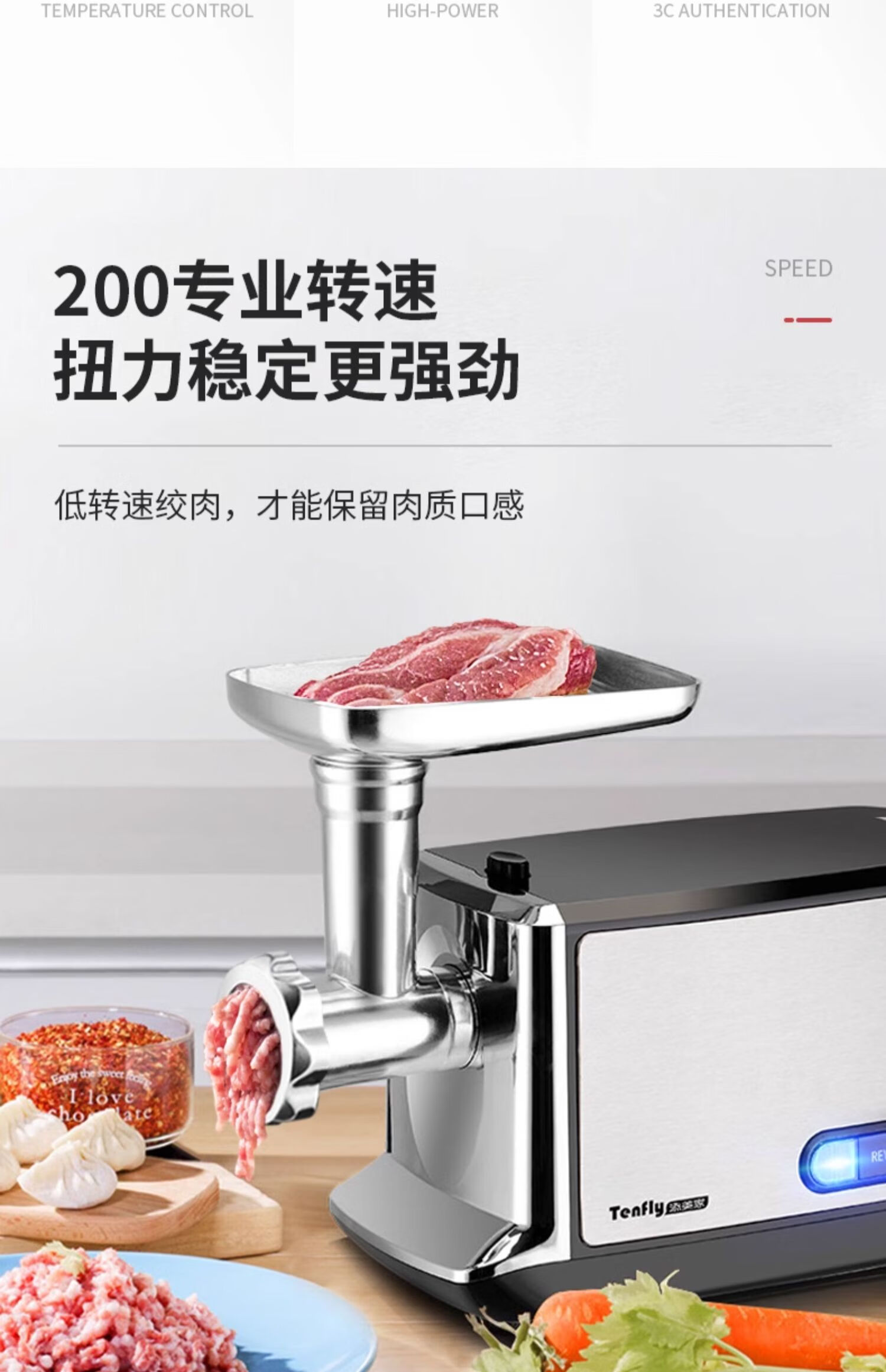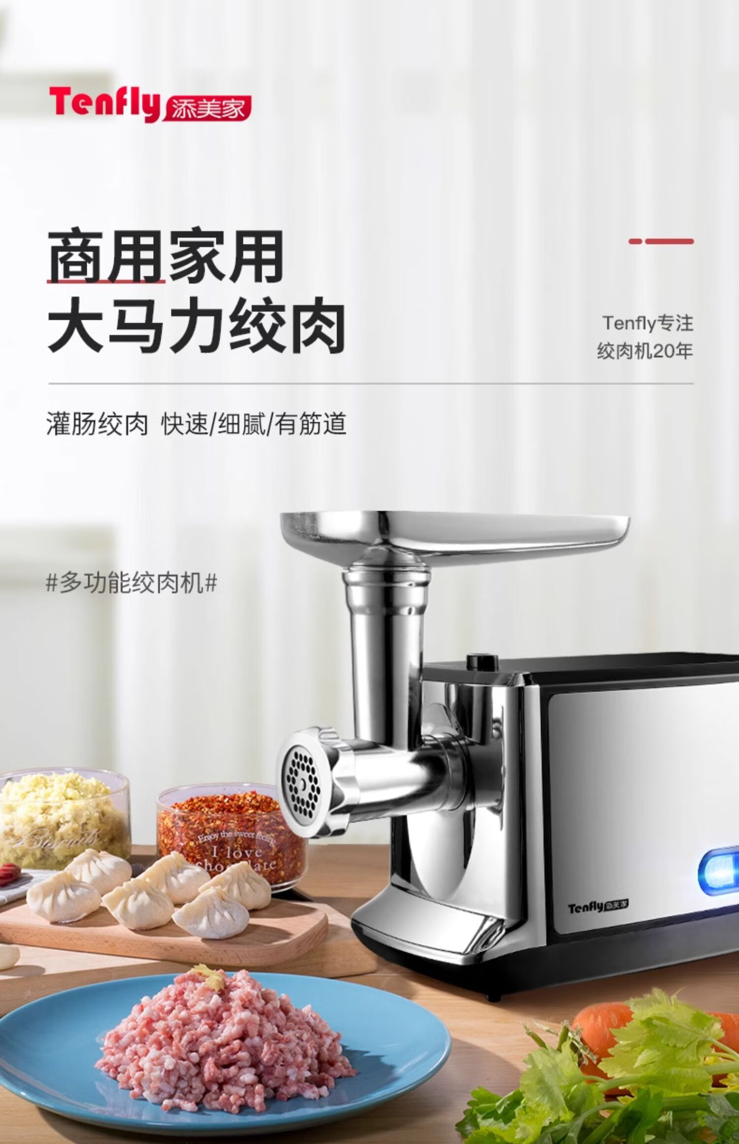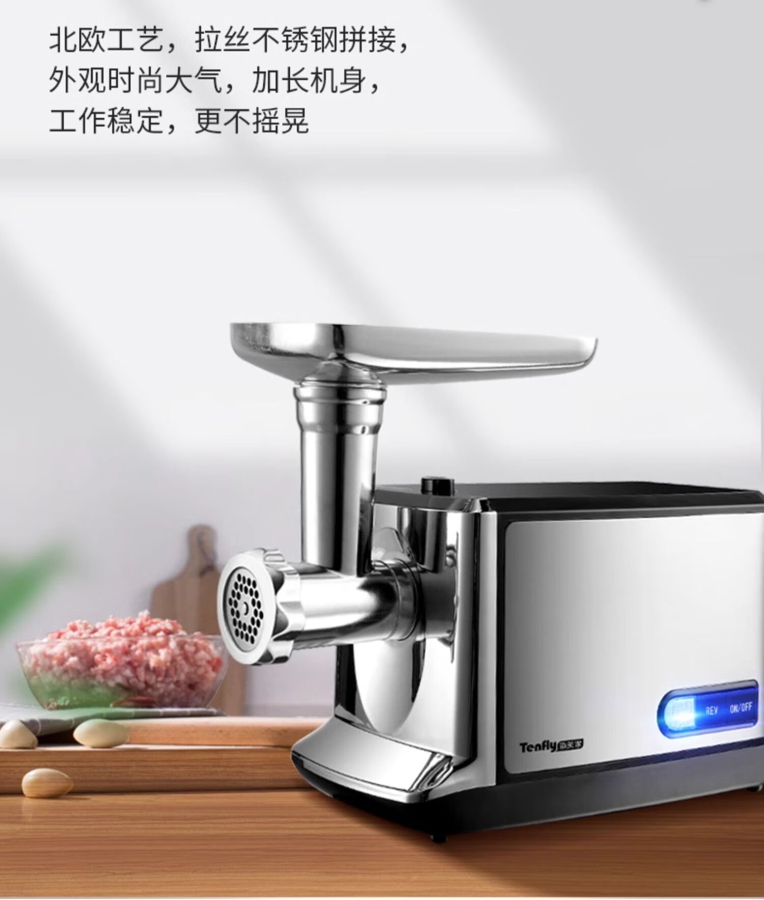 Tenfly绞肉机家用电动灌肠机搅肉机多功能碎肉饺馅机小型商用辣椒蒜蓉机大功率绞肉机 拉丝银 350W 标配双刀片 3L