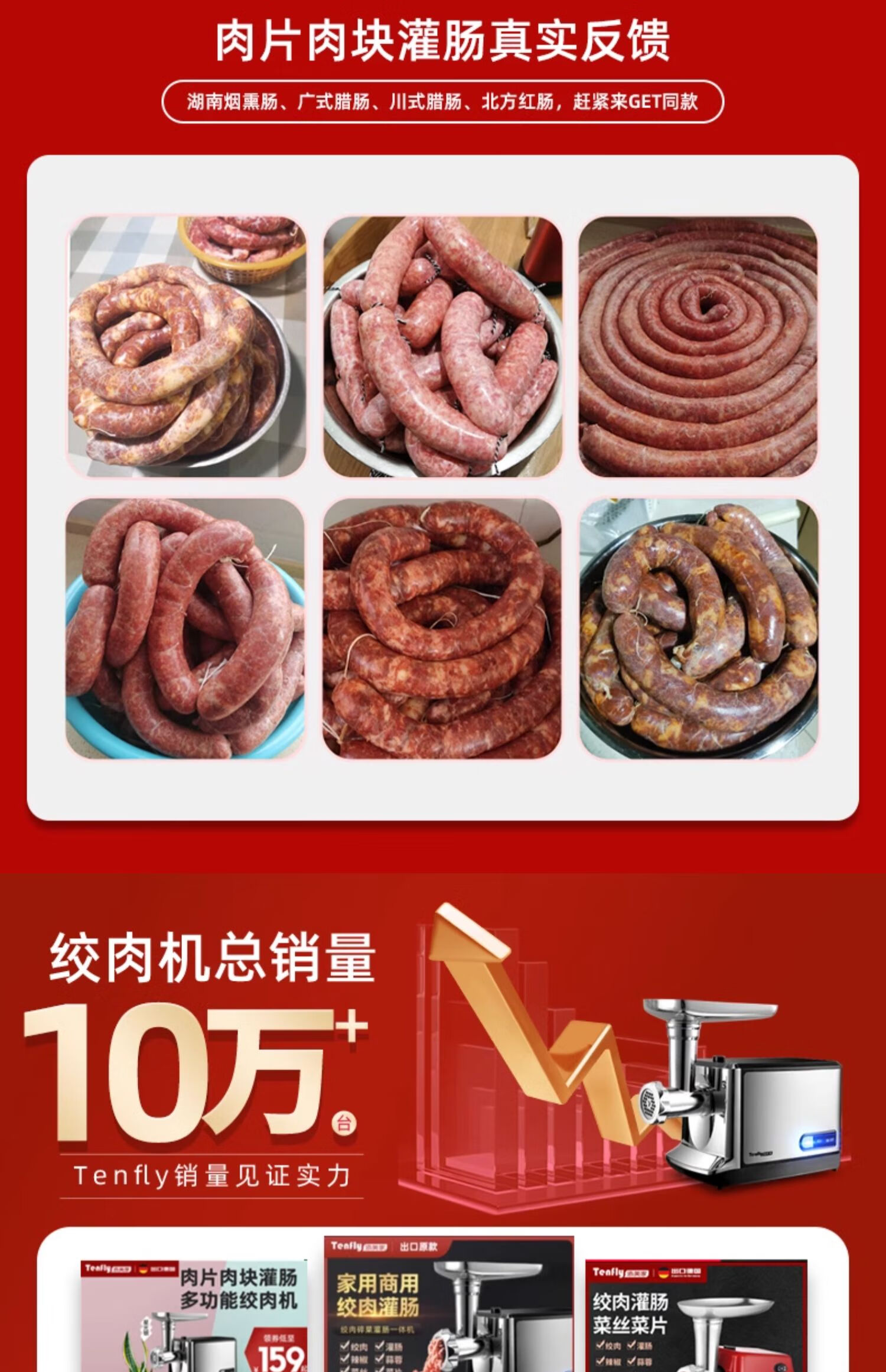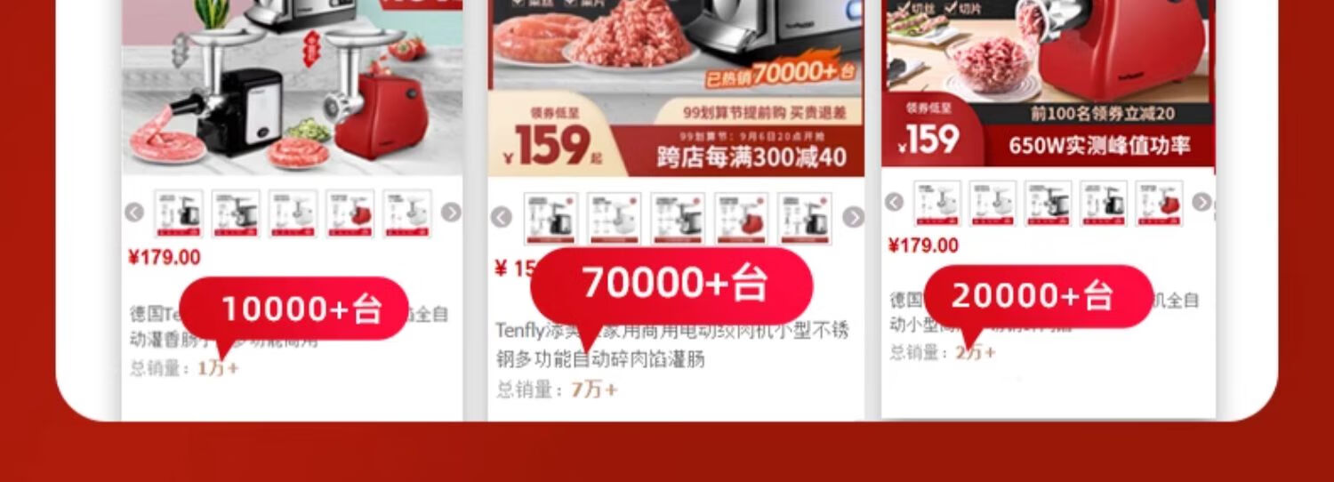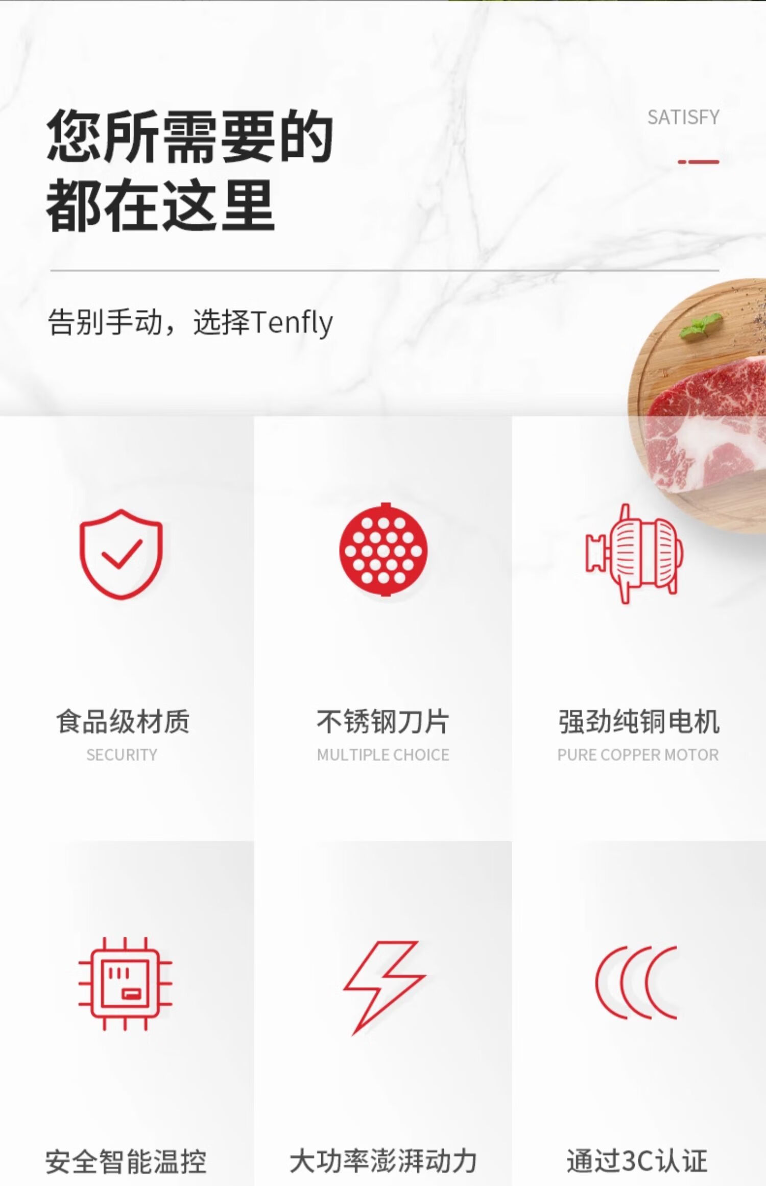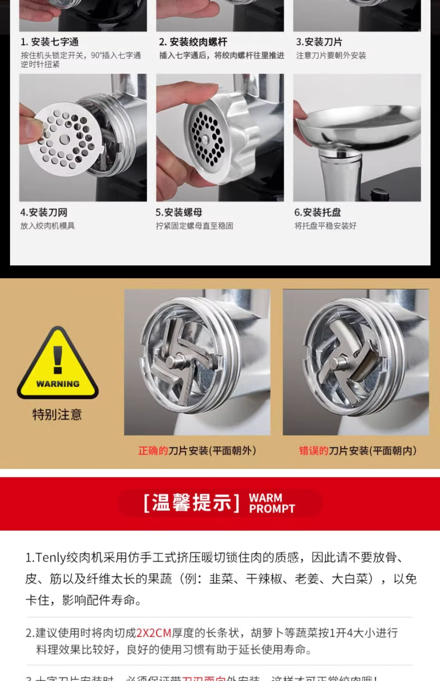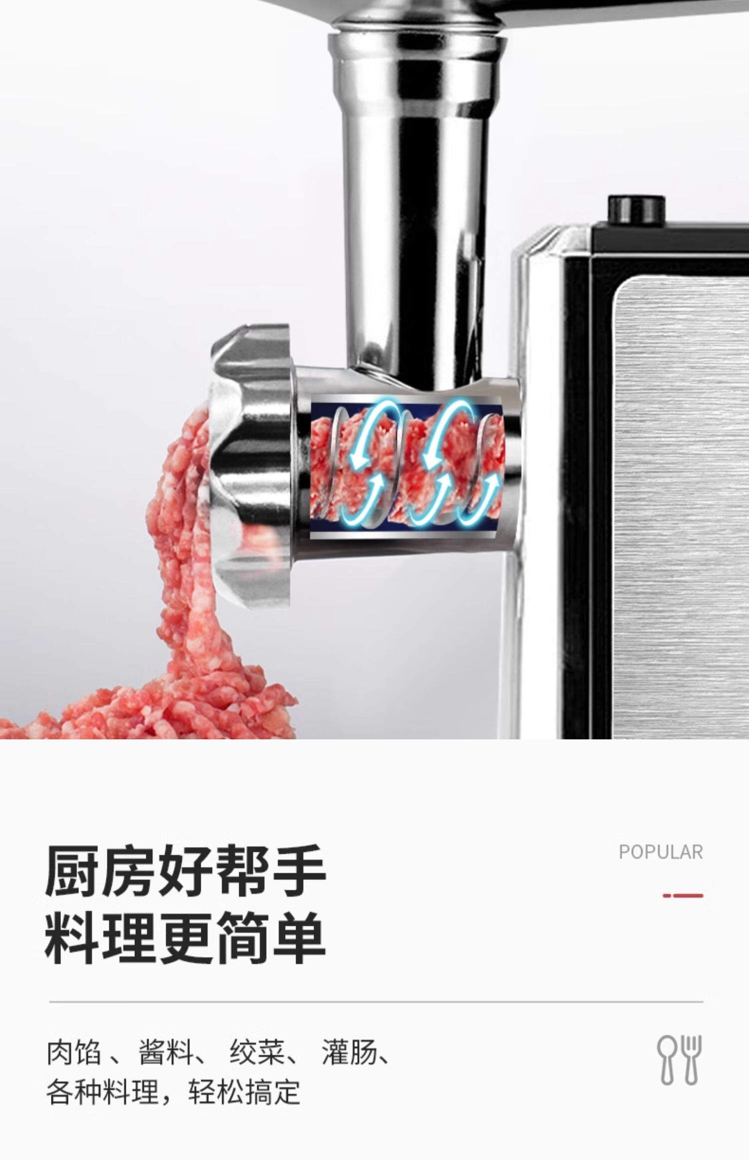 Tenfly绞肉机家用电动灌肠机搅肉机多功能碎肉饺馅机小型商用辣椒蒜蓉机大功率绞肉机 拉丝银 350W 标配双刀片 3L