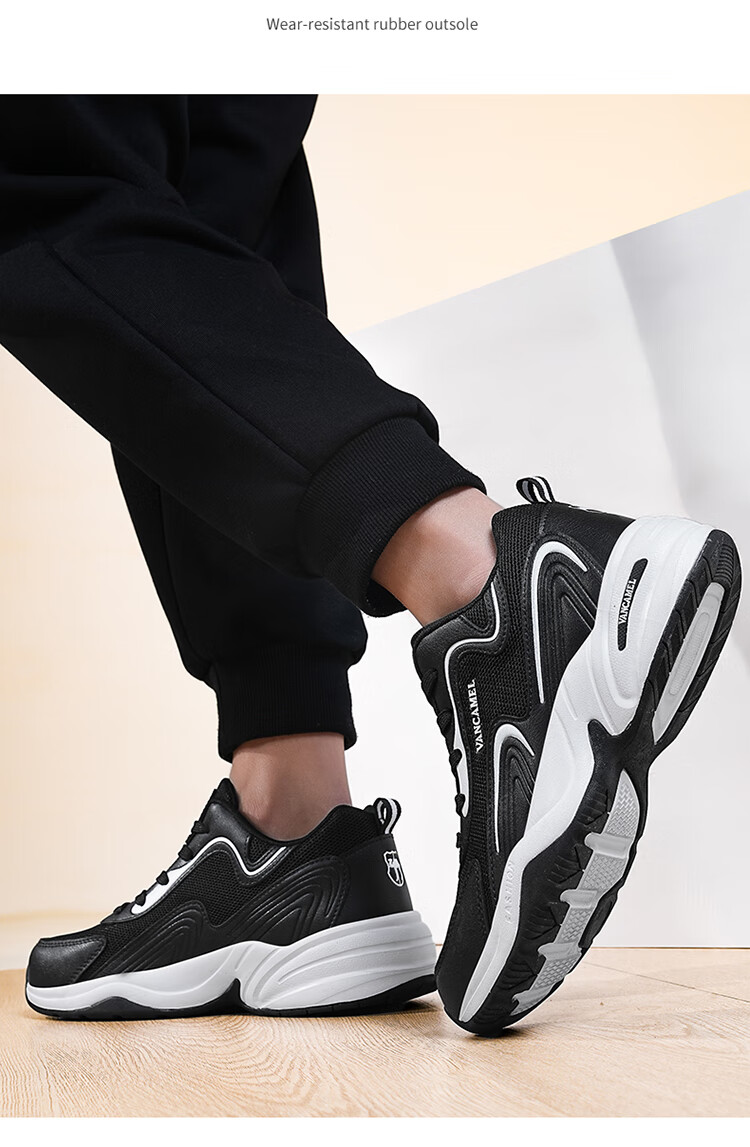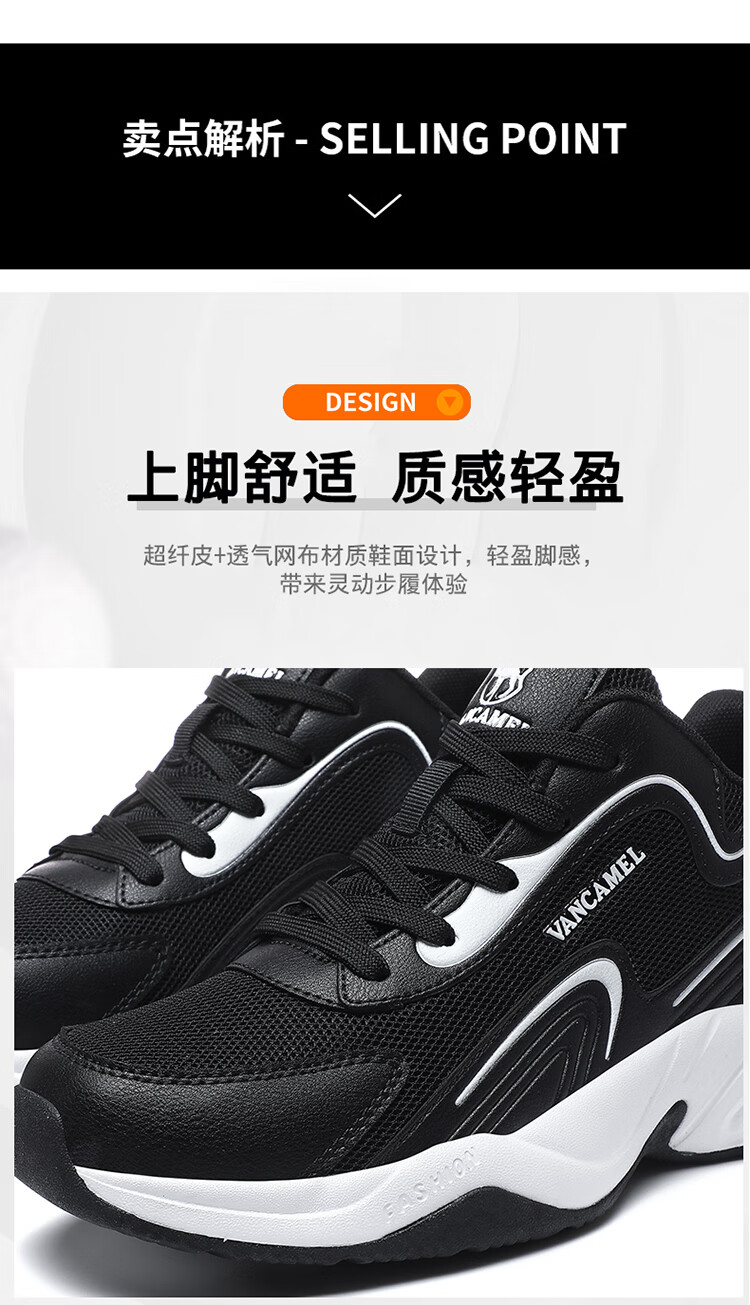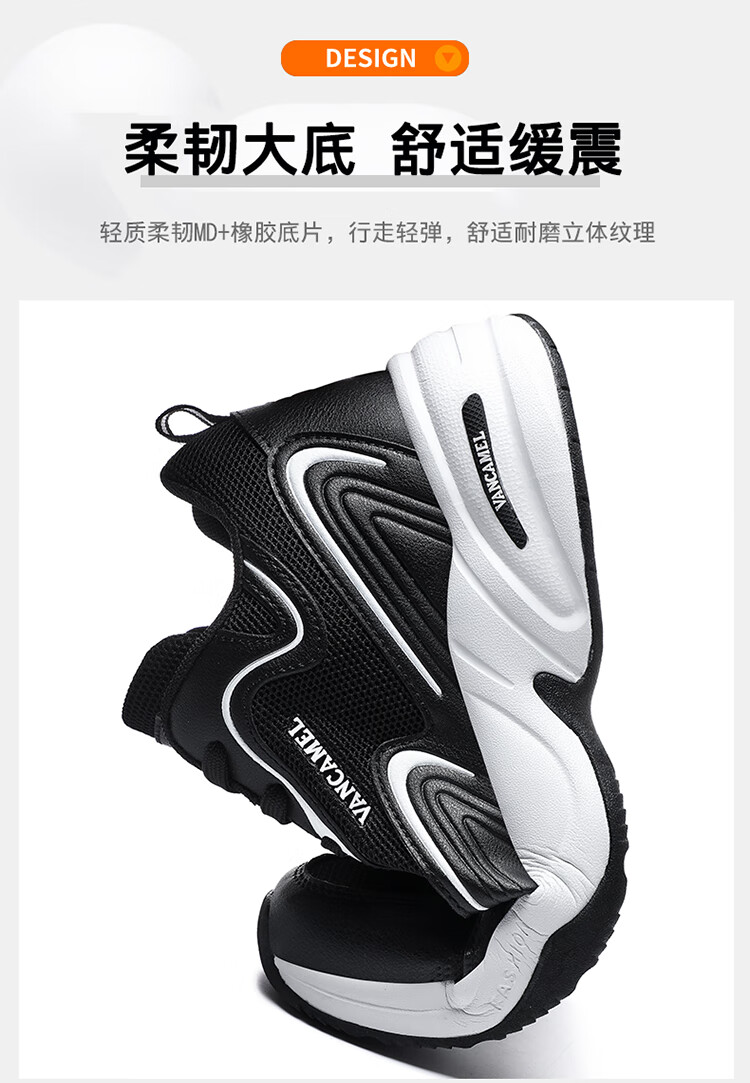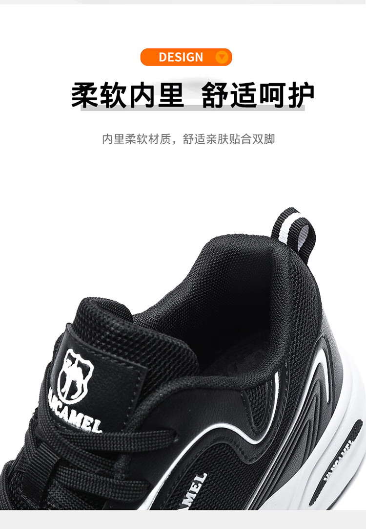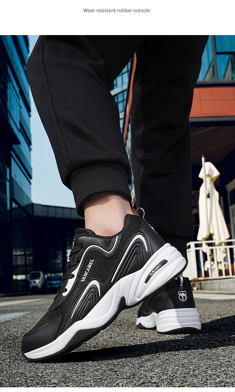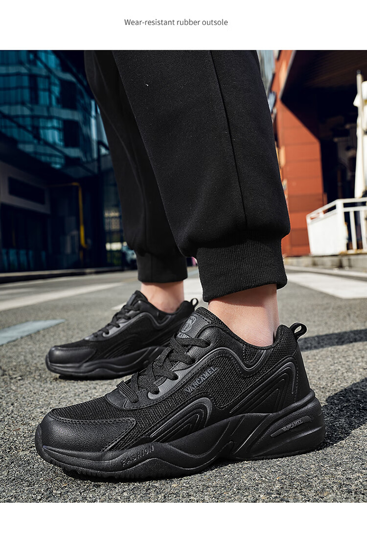 西域骆驼(VANCAMEL)男鞋秋季皮面透气大码运动鞋休闲减震跑步鞋防臭旅游鞋男加绒保暖 【官方正品 质量保证】黑色网面款 47