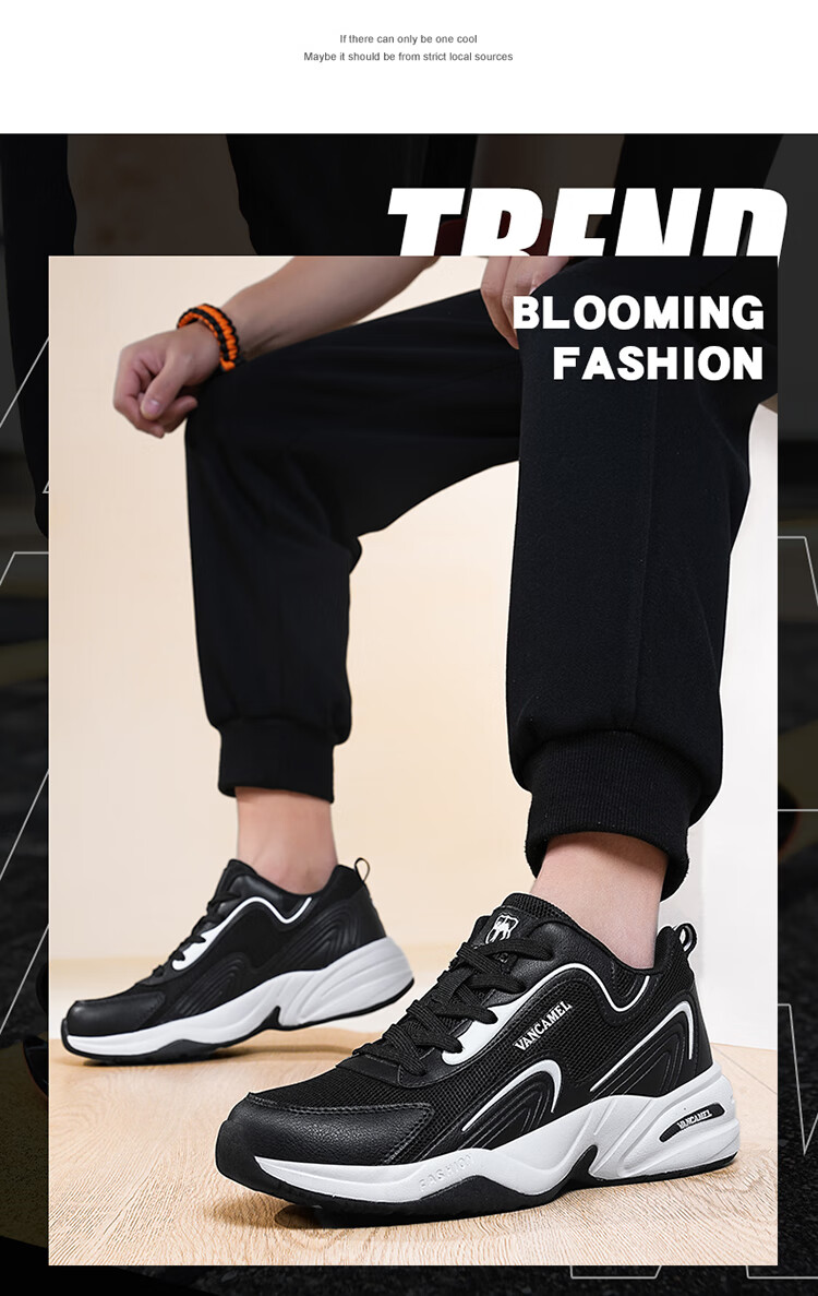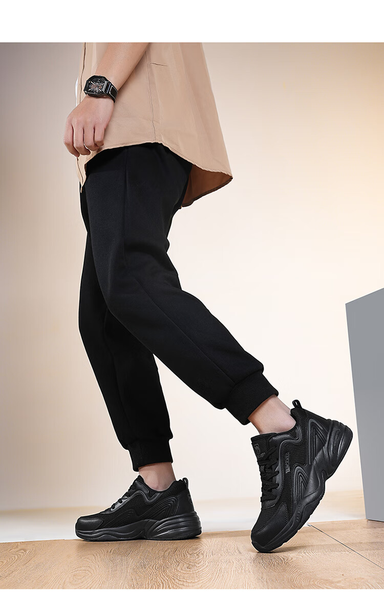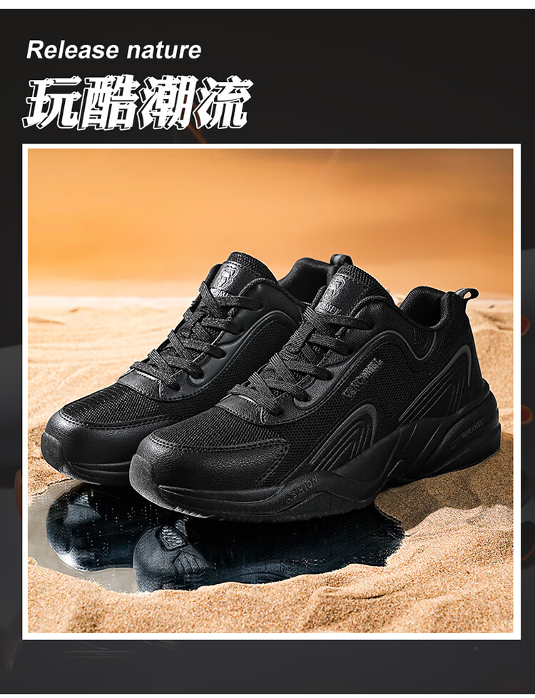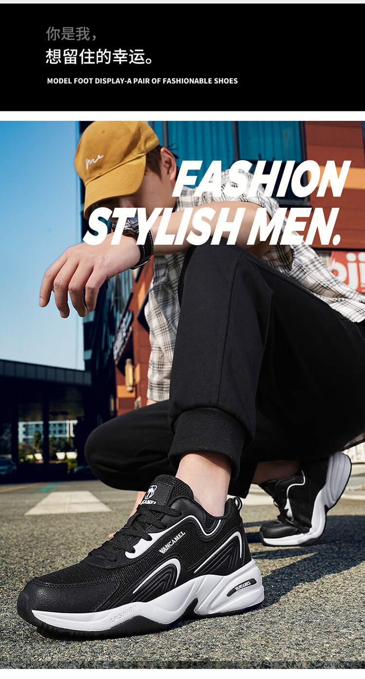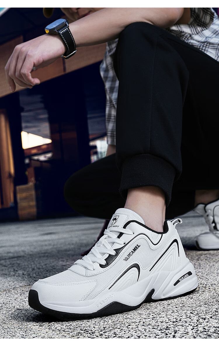 西域骆驼(VANCAMEL)男鞋秋季皮面透气大码运动鞋休闲减震跑步鞋防臭旅游鞋男加绒保暖 【官方正品 质量保证】黑色网面款 47