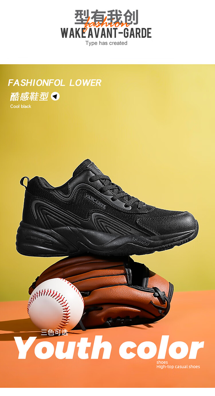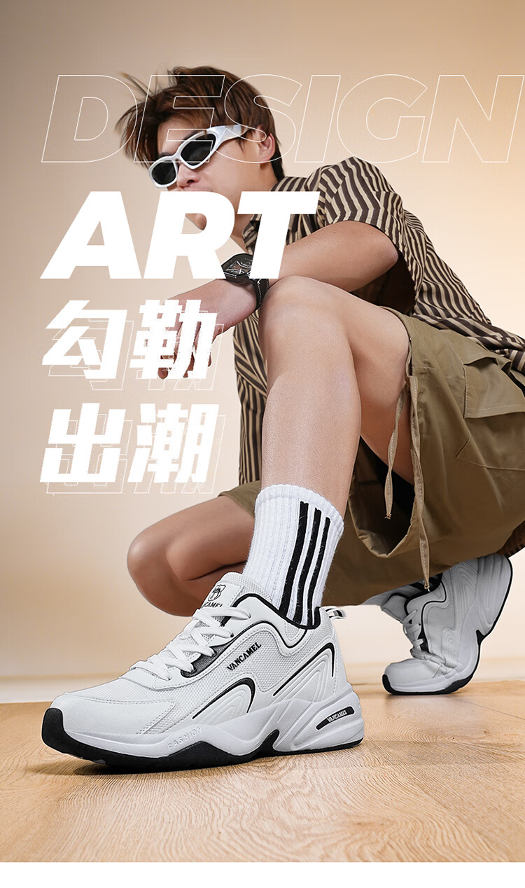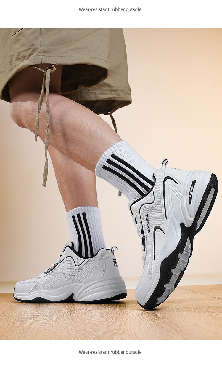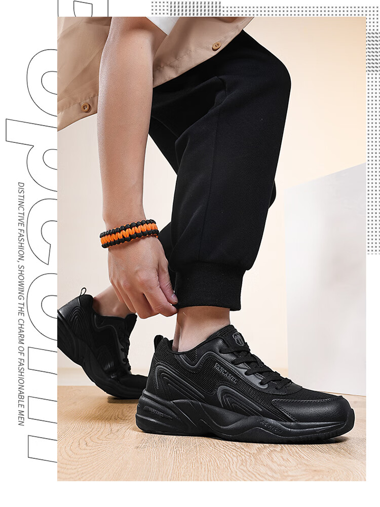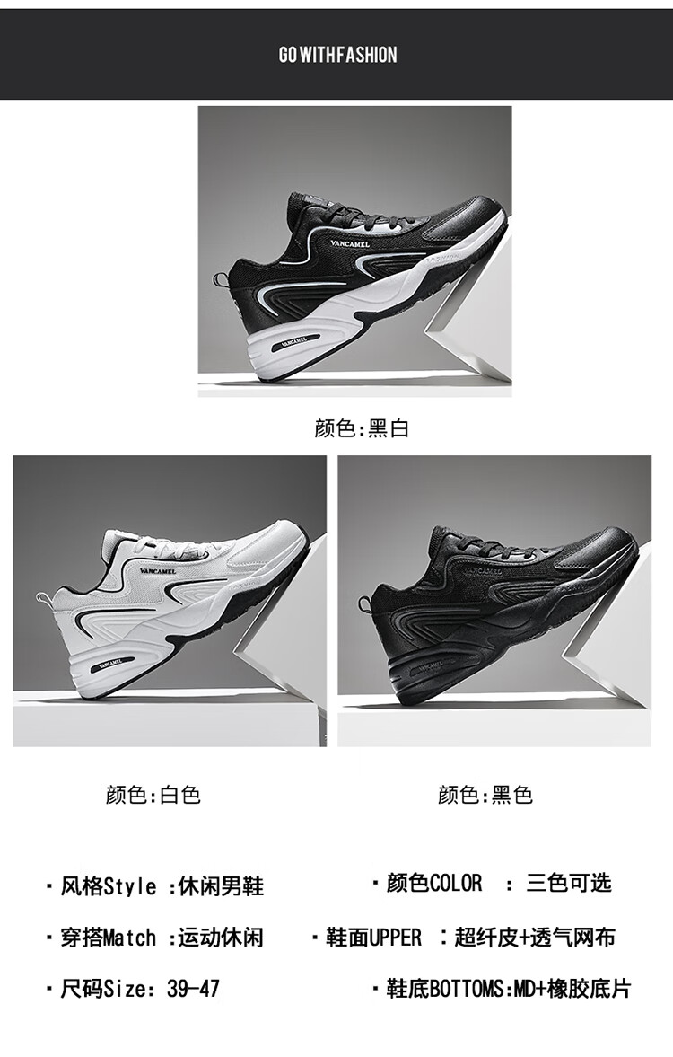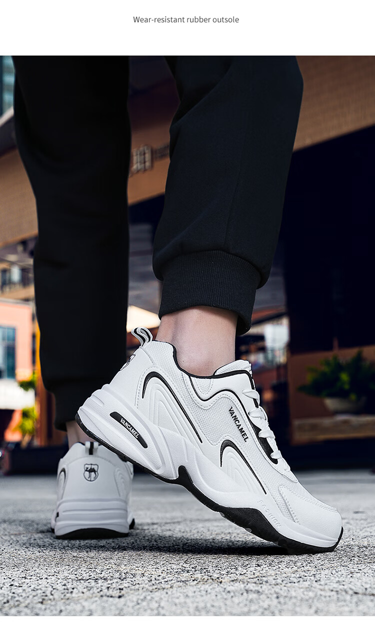 西域骆驼(VANCAMEL)男鞋秋季皮面透气大码运动鞋休闲减震跑步鞋防臭旅游鞋男加绒保暖 【官方正品 质量保证】黑色网面款 47