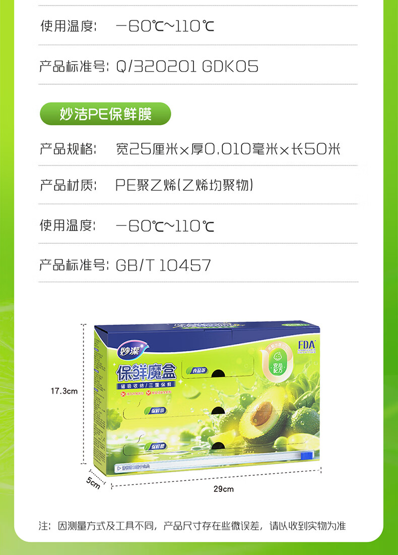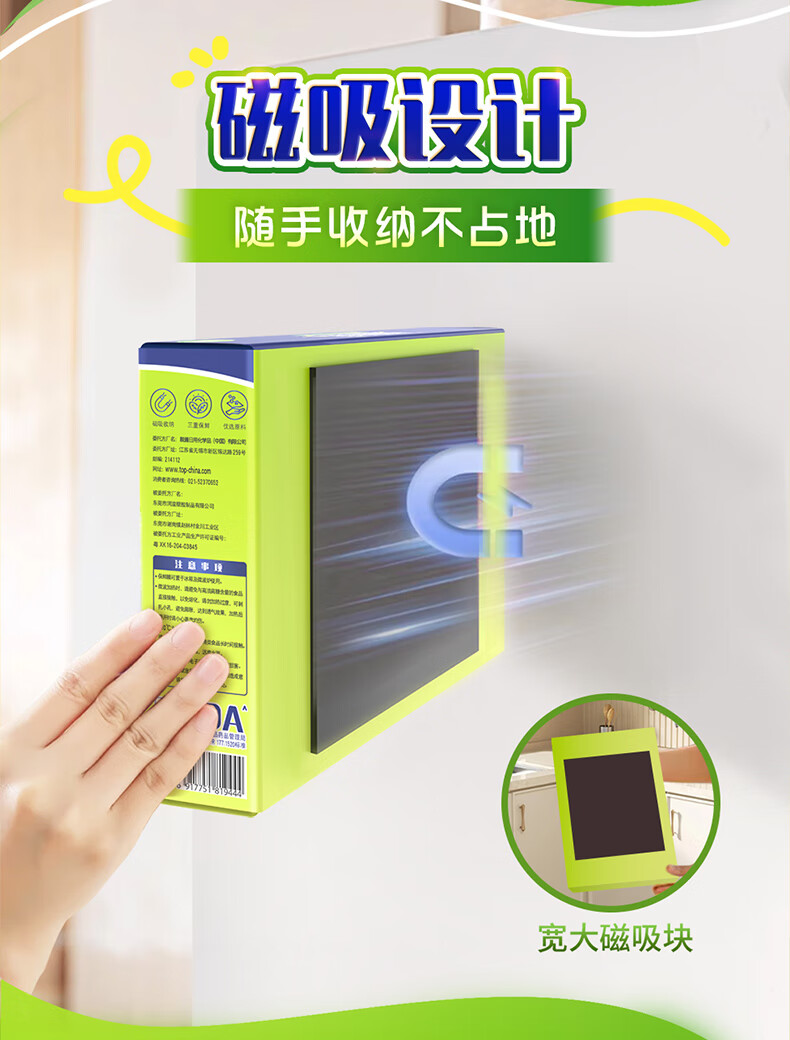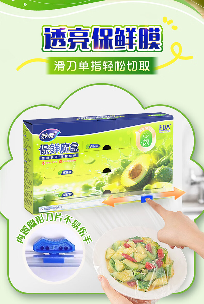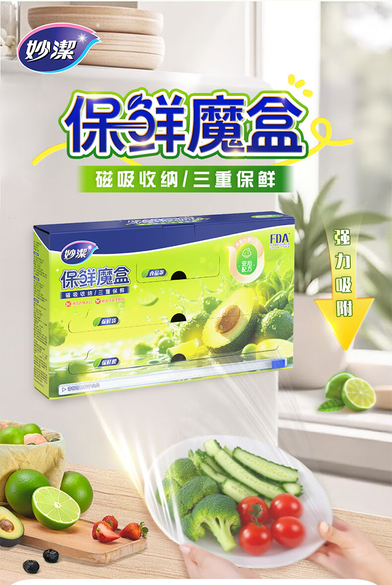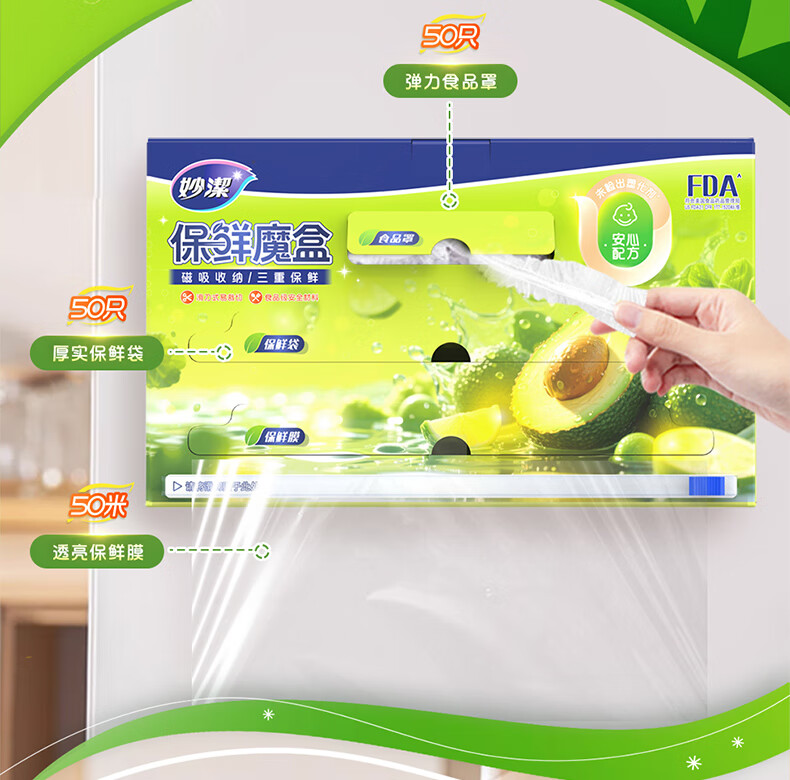 妙洁磁吸保鲜魔盒 滑刀保鲜膜保鲜袋食品罩三合一冰箱磁吸收纳盒 保鲜膜50米+保鲜袋50只+食品罩50只