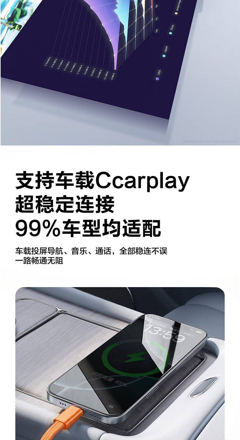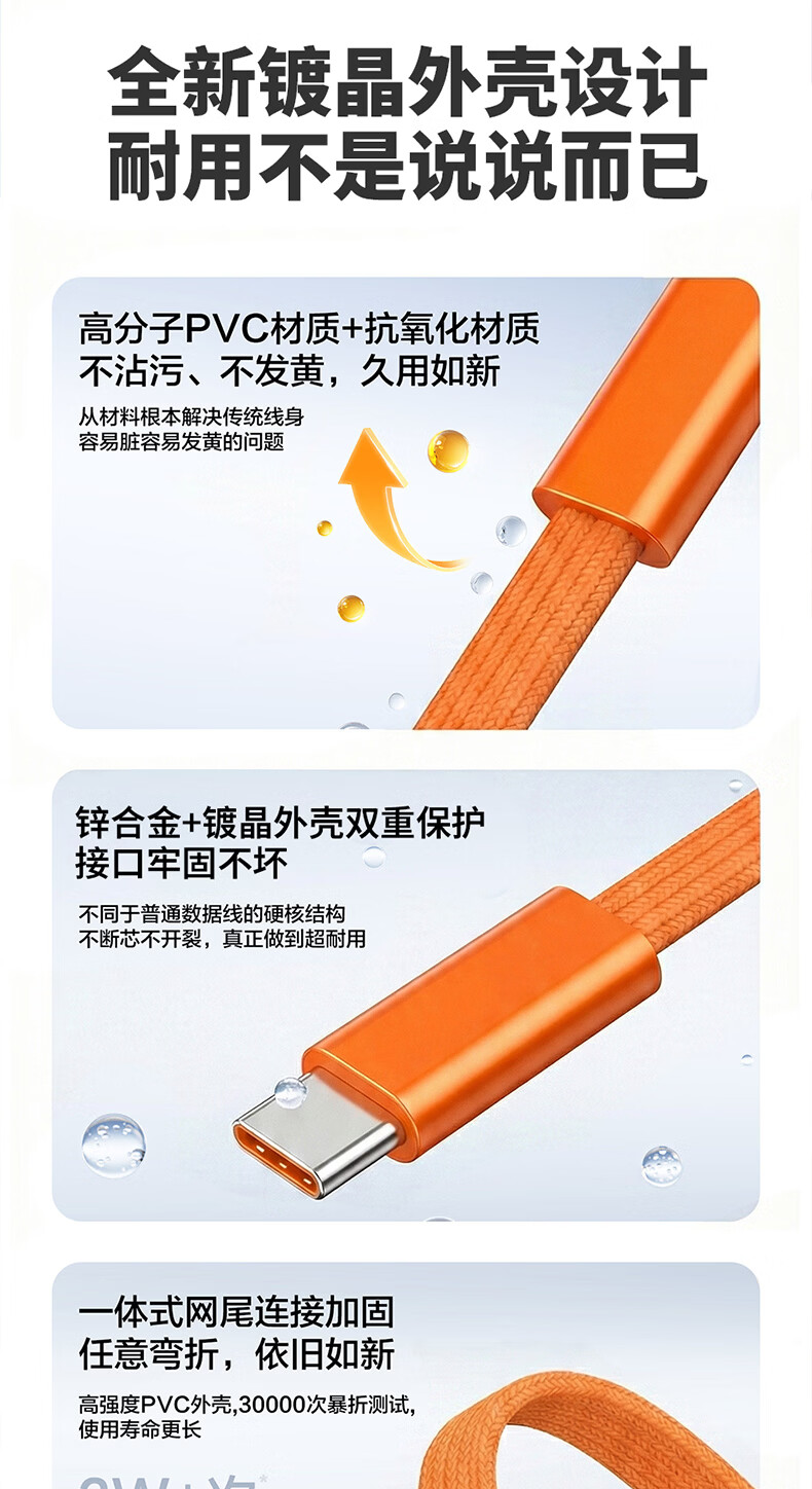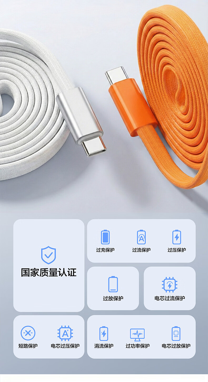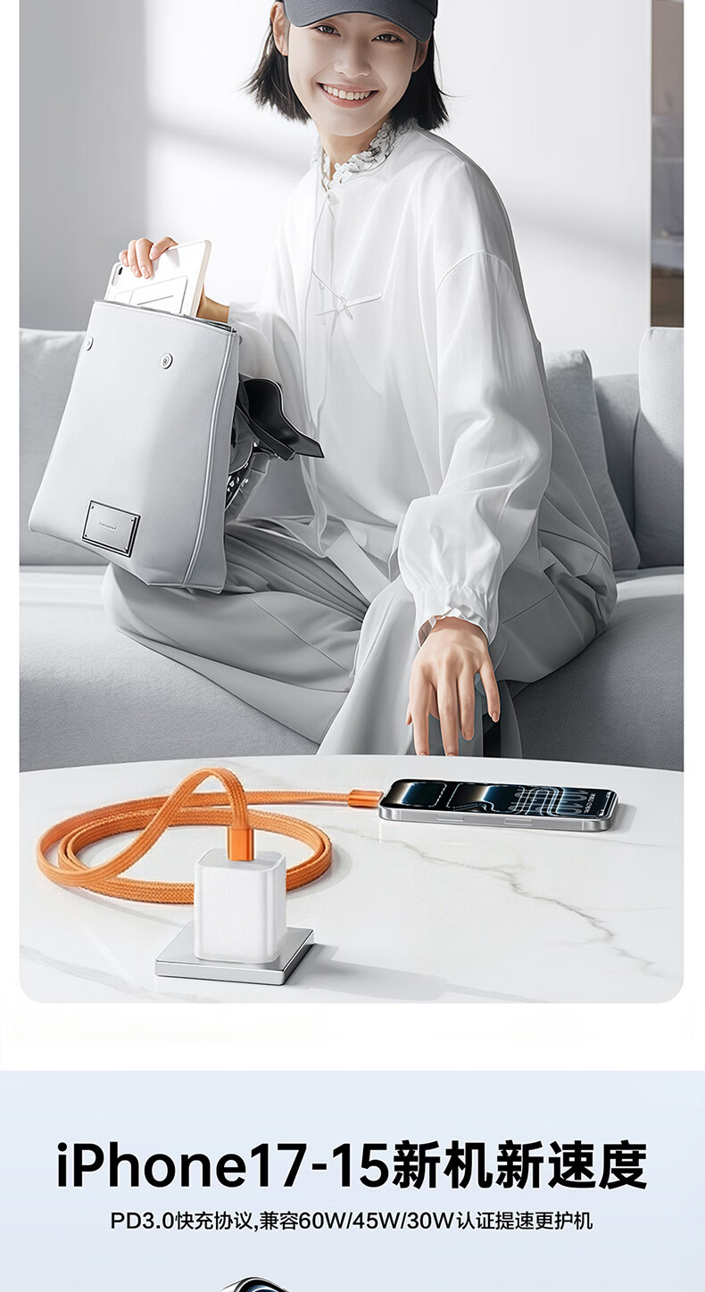 港吉尼(KONGJINI)港吉尼超级快充数据线双Type-C编织PD快充线60W升级车载可用低温闪充赠送手机支架 云雾白双type-c超级快充数据线两条装再送一条