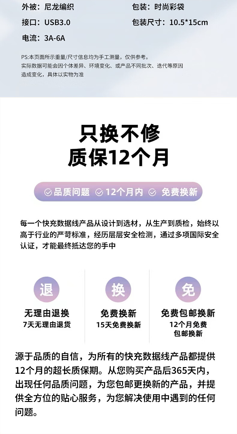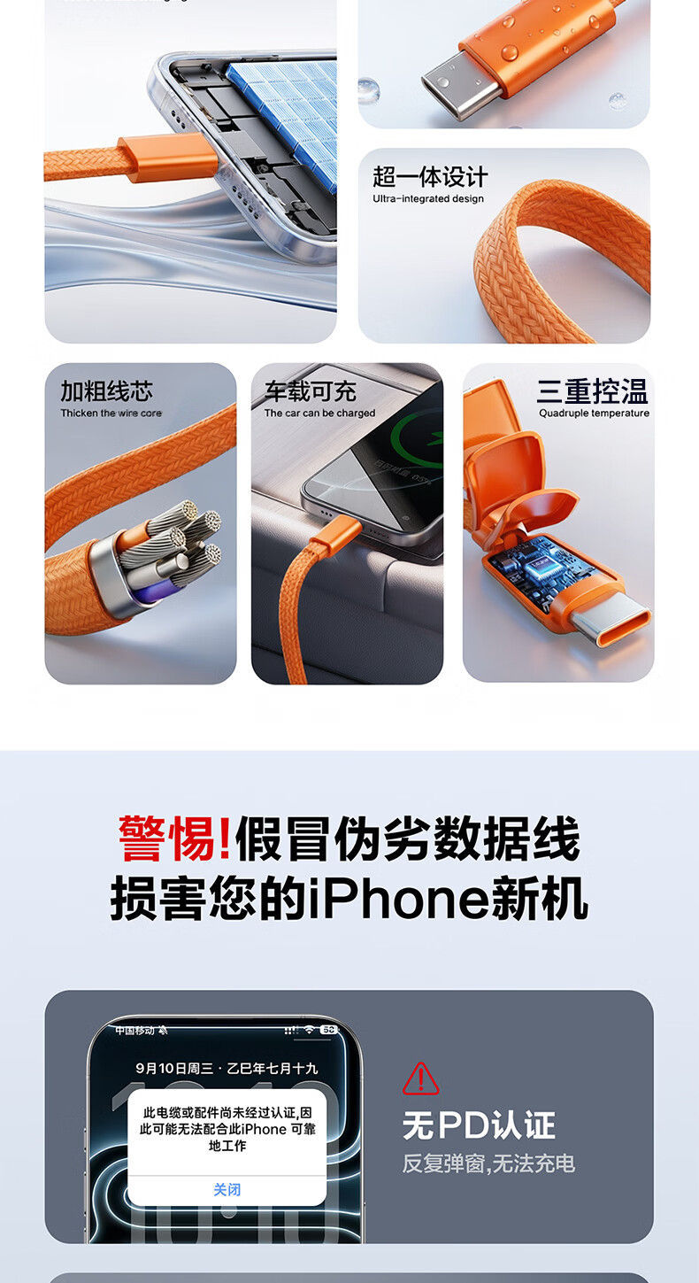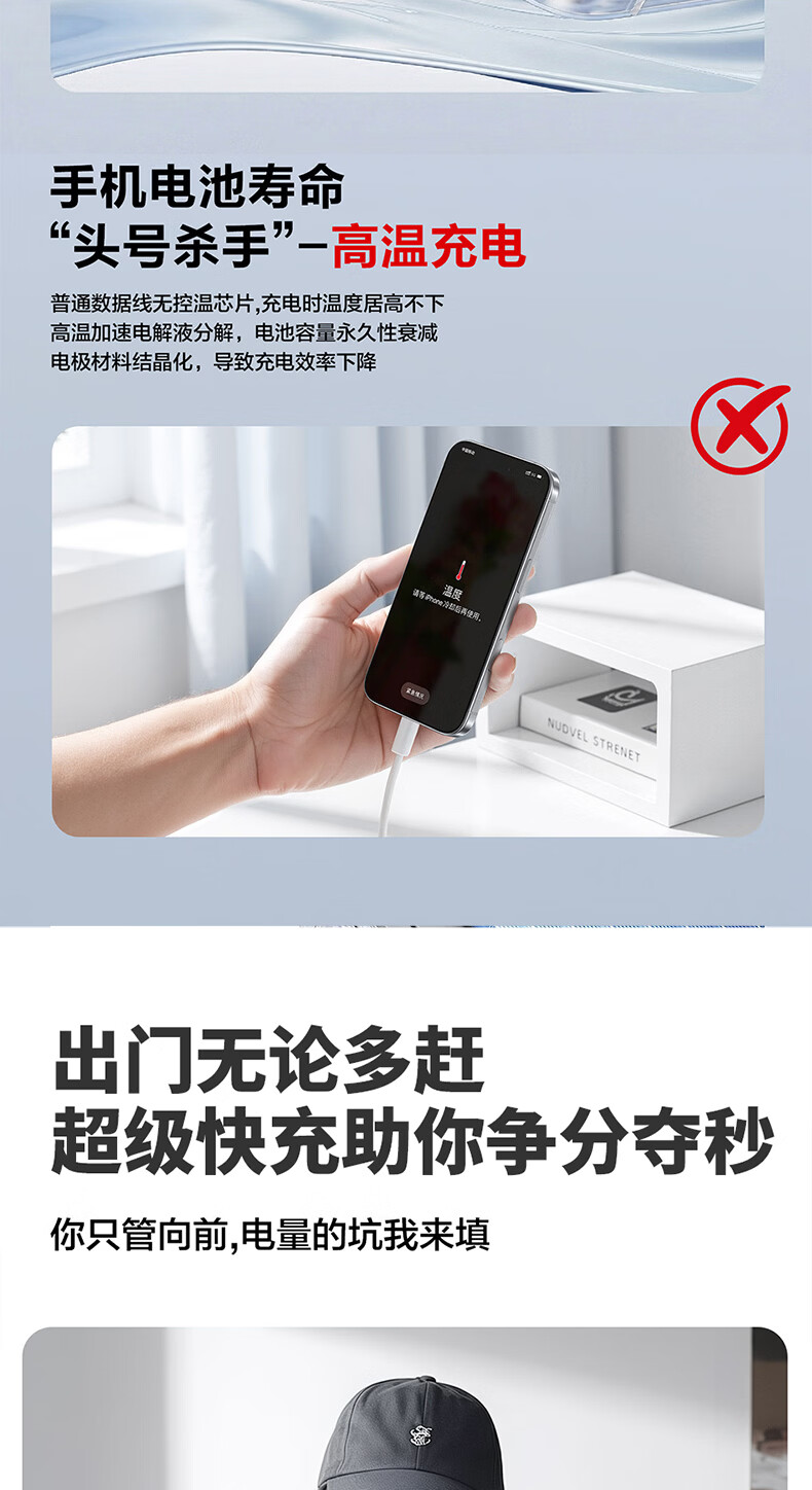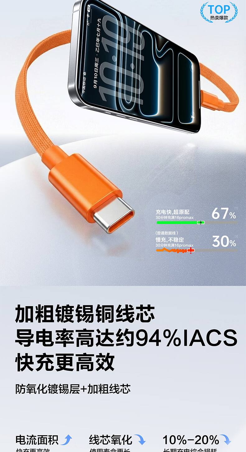 港吉尼(KONGJINI)港吉尼超级快充数据线双Type-C编织PD快充线60W升级车载可用低温闪充赠送手机支架 云雾白双type-c超级快充数据线两条装再送一条