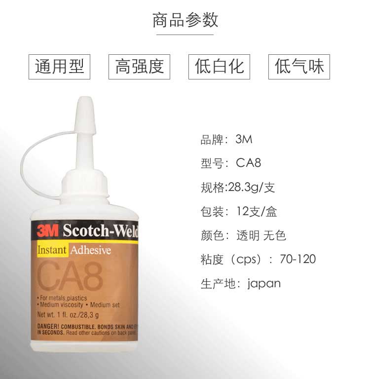 3M胶水CA8多功能胶车用金属塑料强力胶粘鞋胶防水补鞋胶水 28.3g/支 单支