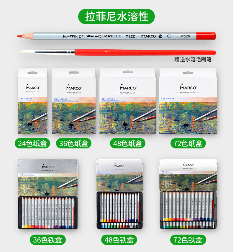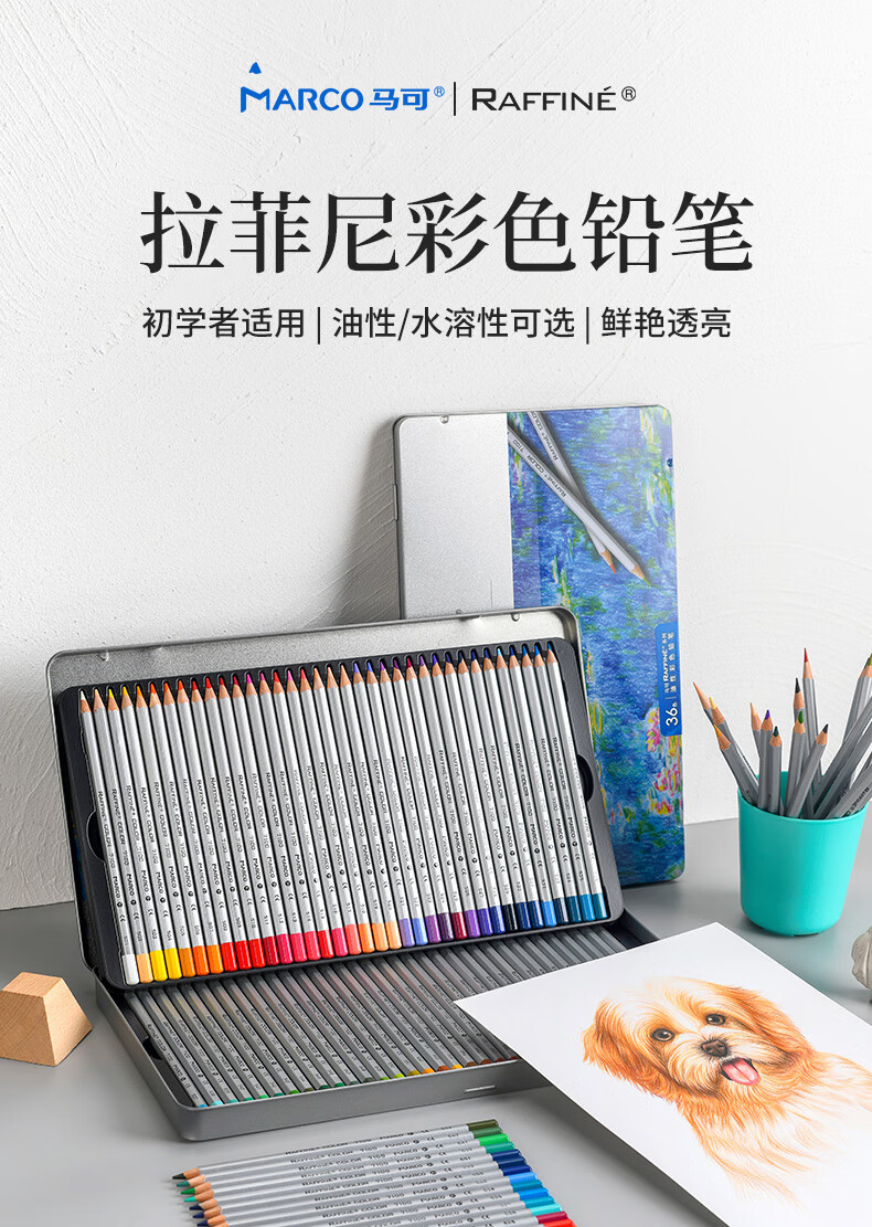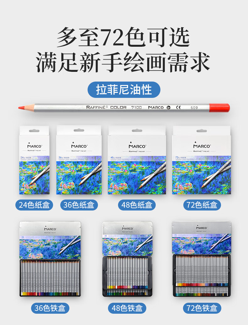 马可(MARCO)拉菲尼Raffine系列彩铅绘画美术专业设计学生手绘铁盒装彩色铅笔 48色油性塑盒装