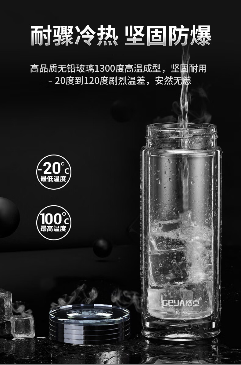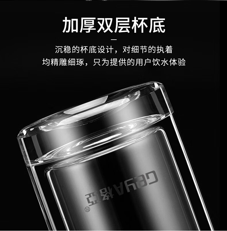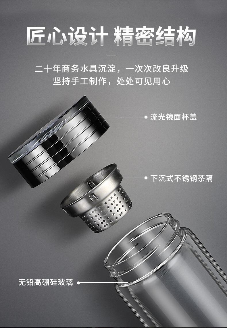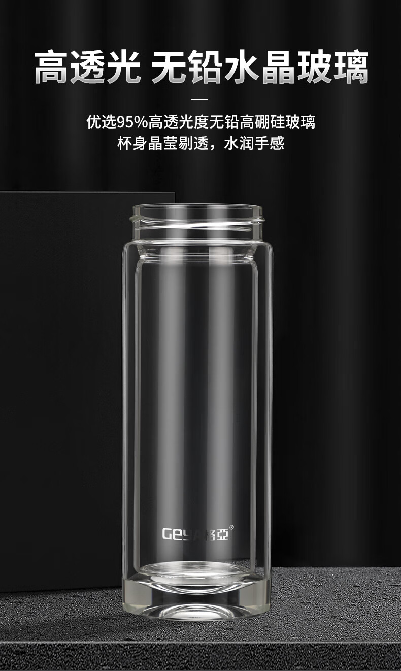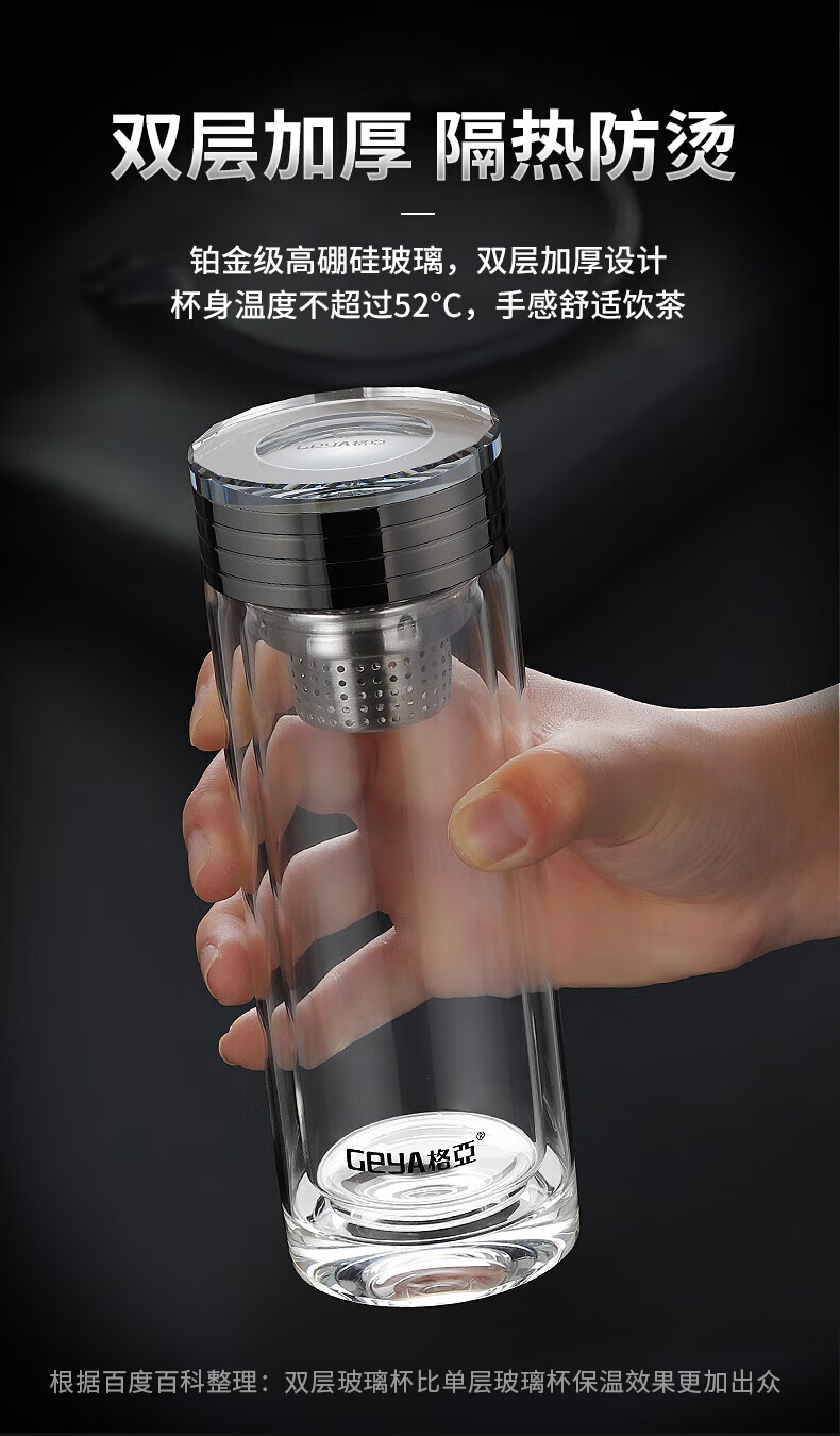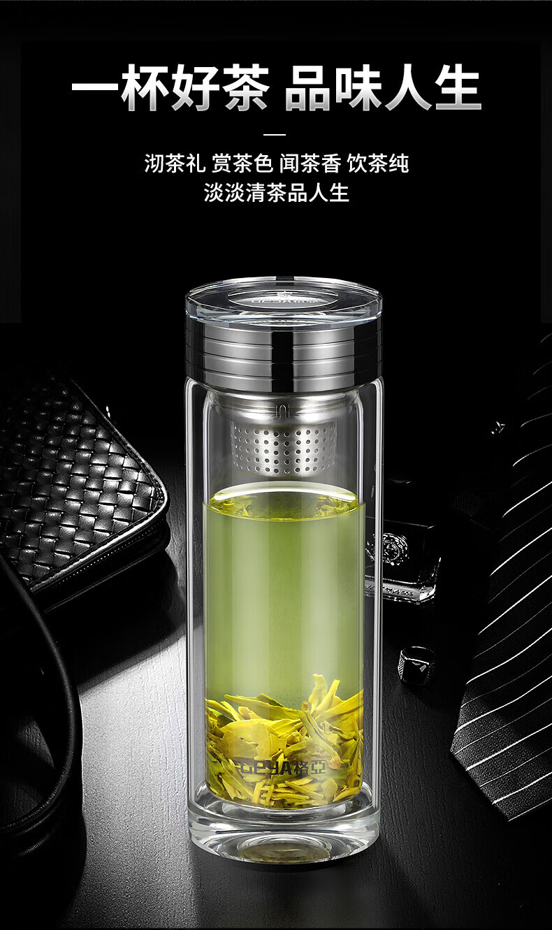 格亚高档双层玻璃杯男士商务便携玻璃茶杯耐热泡茶杯子办公定制礼盒 【升级款】银离子抗菌400ml