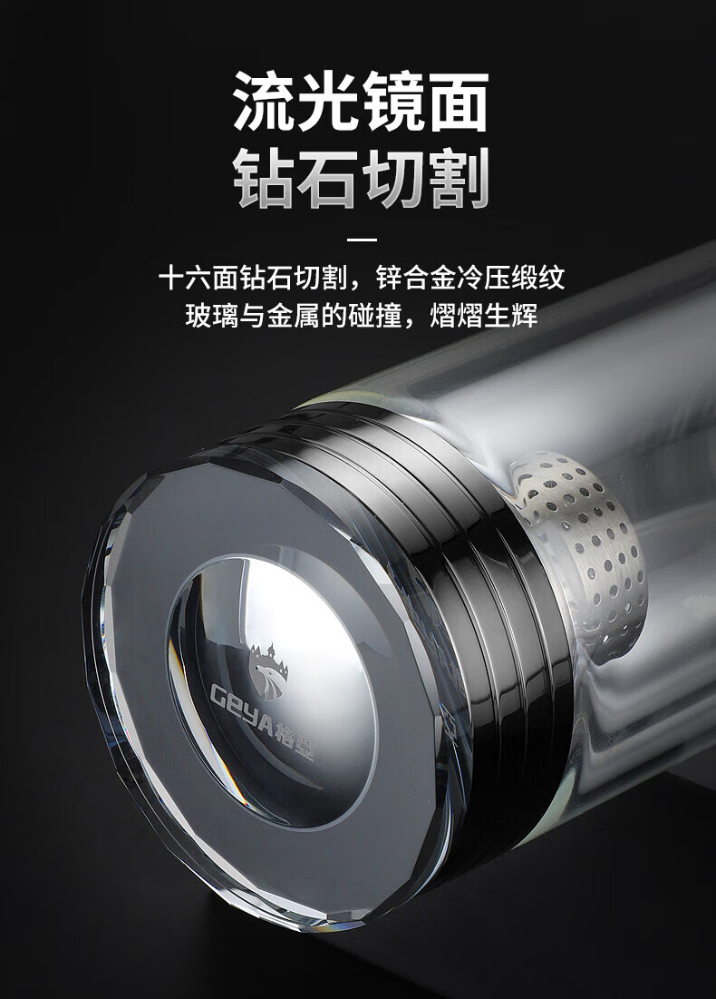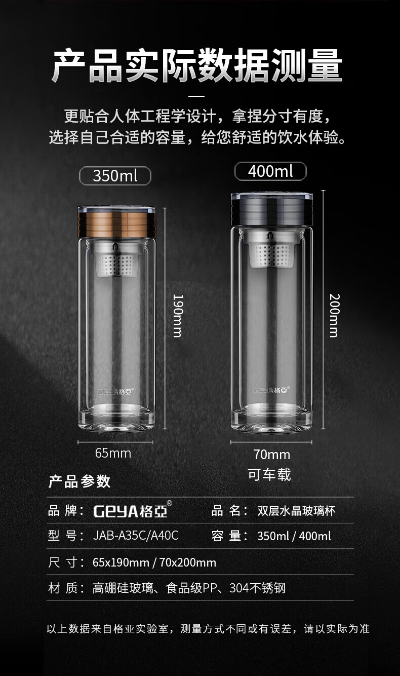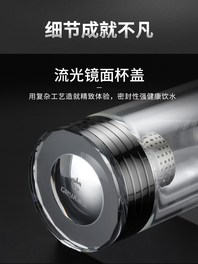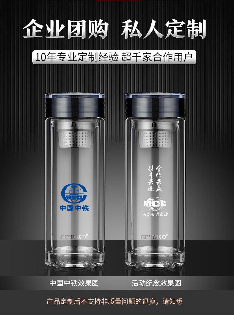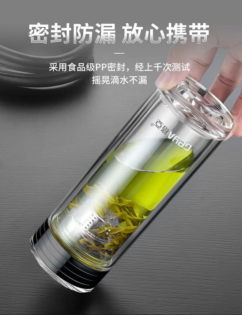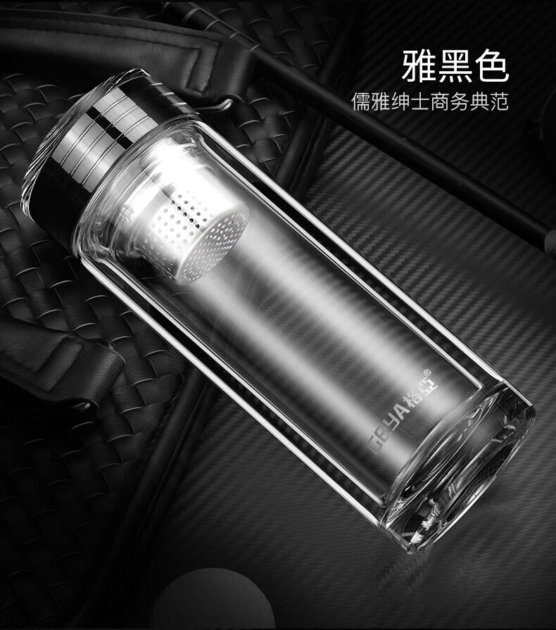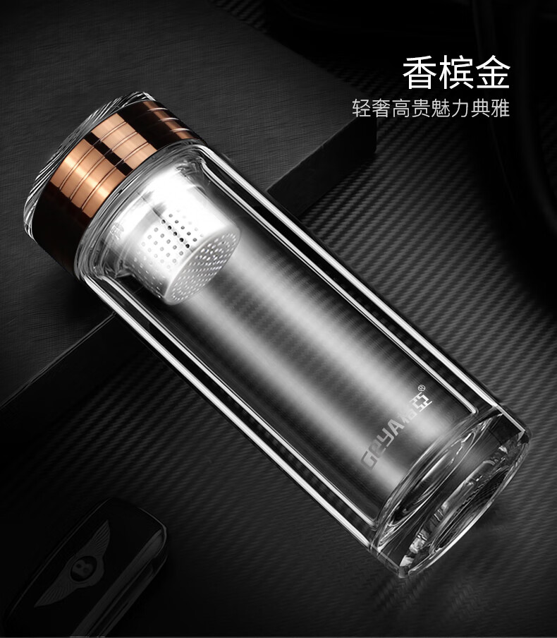 格亚高档双层玻璃杯男士商务便携玻璃茶杯耐热泡茶杯子办公定制礼盒 【升级款】银离子抗菌400ml