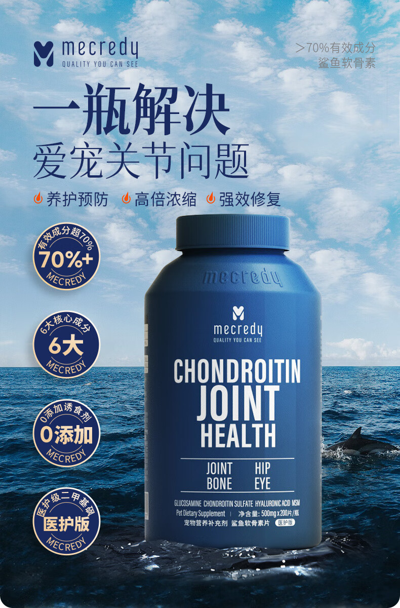 MECREDY明质鲨鱼软骨素狗狗猫咪保护关节折耳猫呵护骨头健骨修复 【200片/瓶】鲨鱼软骨素