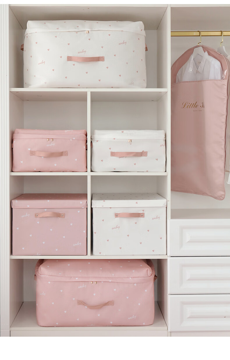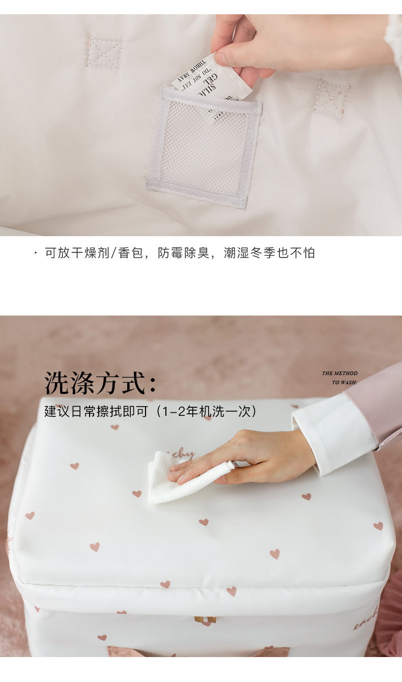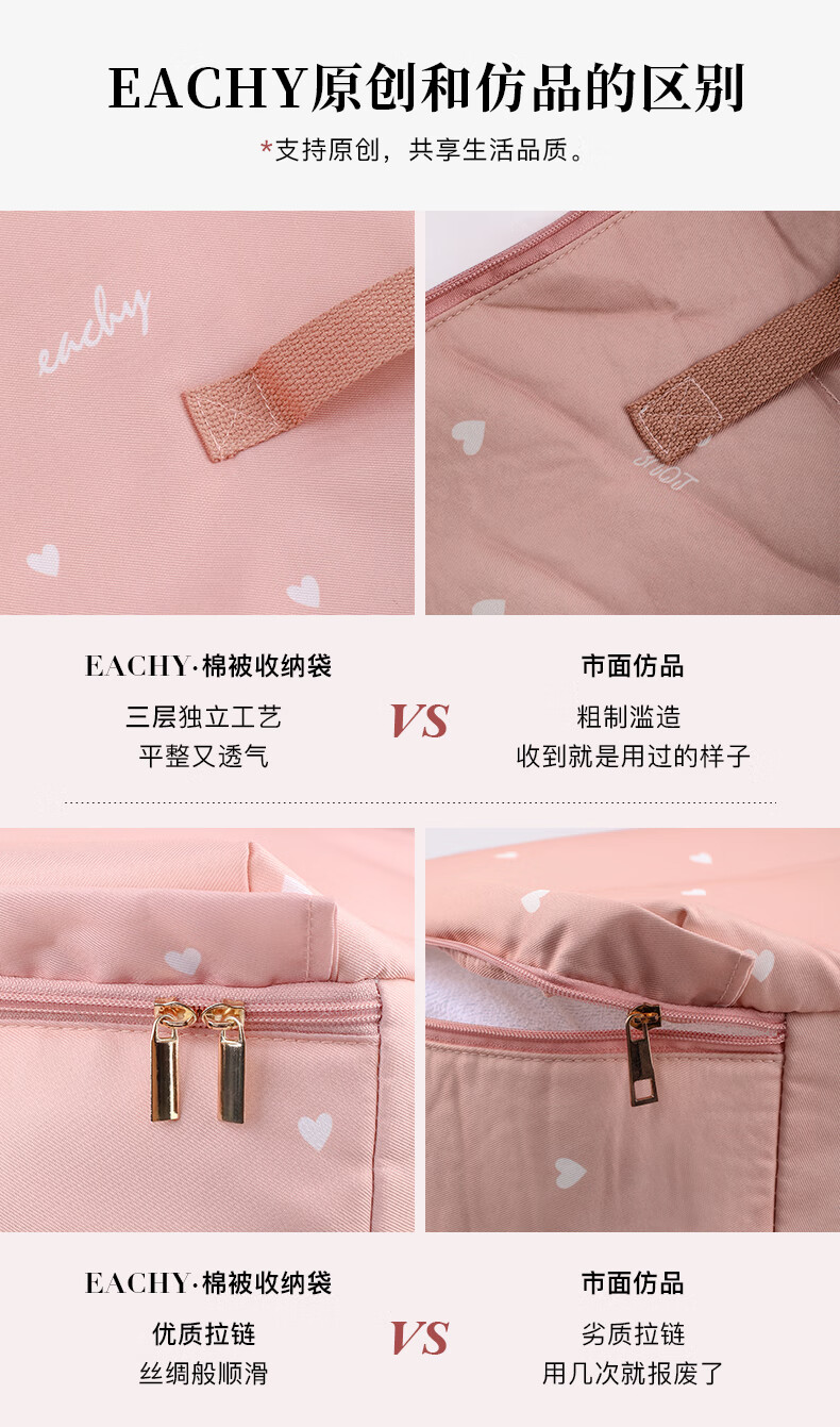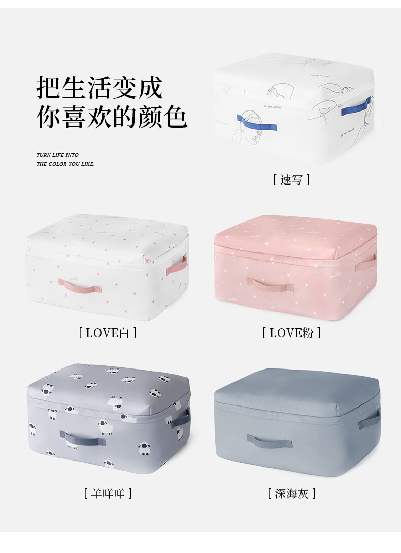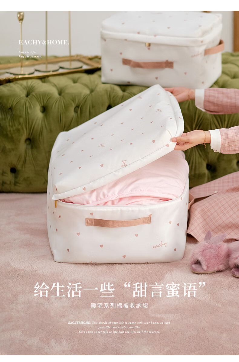 EACHY被子收纳袋衣服整理袋搬家打包大容量装棉被衣物的袋子子防尘防潮 love-粉 S:41*27*21【薄款衣物】