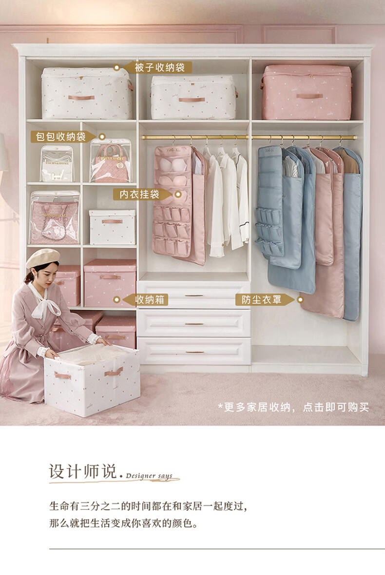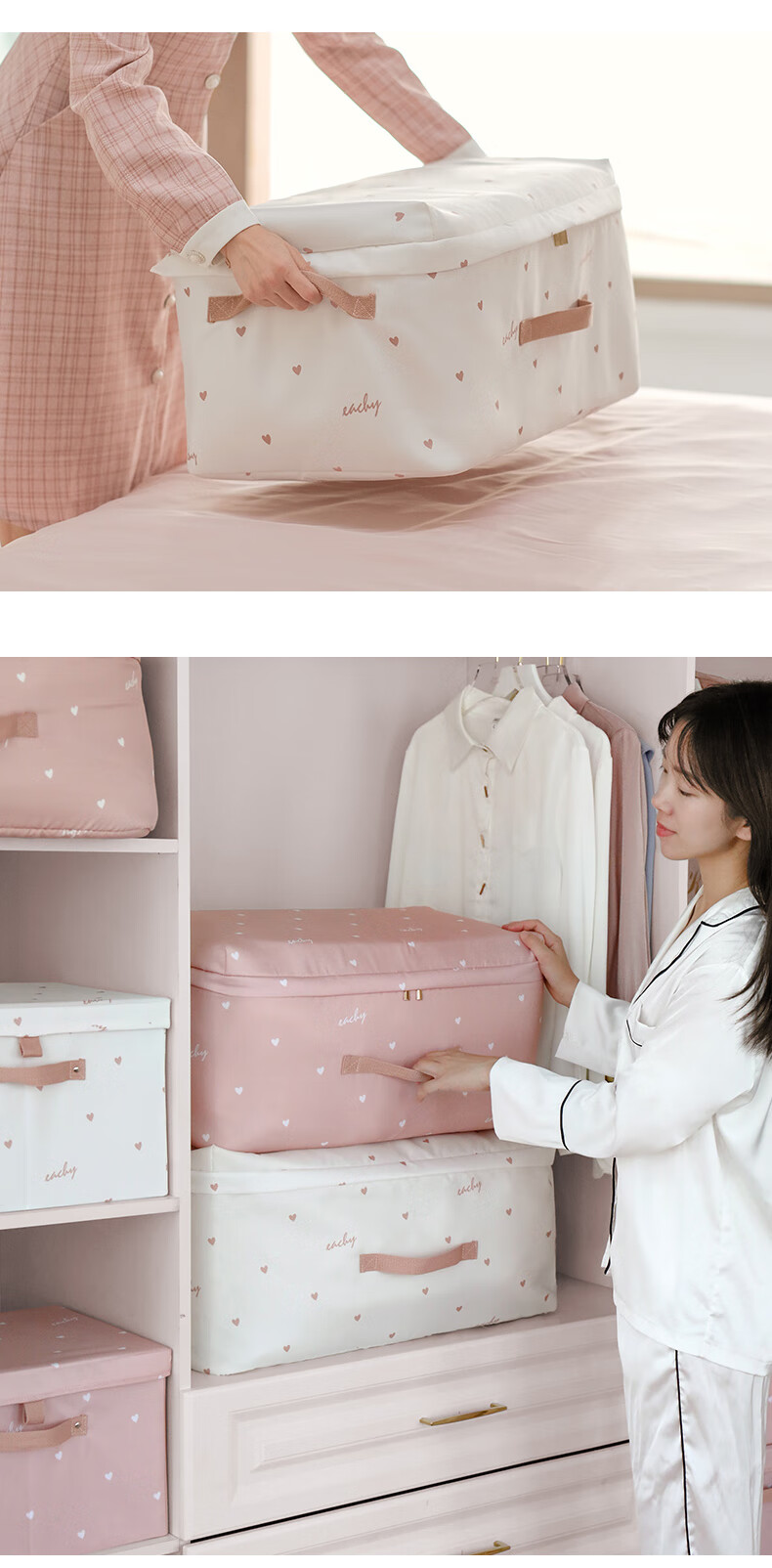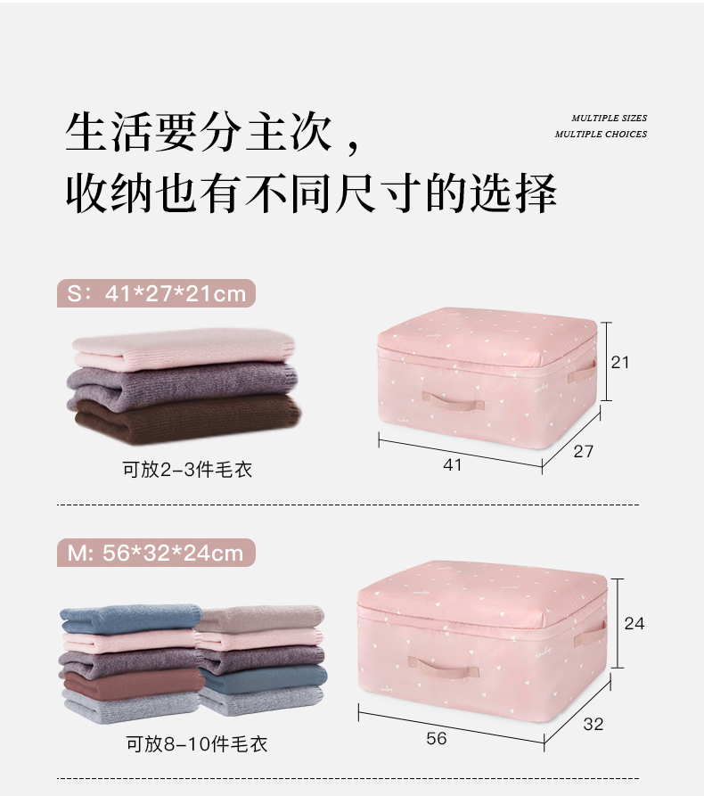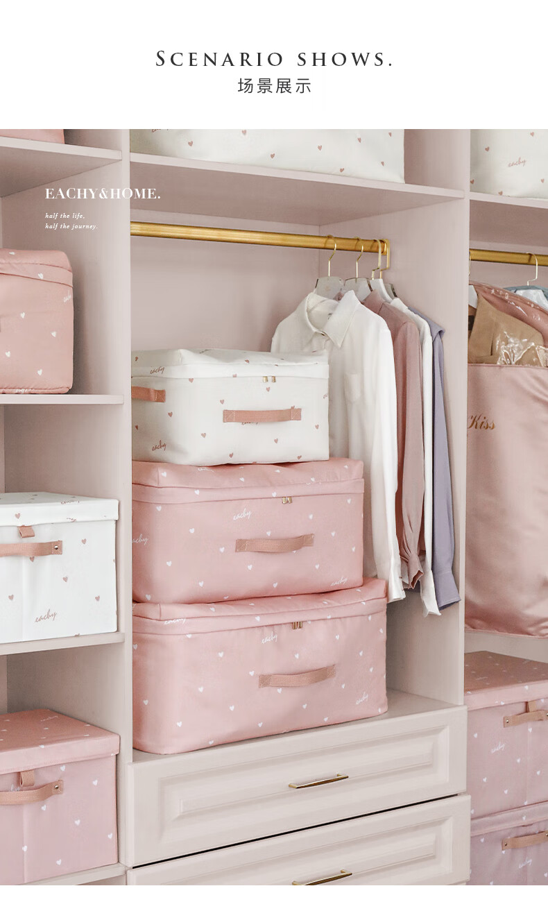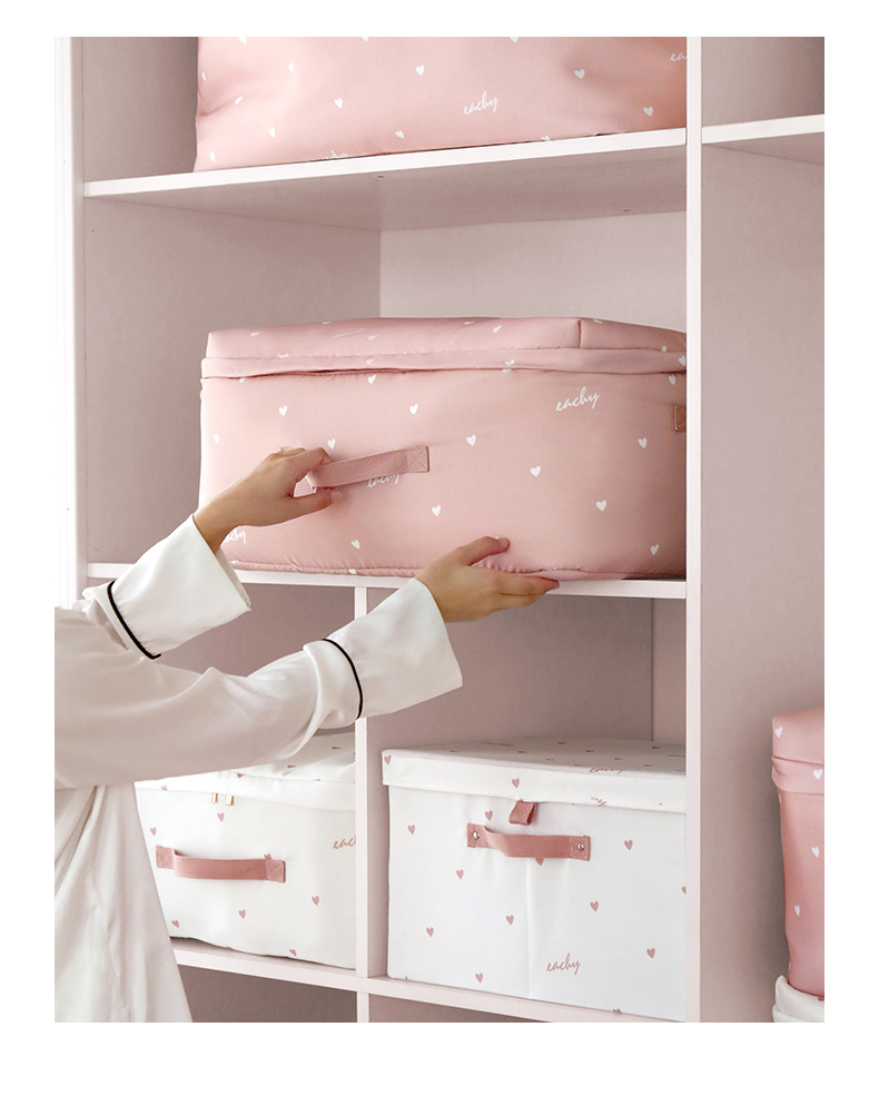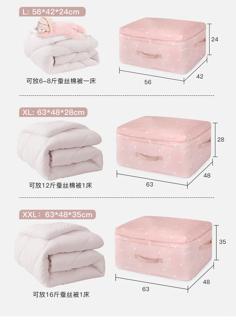 EACHY被子收纳袋衣服整理袋搬家打包大容量装棉被衣物的袋子子防尘防潮 love-粉 S:41*27*21【薄款衣物】