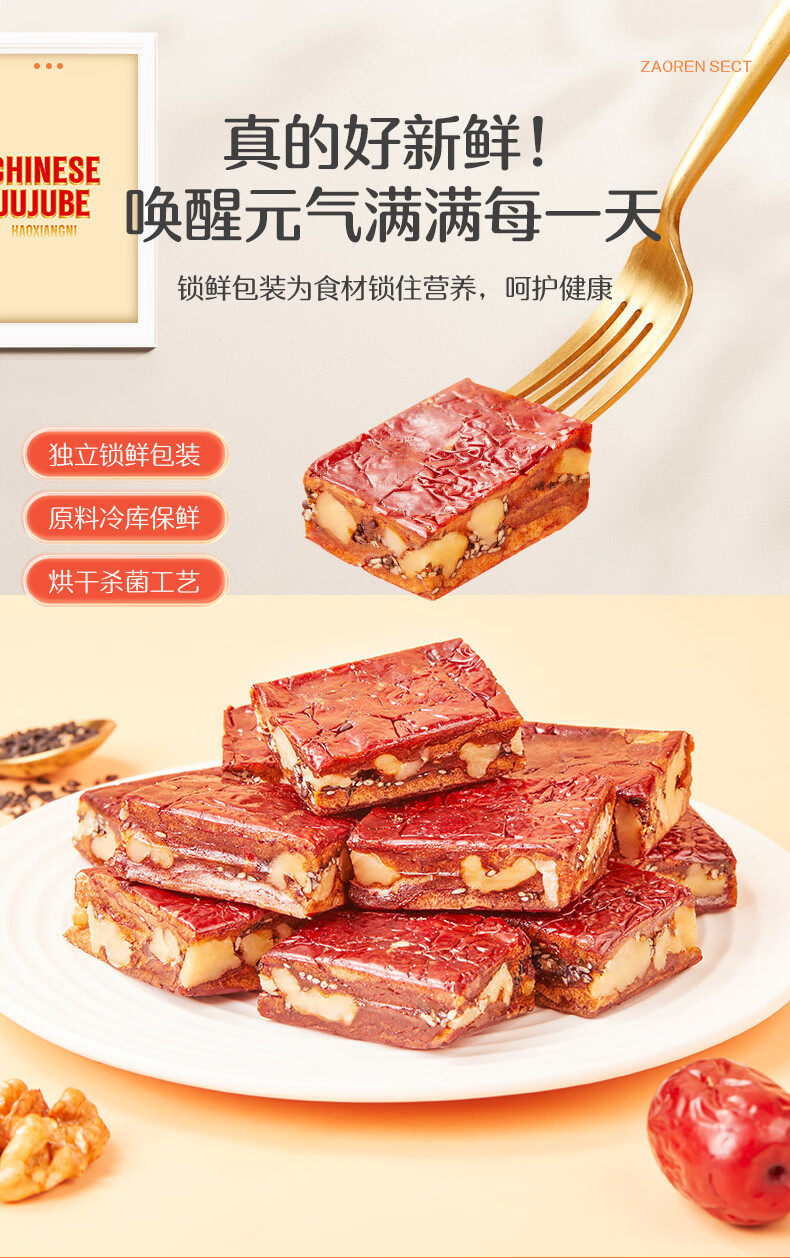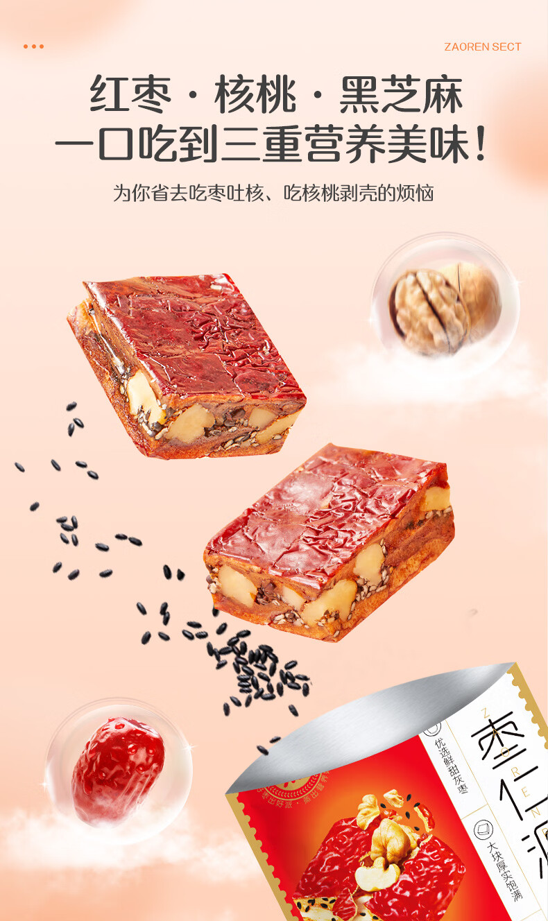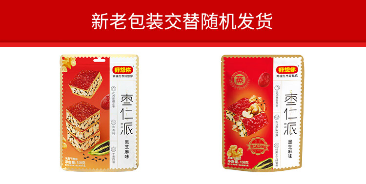 好想你_枣仁派 枣夹核桃蜜饯果干红枣大枣健康零食坚果能量棒休闲零食 【黑芝麻味】枣仁派158g*3袋