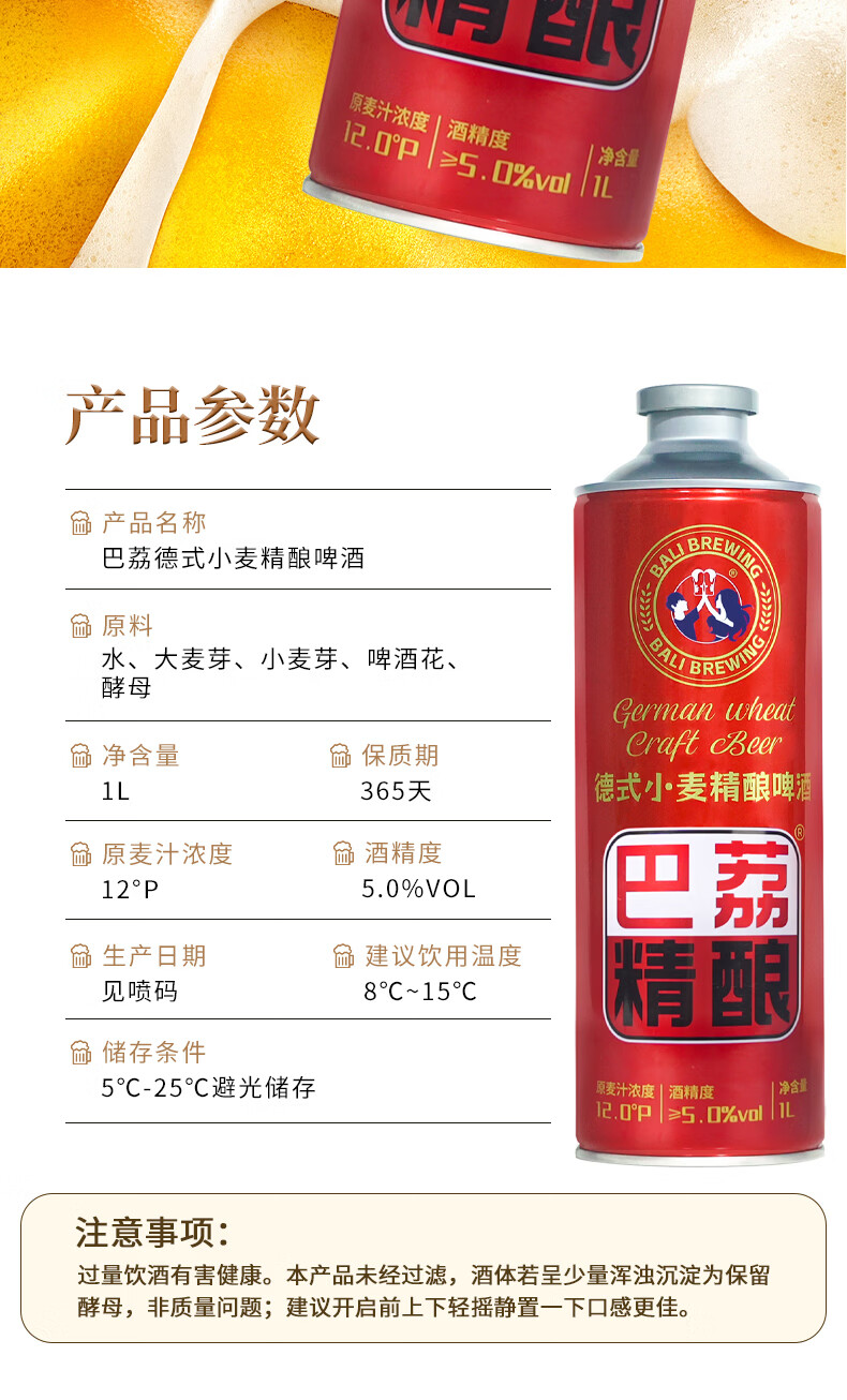 巴荔 啤酒精酿啤酒白啤德式小麦精酿啤酒 精酿 330ml*8罐